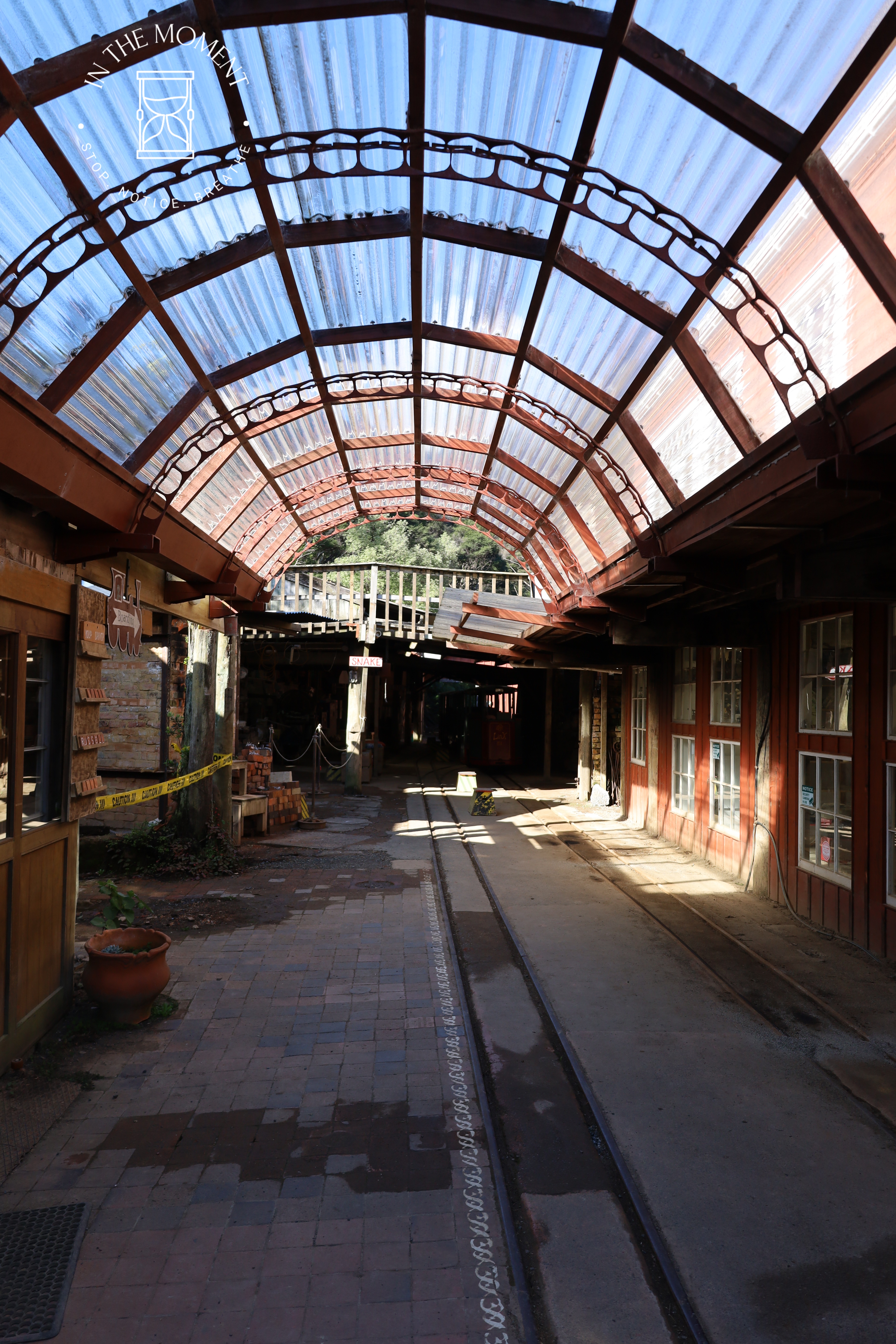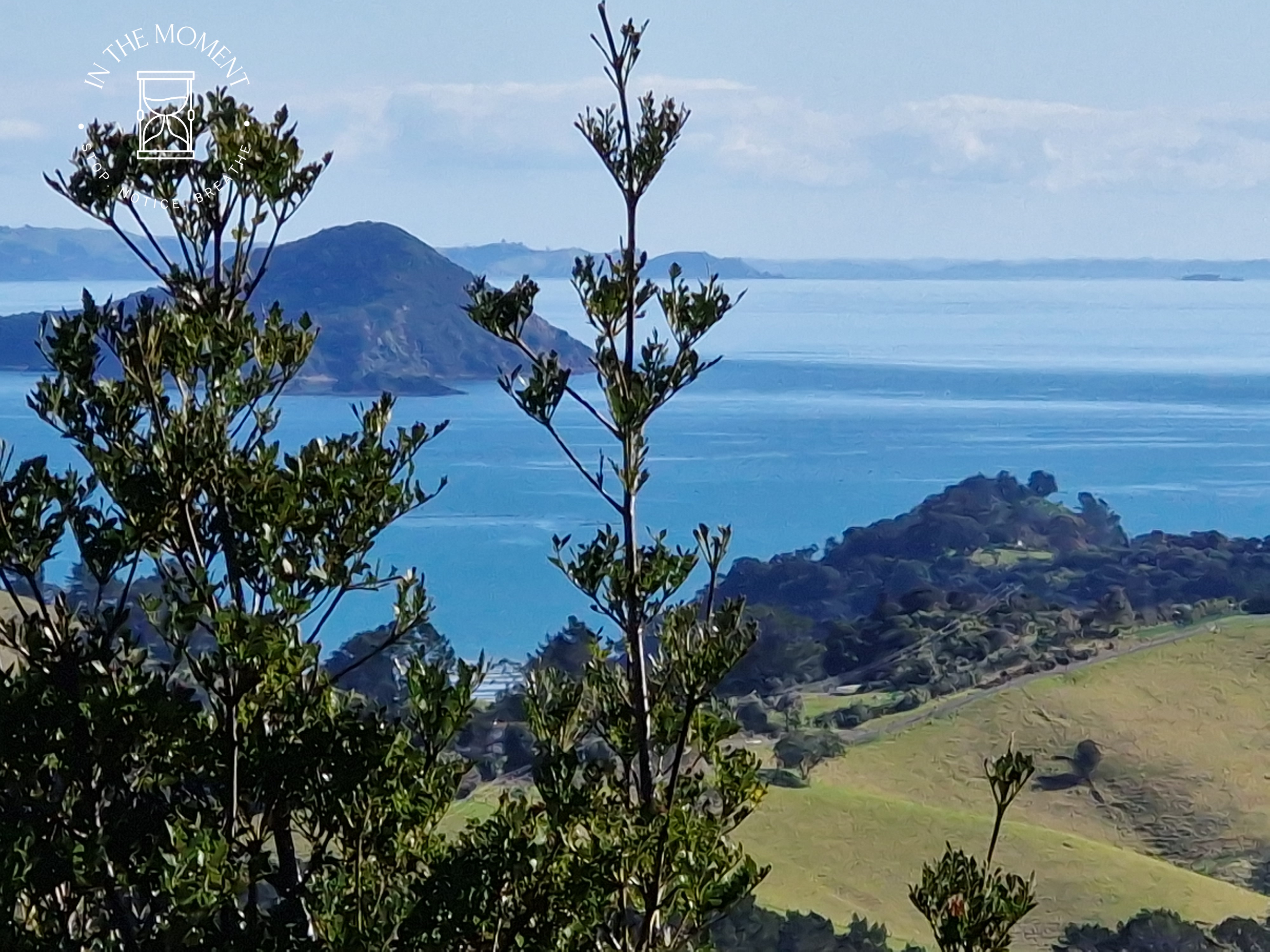 We stay close to home today (Thursday) but still manage to find awe & wonder! Nic has gifted Don & I a trip on Driving Creek Railway for our birthdays. The sun is shining and so it’s a perfect day to visit DCR. It started life as a pottery but has become so much more. Please read all about it in the link below. There is so much to see as you trundle along that it’s almost impossible to take pictures. You spend most of the ride going through more dense native bush, spotting various pieces of pottery along the way, getting glimpses of a stream and the coast. Once you reach the top – the Eyefull Tower – you disembark the train and climb to the platform, the views from here are spectacular! As I said, a real challenge to take photos but we’re sharing some favourites that we did manage to take…