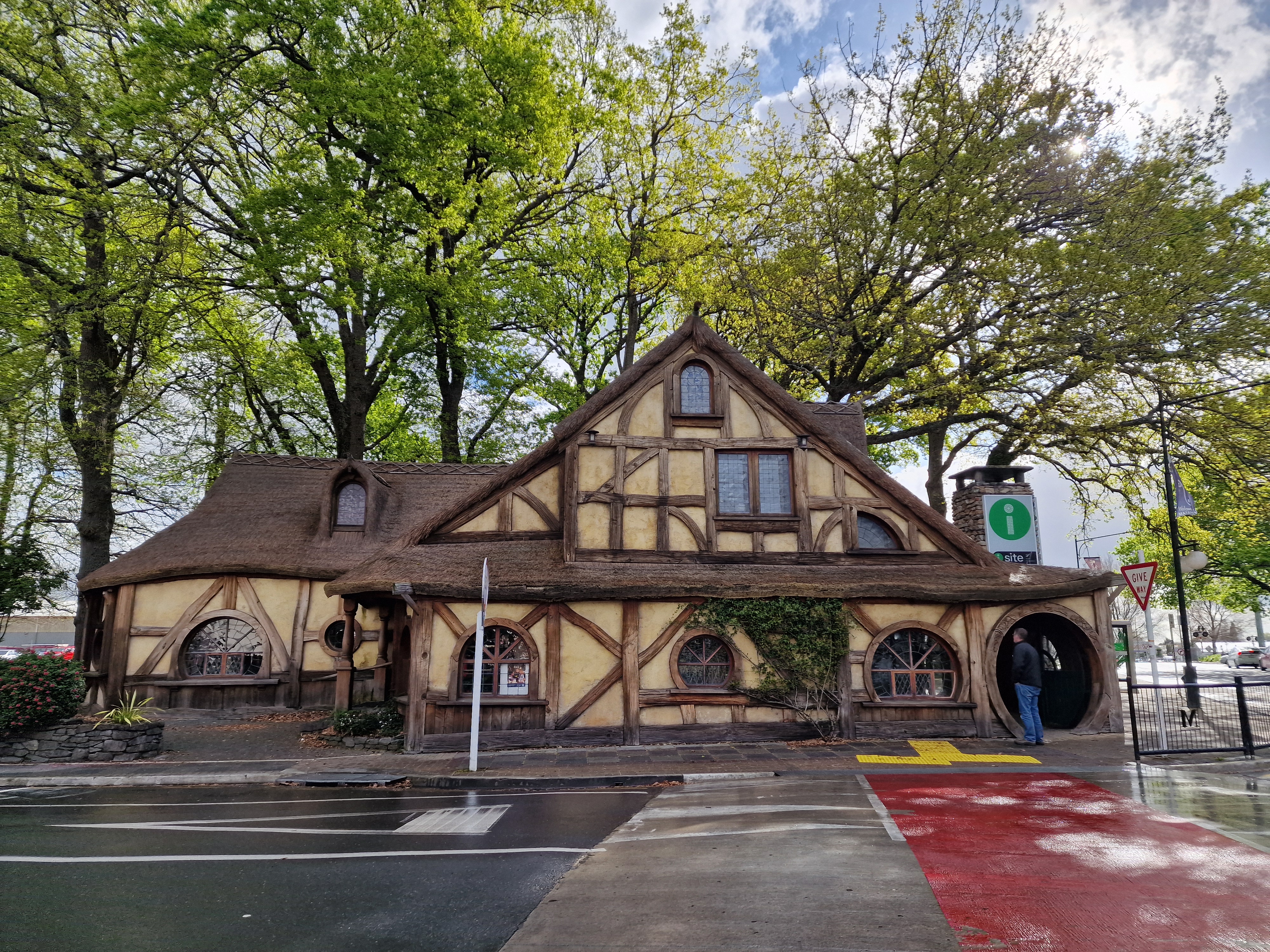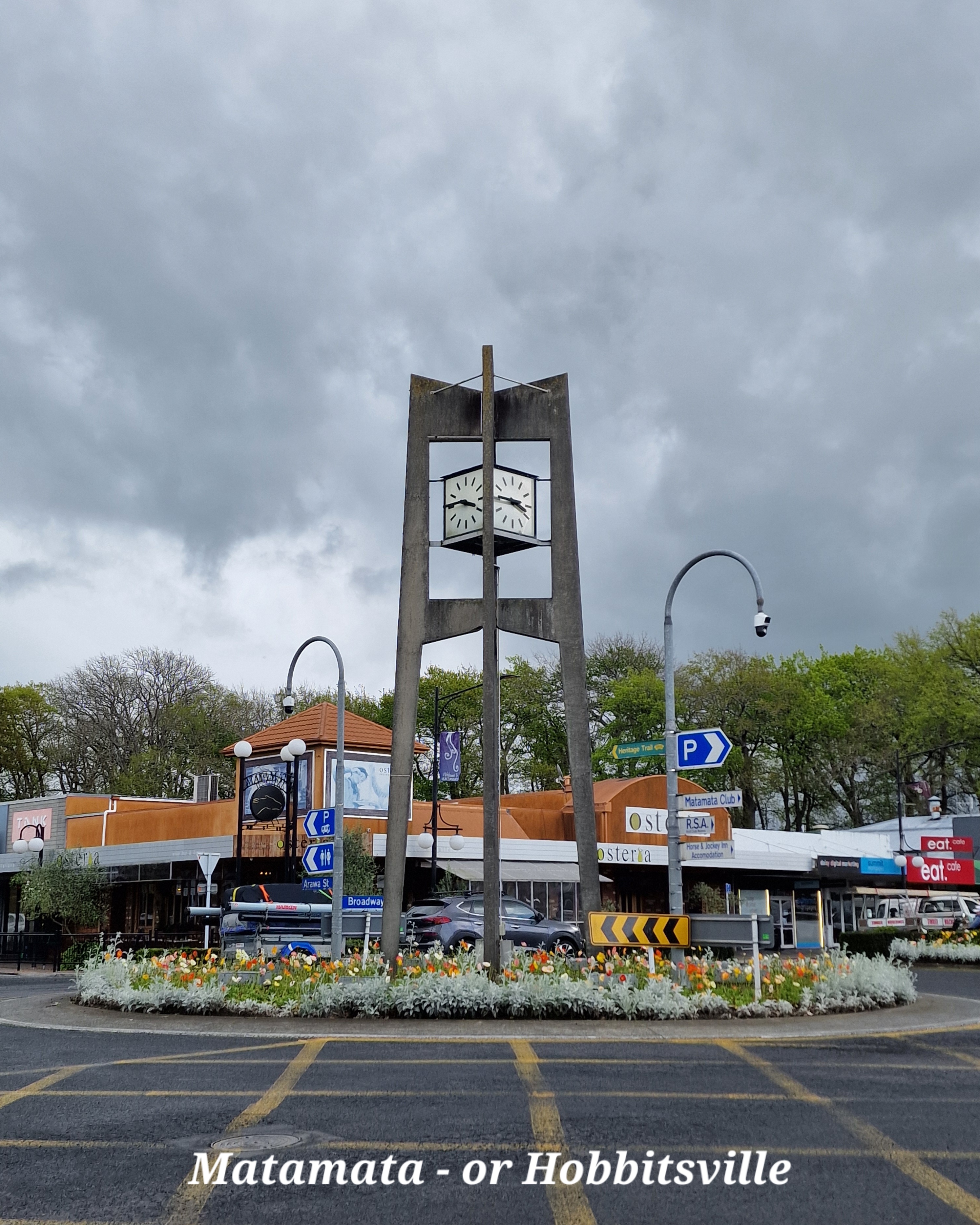 As the heavens open, we decide to park up for the night in Matamata – childhood home to one of Don’s friends. The information centre here is housed in what can only be described as a hobbit type house – no it’s not tiny but very curvy and wooden. All of the Lord of the Rings films were filmed here and this place is home to Hobbiton. For me, it’s the clock in the middle of the roundabout that has me snapping away with my camera!