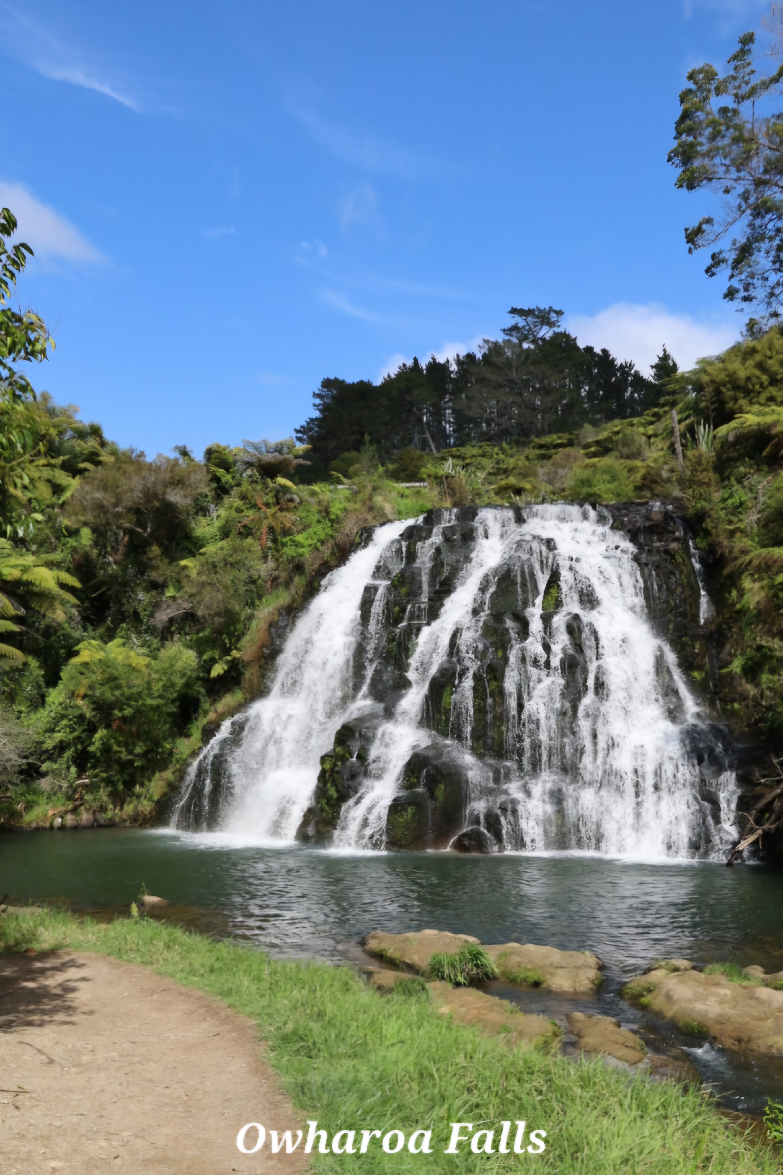 Our next stop was at the most beautiful waterfall – Owharoa Falls. Just a short walk from the road and the path opens out to reveal the falls. Tumbling over the rock down into a perfect swimming pool – just not today – bit too chilly!!