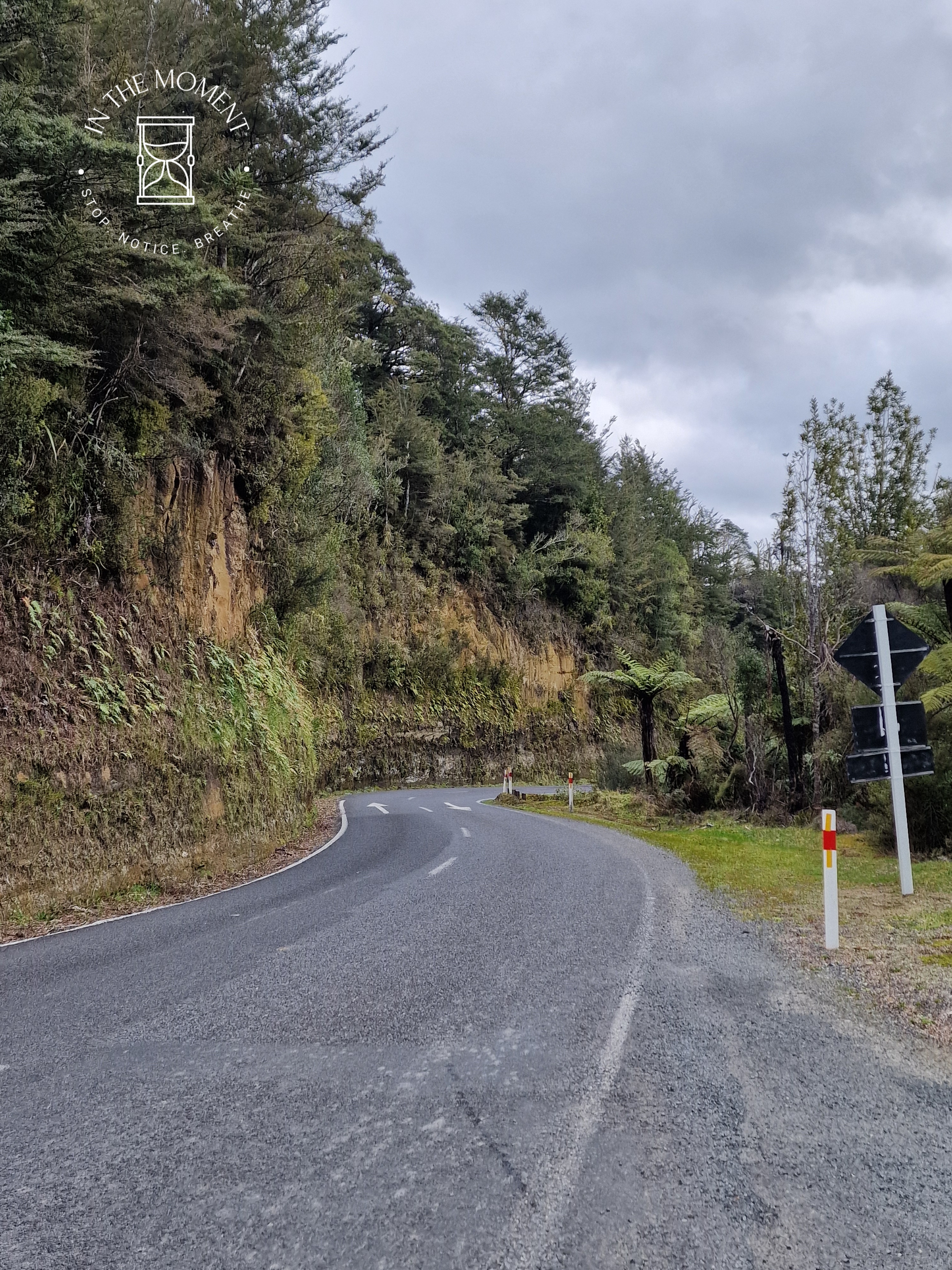 We set off early the next morning to continue along SH43, and the road continues to be windy and Jurassic. At one point on this road, there is a tunnel that is one vehicle wide so the traffic takes turns in going through. It looks as if it might cave in at any minute! This landscape is rugged beyond imagination. It was originally all bush but was cleared for farming. These are very very steep hills and certainly no place for cows! We stop for a break in Taumarunui, pie and a coffee.