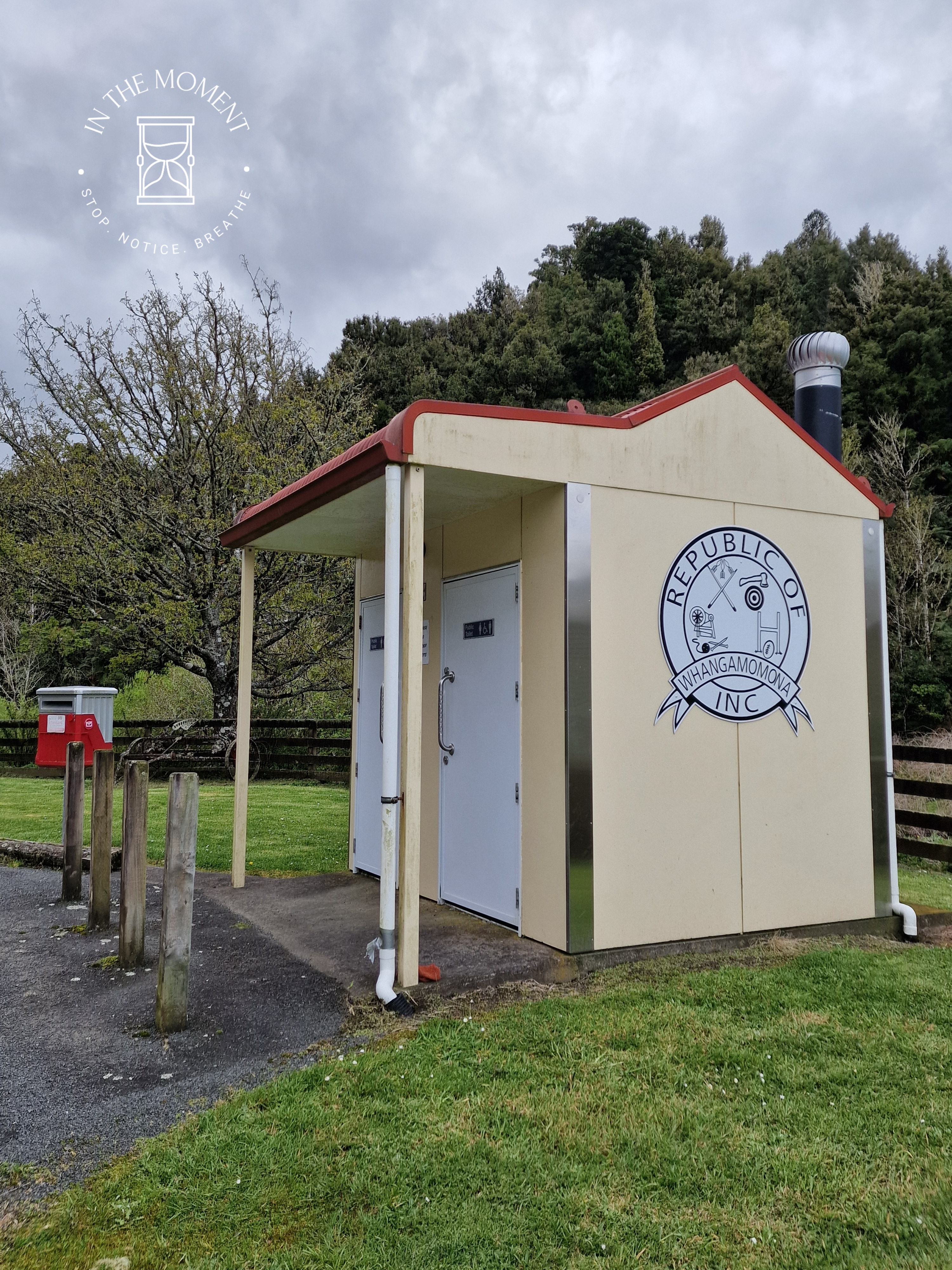 After doing some van chores – very glamorous – next to a huge stockyard (they buy and sell cows & sheep here) we start the next long drive. When I say we, I mean Don as this road is notoriously winding, climbing and in some parts unsealed (no tarmac!). This is SH43 – Forgotten World Highway. It really does feel like you are in Jurassic World. We stop at Te Wera, a former forestry camp where Don worked as a young man. Our destination for the night is Whangamomona an historic town and also a republic – https://en.wikipedia.org/wiki/Whangam%C5%8Dmona after parking up, we have a wander around this historic little town which until only recently had it’s own rugby team. Later on after dinner, we head down to the Hotel to watch the rugby.