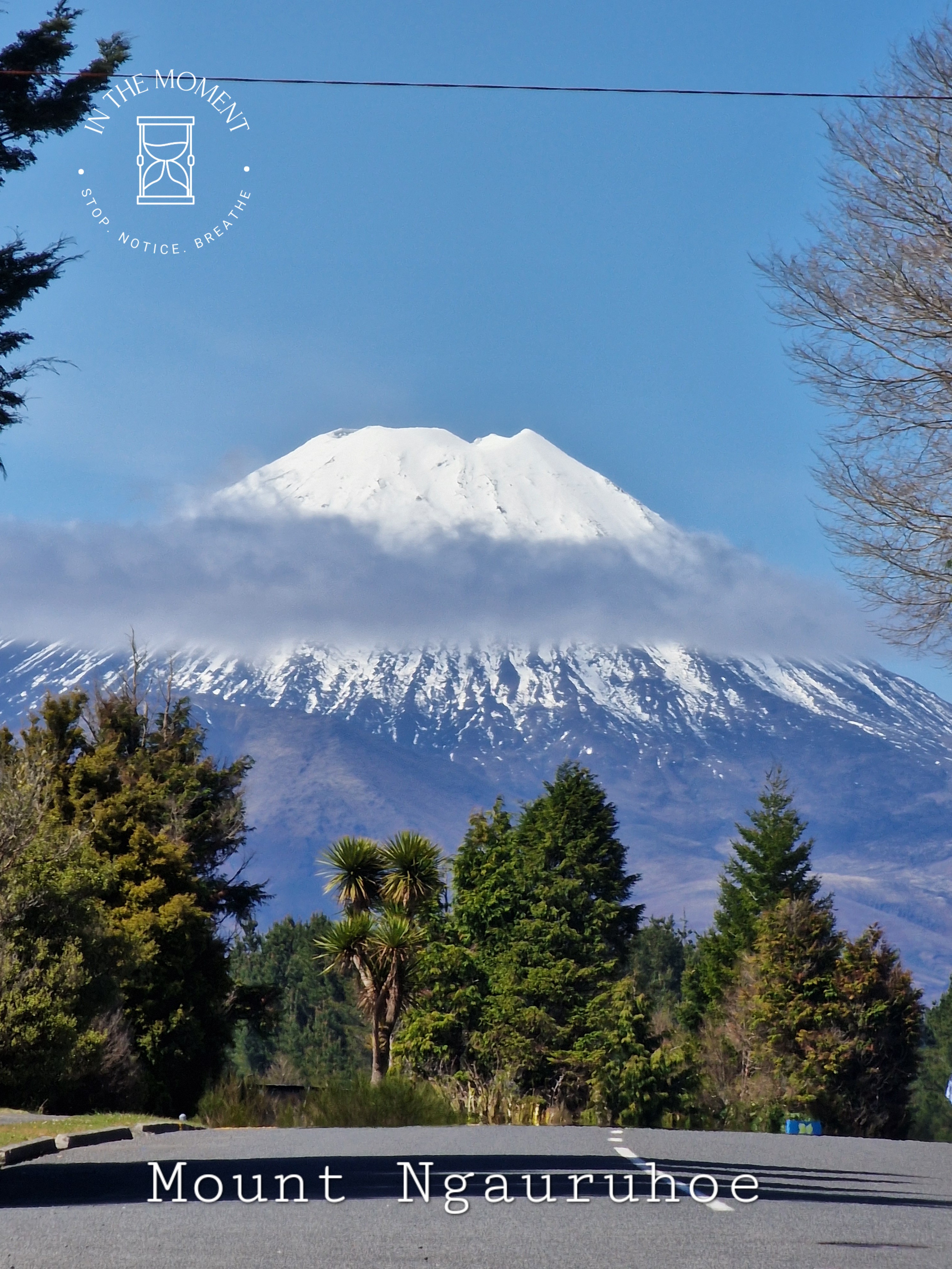 We carry on along SH4 and there in the distance, snow capped mountains of Tongariro National Park. Our camp for the night is in National Park Village where we gaze at the mountains.