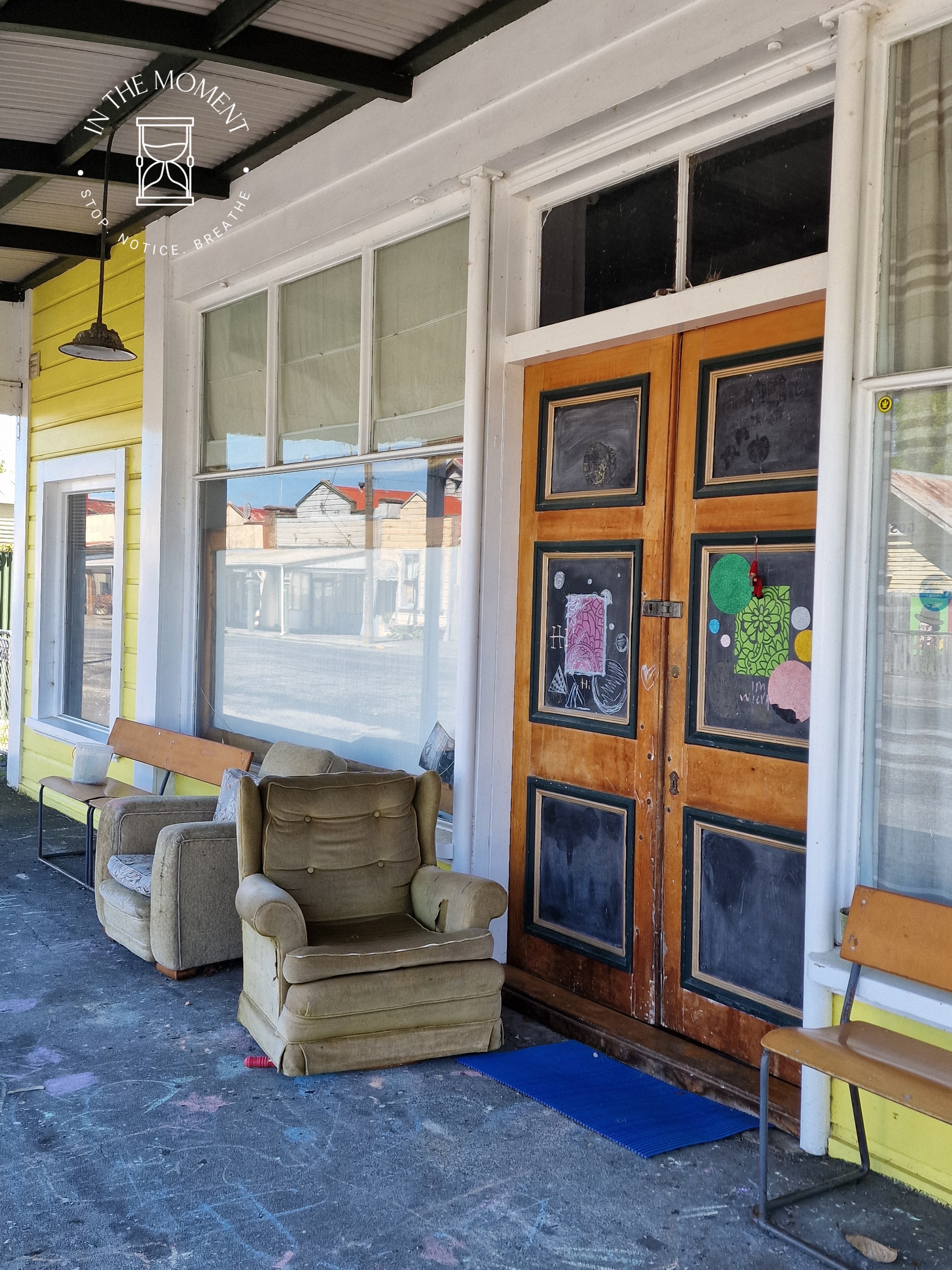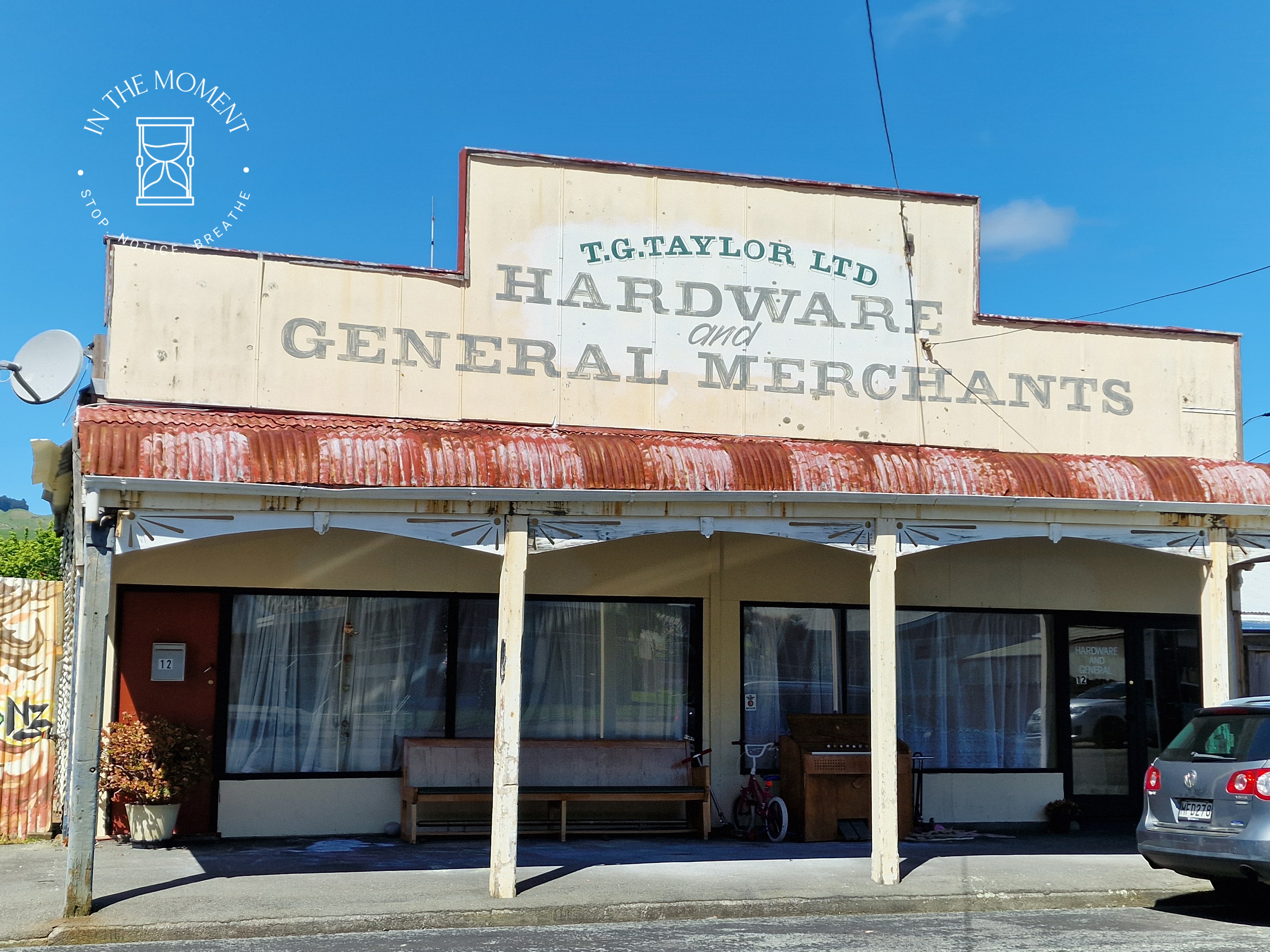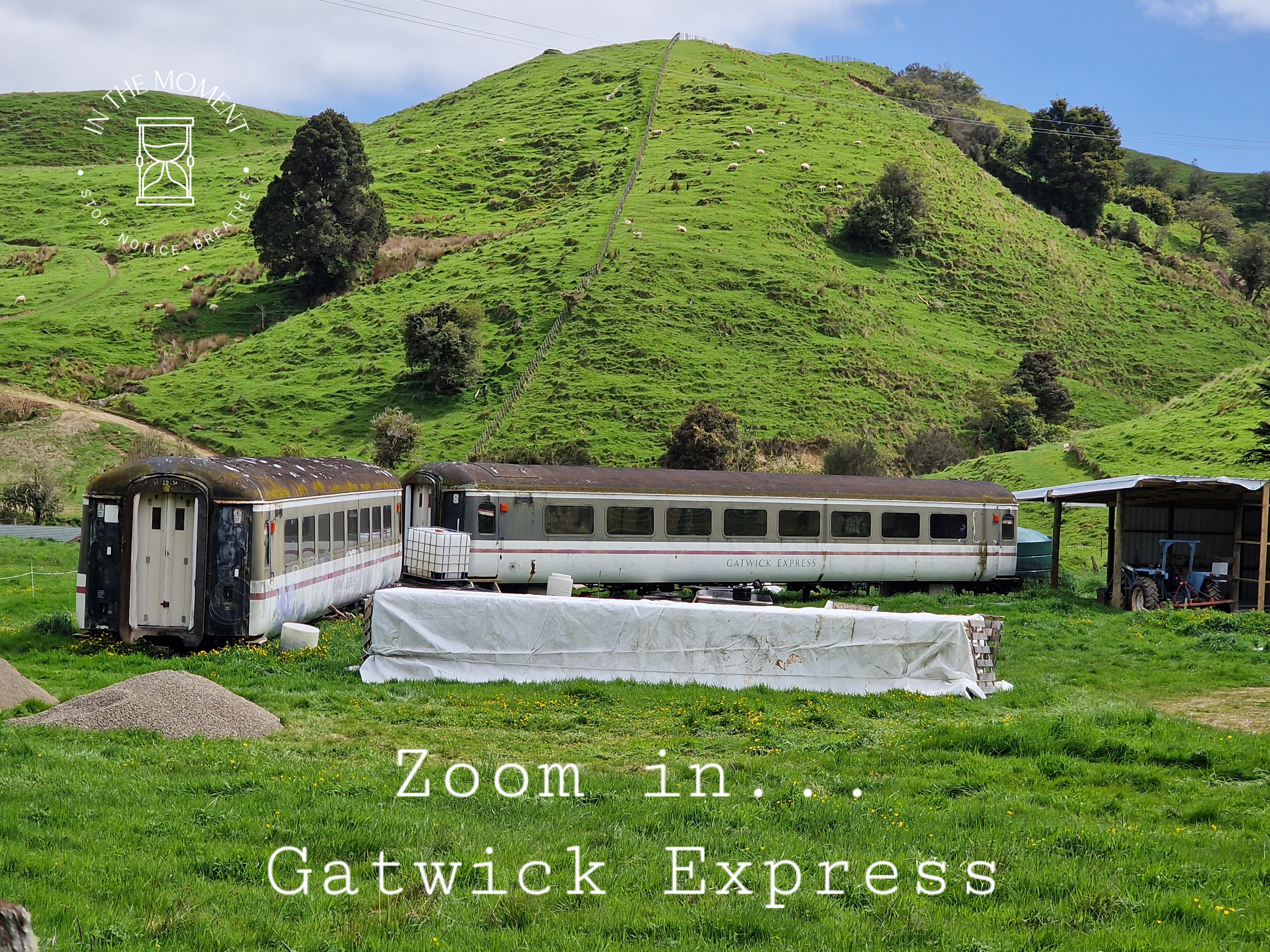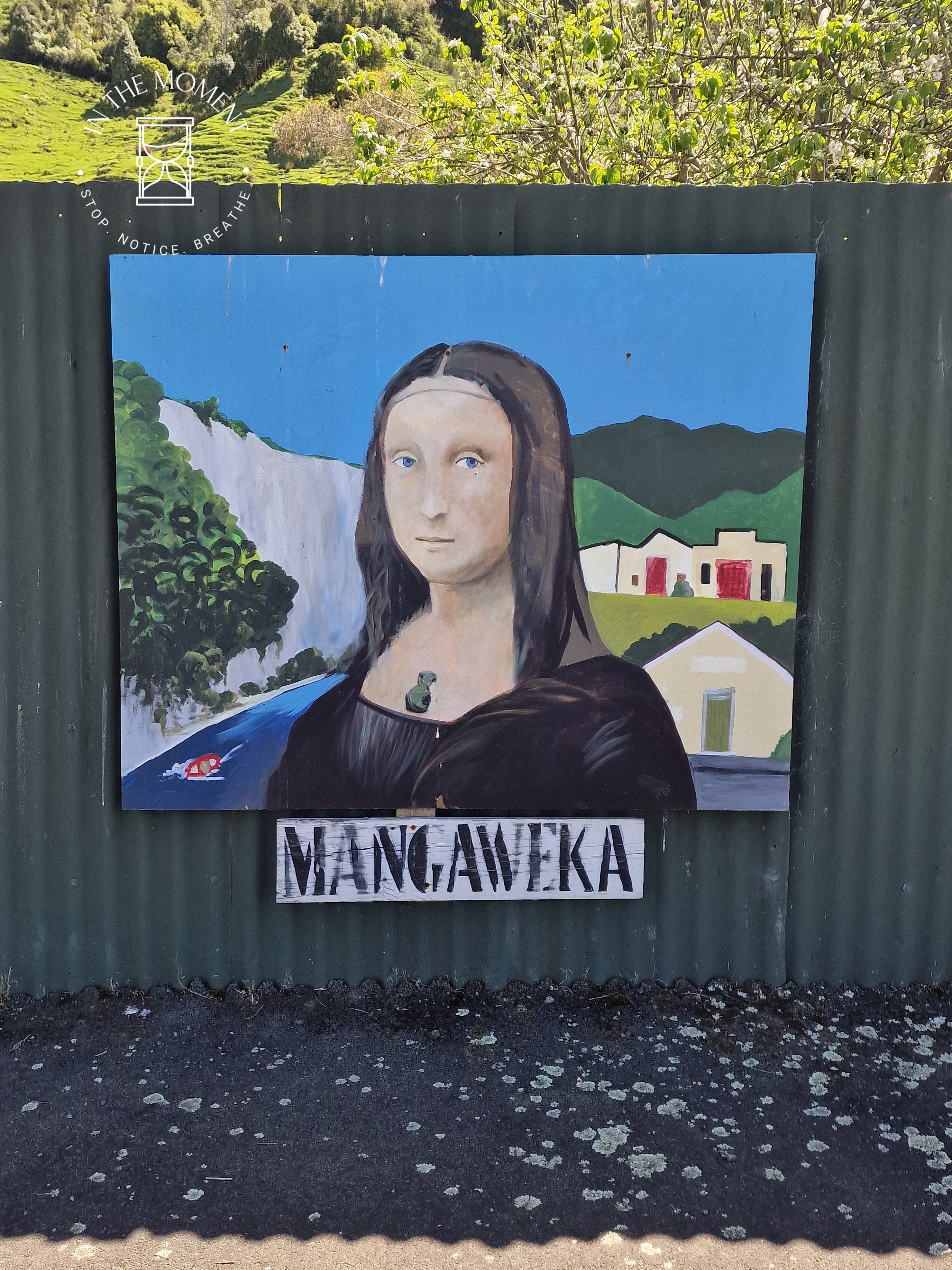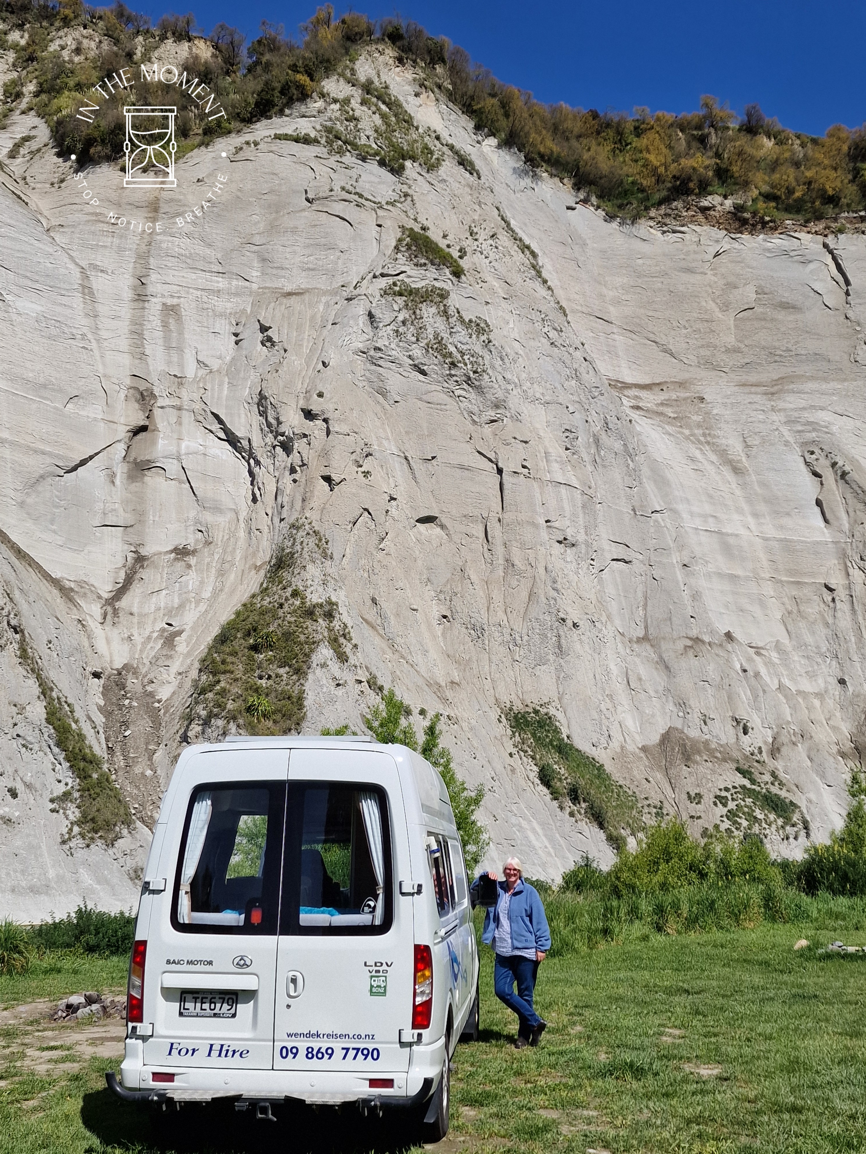 We are heading back up North now and decide NOT to take SH1 (like the M1) but instead take the Manawatu Scenic Route. En Route, we spot two Gatwick Express carriages in a field. Doesn’t seem to be any sign of life at all! We stop in Apiti and have a wander. Strange sculptures, kiwi, moa. A museum that looks abandoned. Great looking little tractor and not much else. Final stop, ish, was Mangaweka where we discover an historic Main Street. All of the buildings have been left as they were when they shut for good. There is lots of street art to encourage people to visit. Our camp is next to a river and in the shadow of huge cliffs!