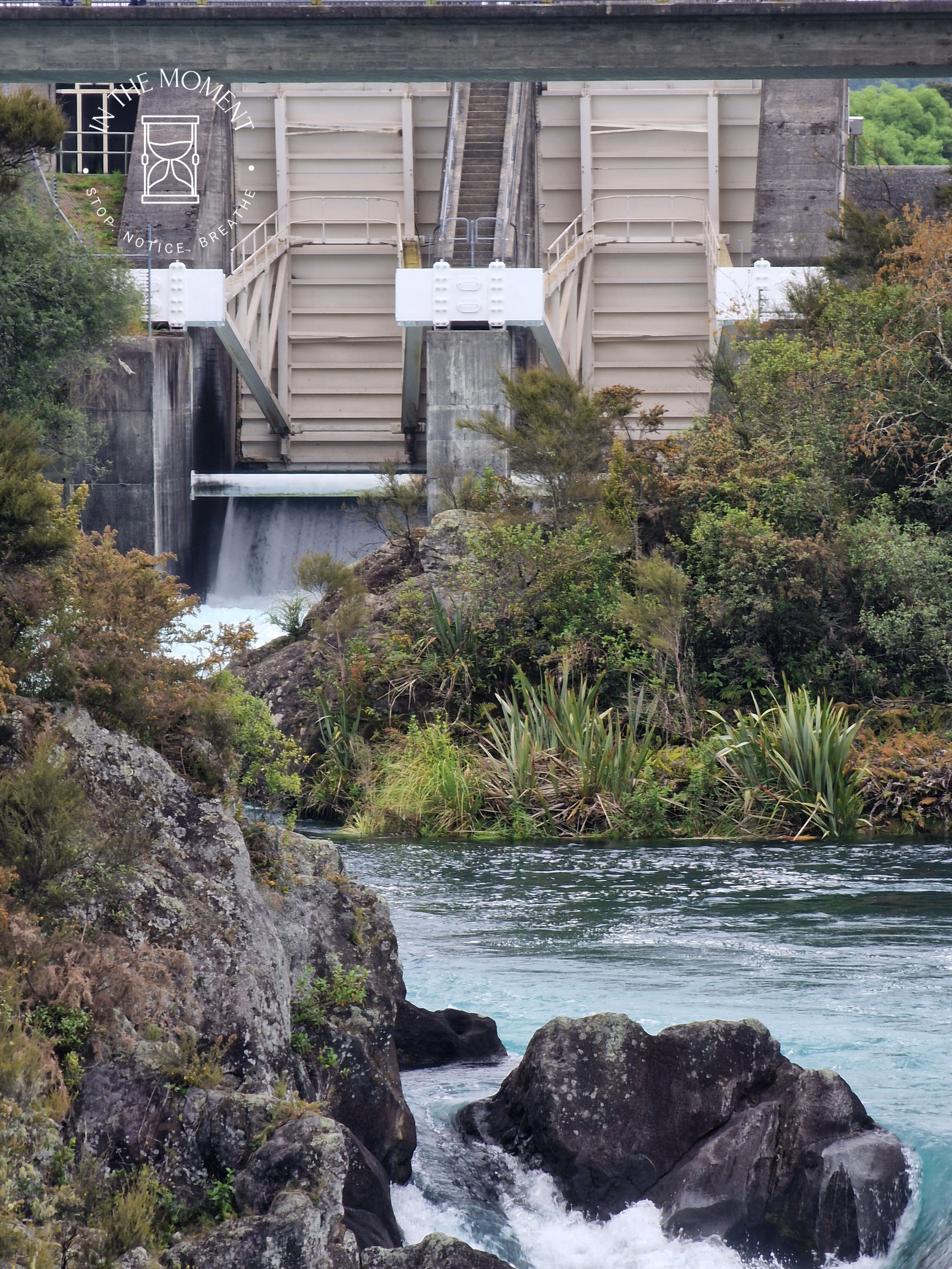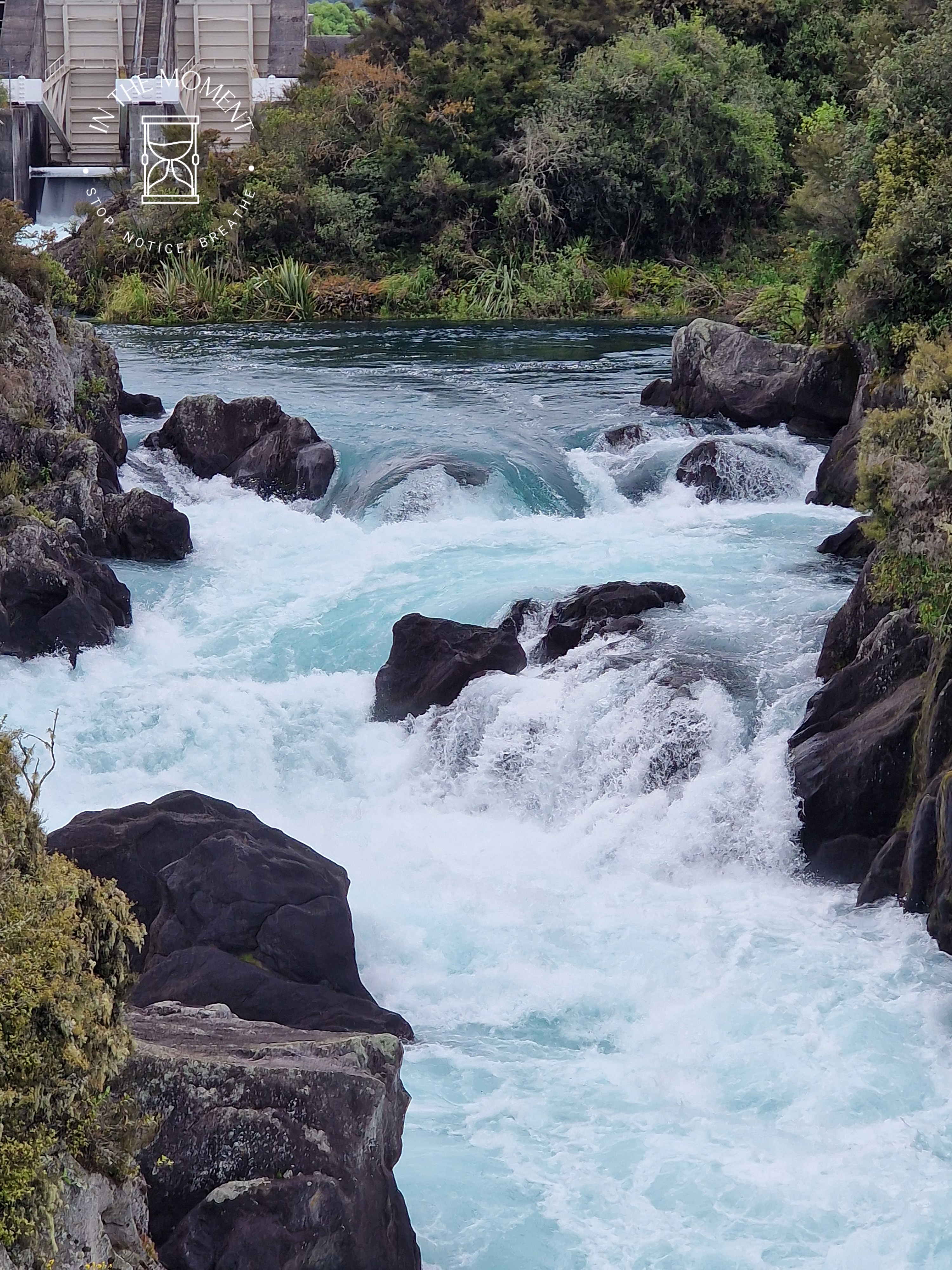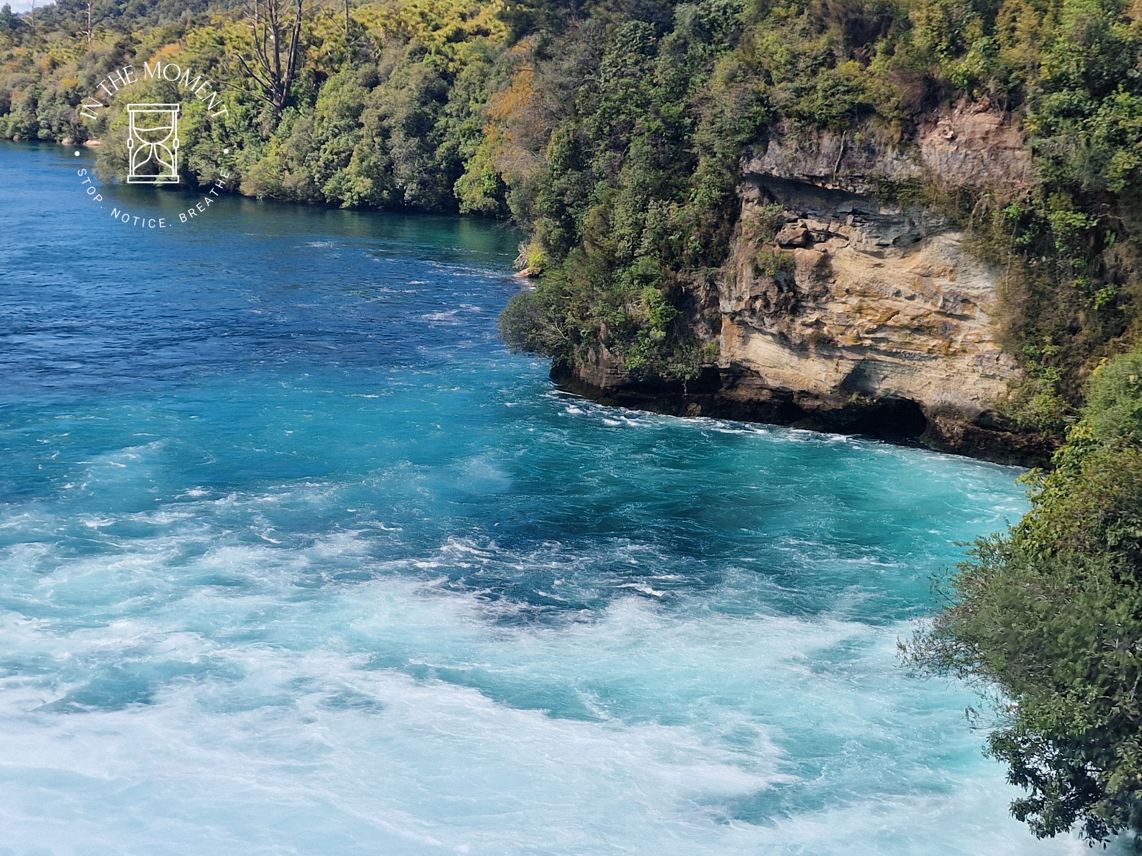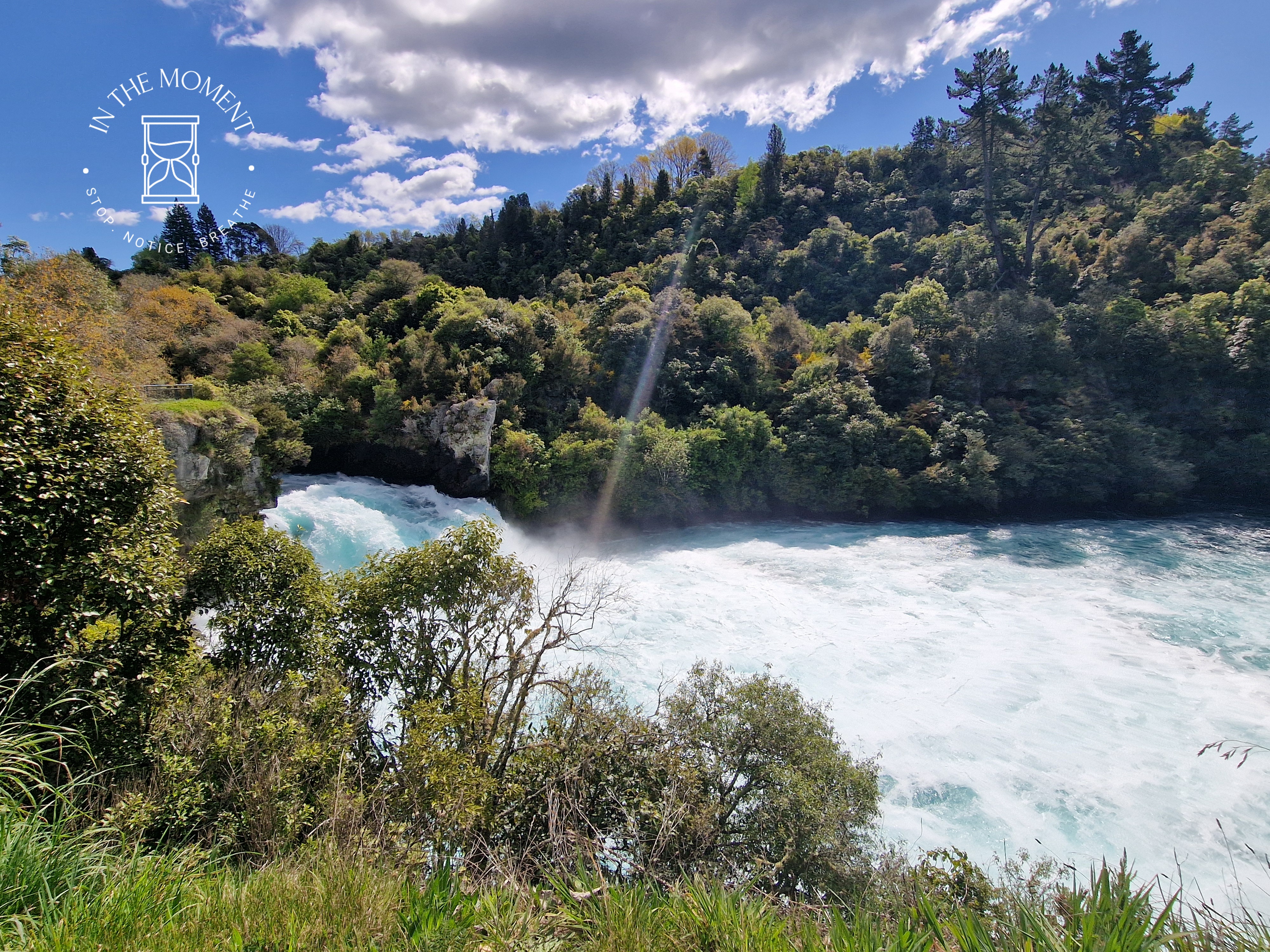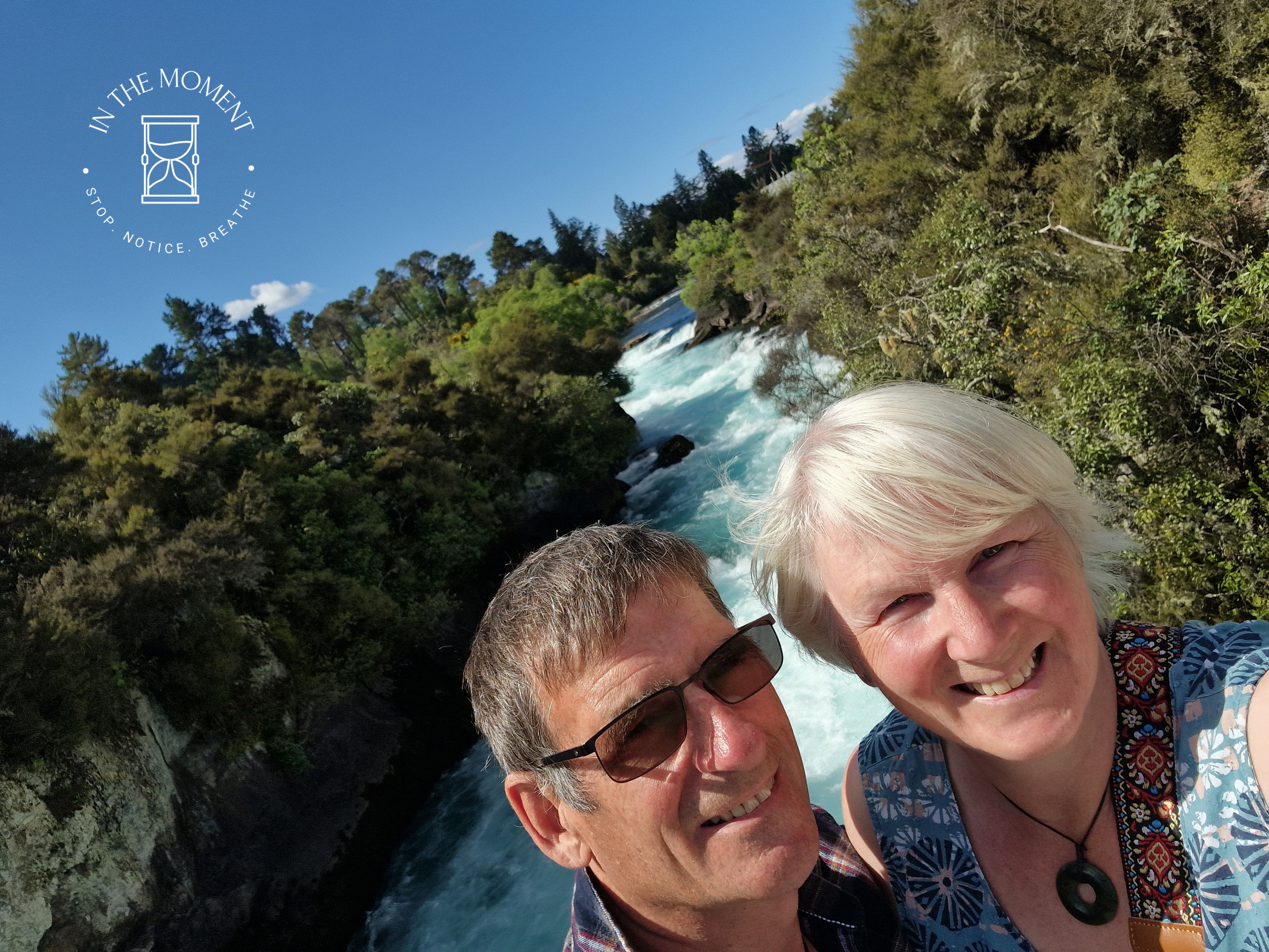 Lake Taupo – we have a slightly extended stay due to the fact that our fridge needed replacing (joys of van life!) so we wander around the town exploring and having a truly fantastic flat white at Fusion Cafe, the lemon muffin was rather delicious too! Refuelled, we head up SH5 to Huka Falls. These falls are amazing. They are caused by the Waikato River normally 100m wide, being forced to narrow to just 15m wide as it passes through a hard volcanic canyon. This increases the flow pressure immensely, causing the water to burst out with great force as the gorge ends. The flow rate of water coming over Huka Falls is 200,000 ltrs a second and it would fill 5 Olympic swimming pools in just one minute! Both the noise and the variety of colours in the water are mesmerising. Totally LOVE them! Our camp for the night is at the Huka Honey Hive – where we have a cheeky Kapiti Hokey Pokey ice-cream as a treat!