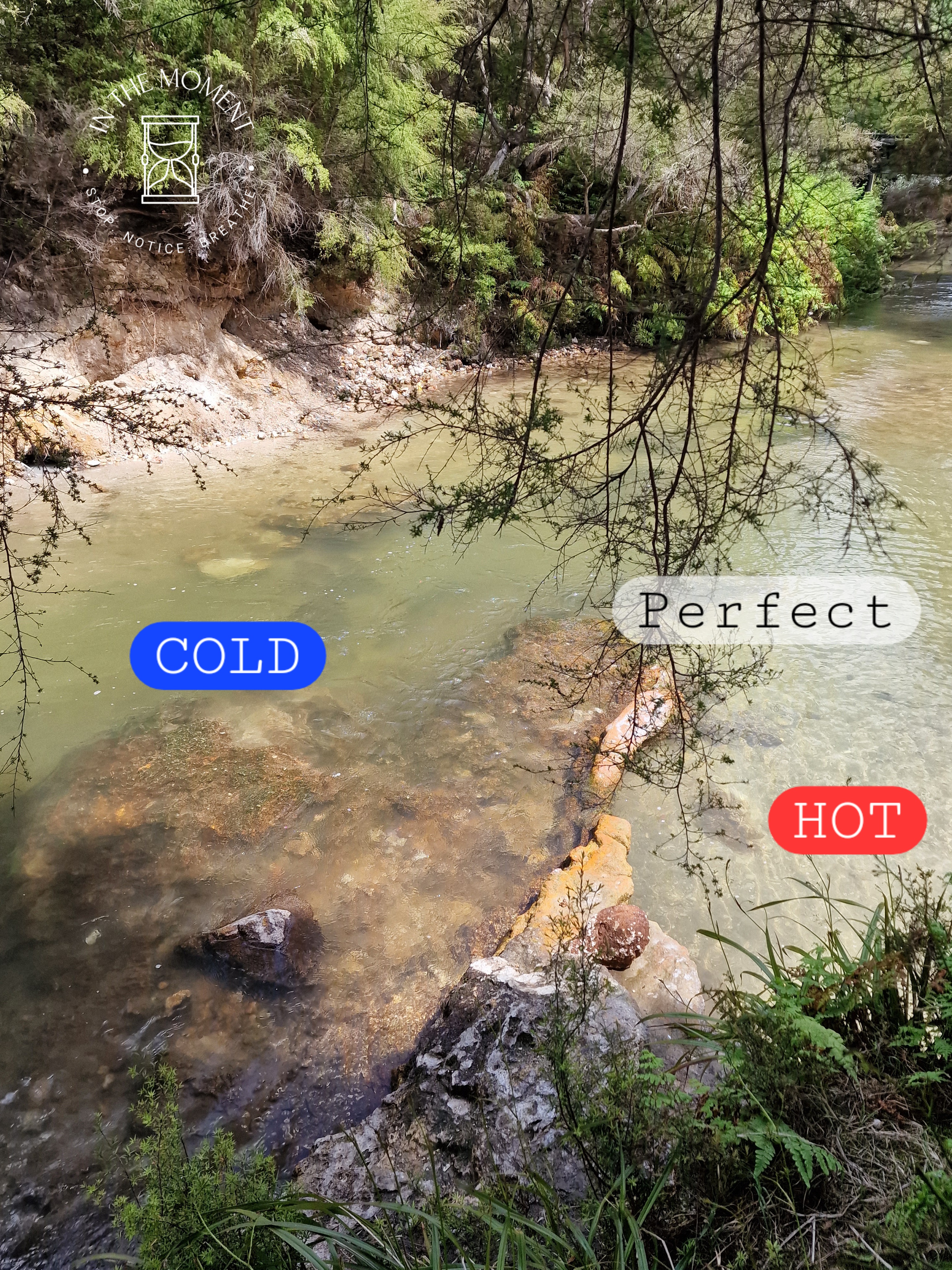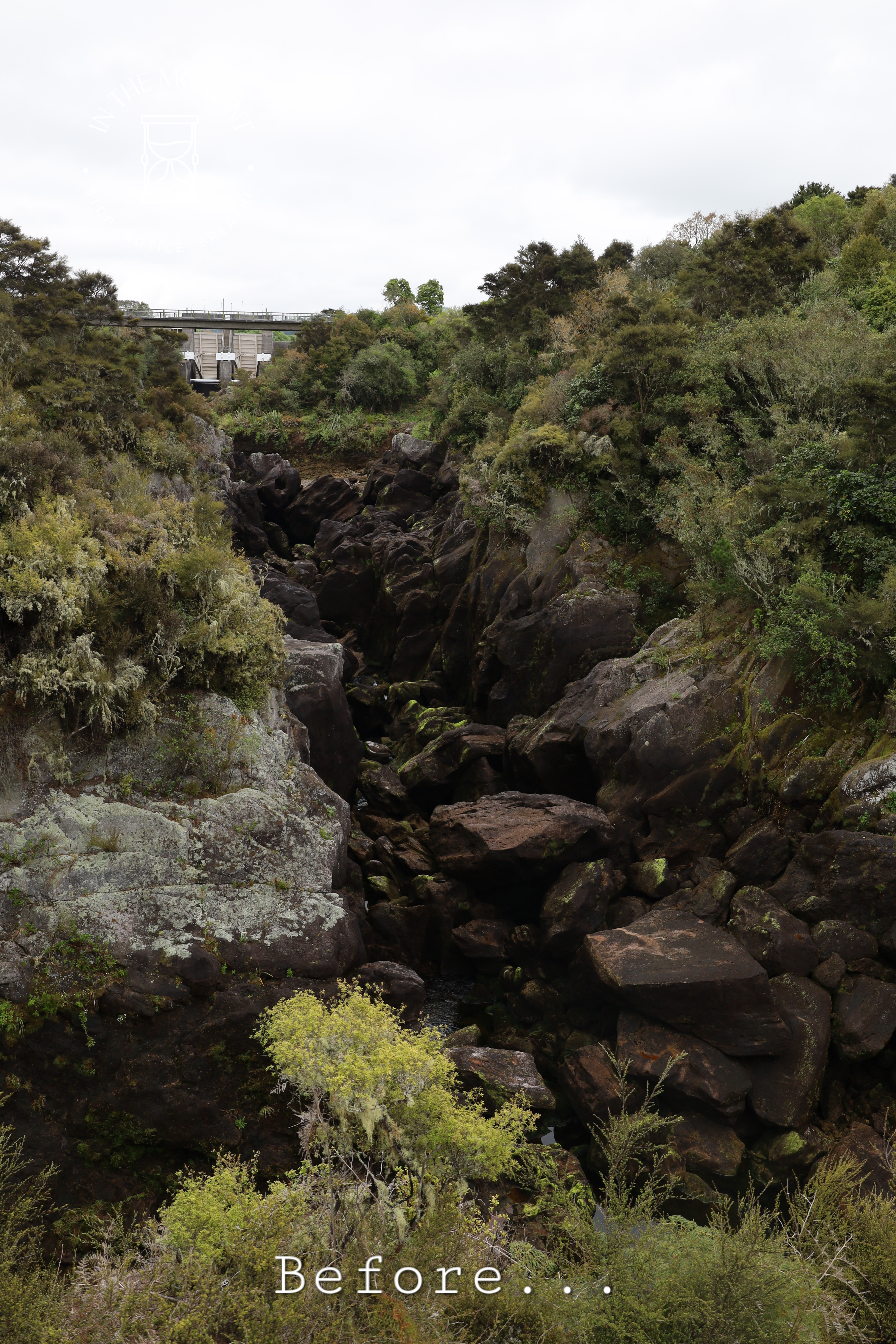 Road to Rotorua – we start our day with a visit to Aratiatia rapids. In 1964 a dam was built to harness the power of the water flowing out of Lake Taupo. The rapids prior the the dam being built were similar to Huka Falls, but since the dam they are just a trickle – until they open the gates of the dam which they do 4 times a day. This then causes a torrent of water to come flooding downstream. It is a marvellous sight, if somewhat scary. It’s easy to see why there are so many warning signs here. After watching this spectacle, our next stop is a magical place. Hot Cold Stream – and yes, it does exactly what it say on the tin! It’s hard to tell from the photo just how magical this place. A hot stream to the left mixes with a cold stream from the right and in the middle – the perfect place to soak in the natural mineral waters. It is so relaxing watching the water flow and the steam gently rise.
