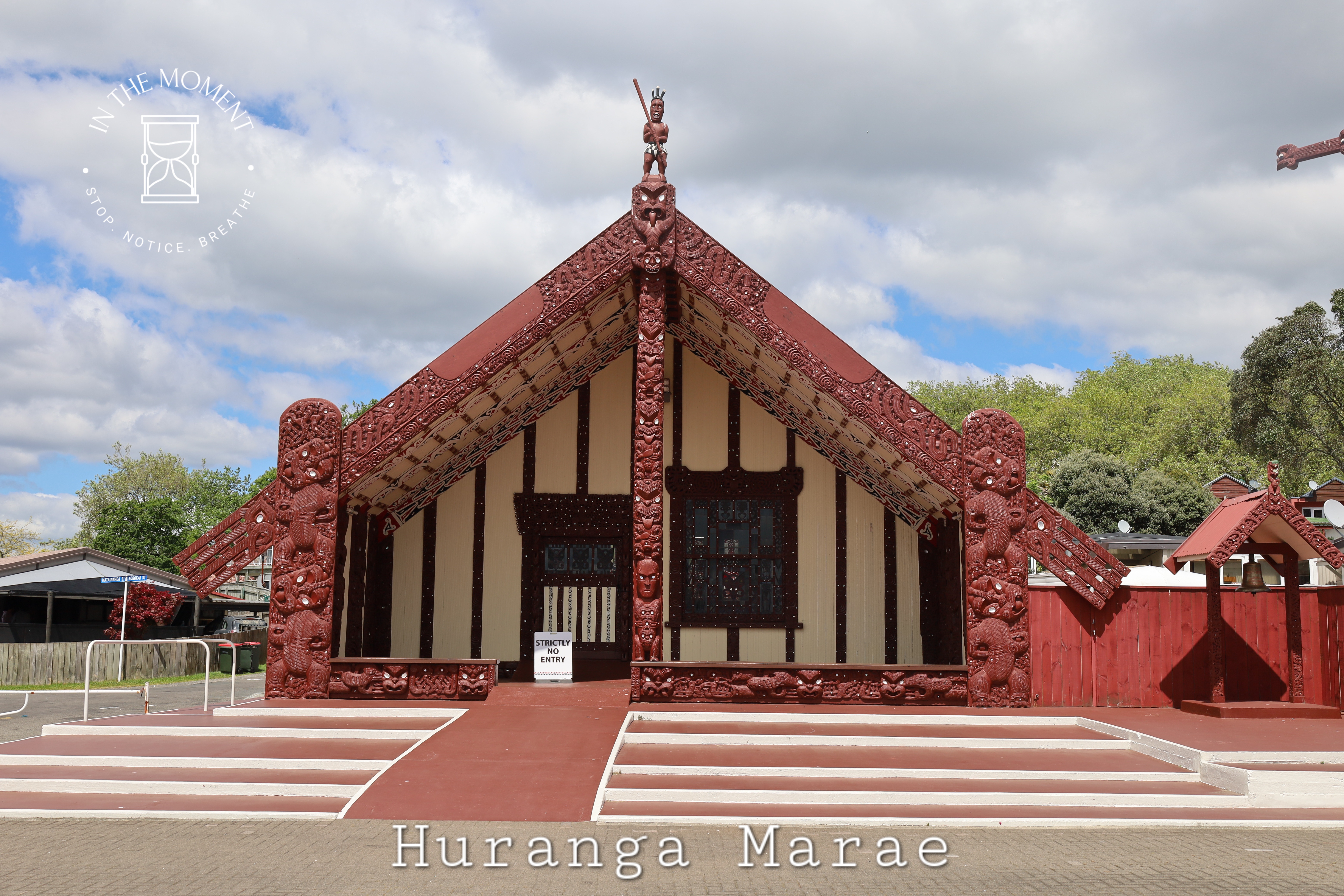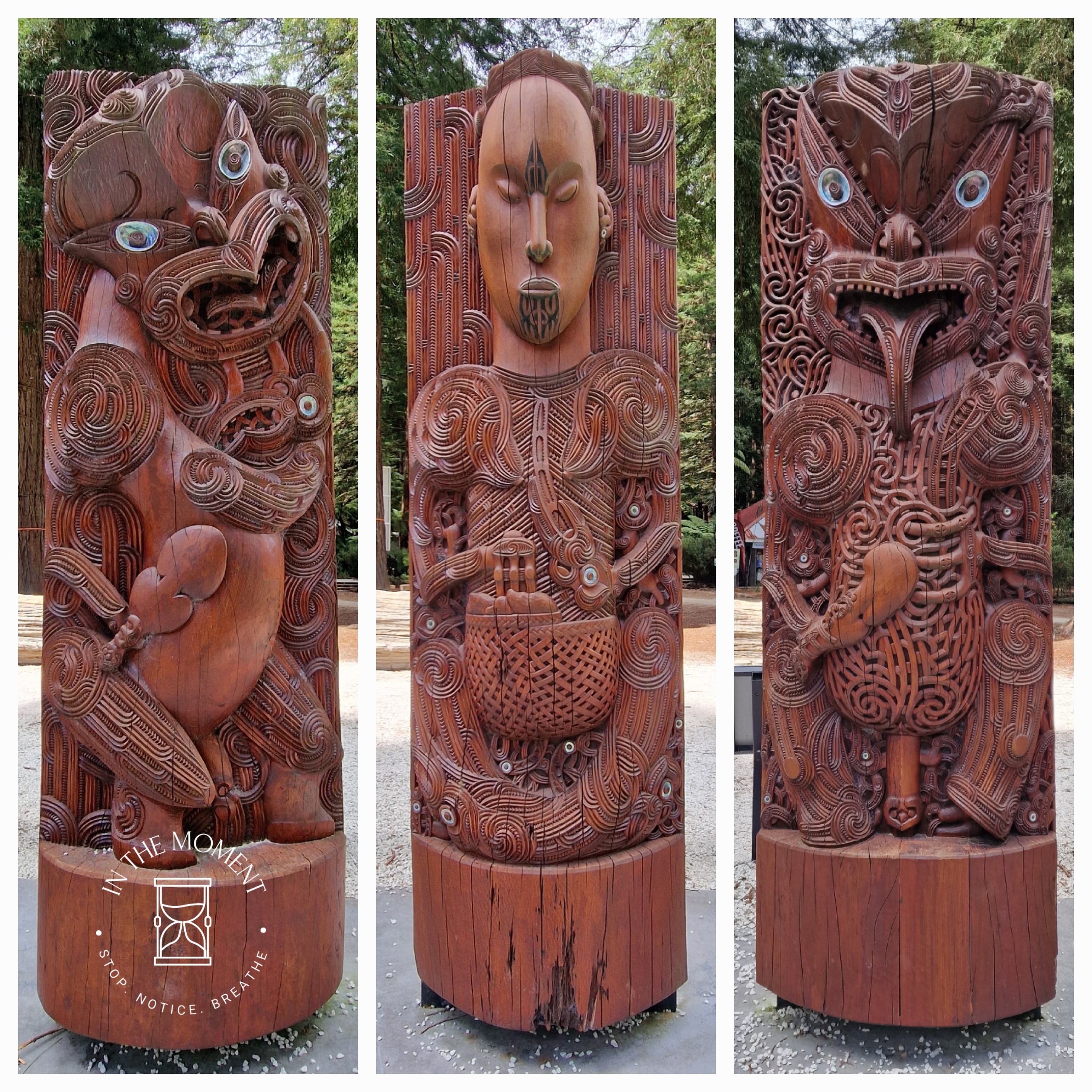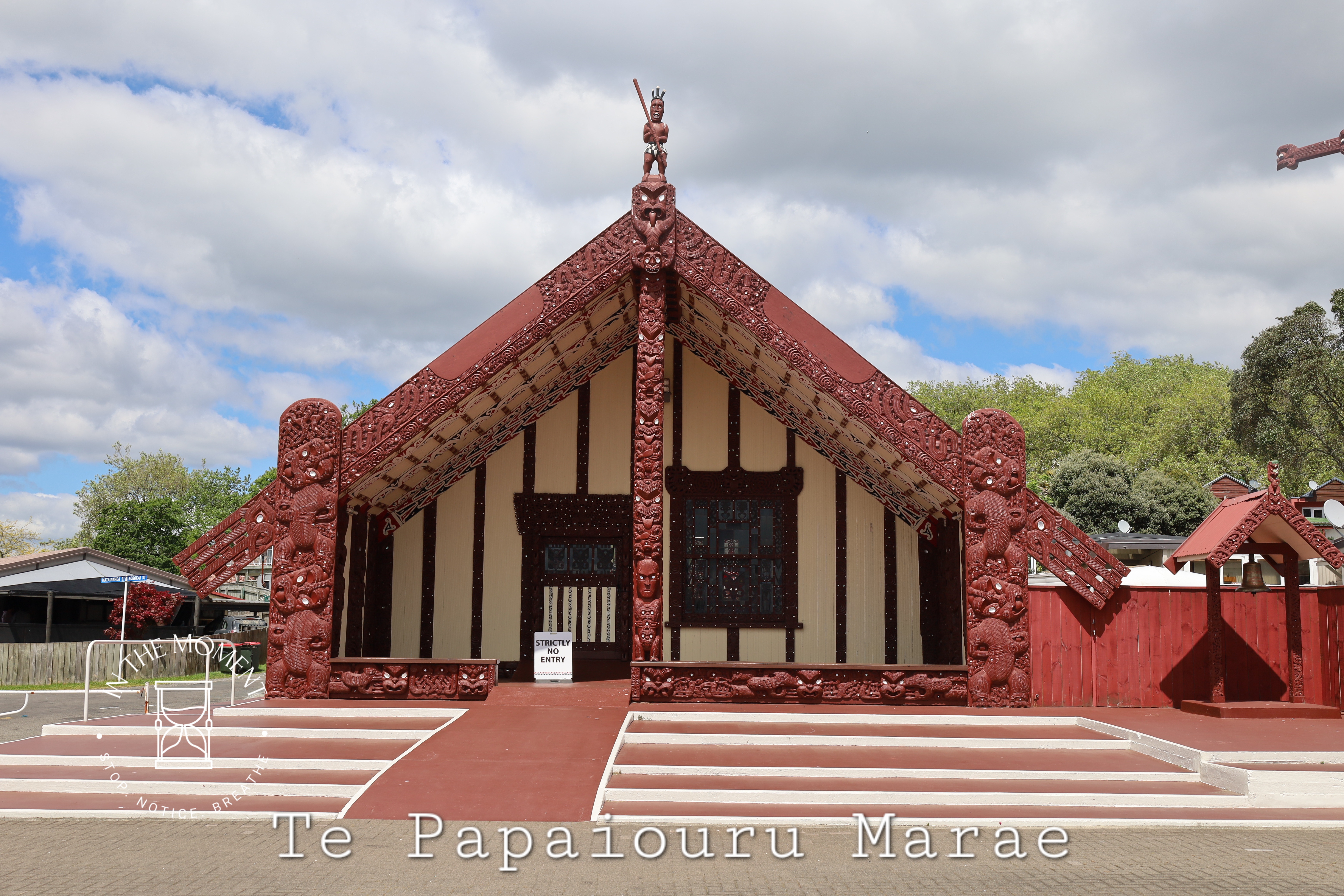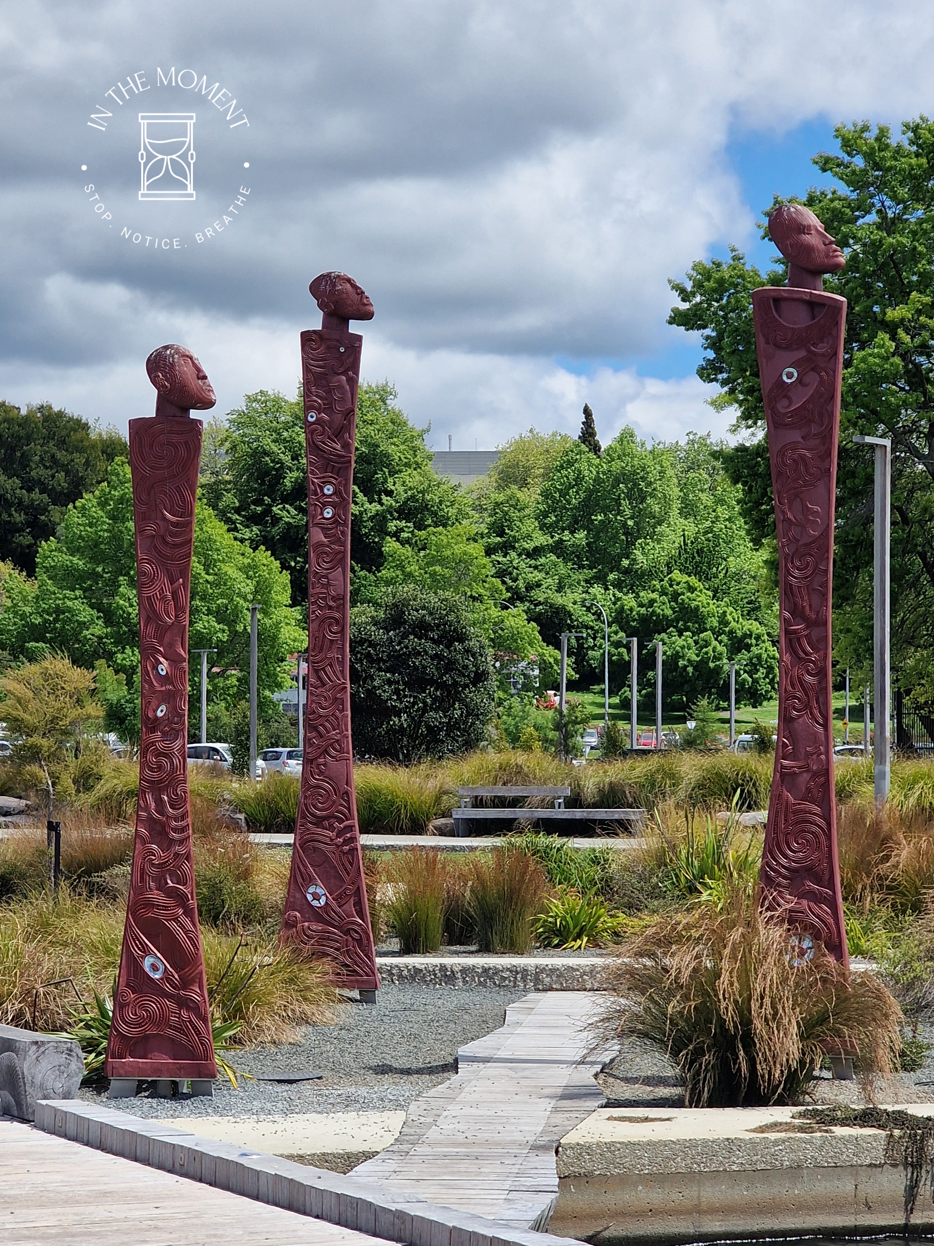Rotorua is truly an assault on your senses the moment you open your car door – or van in our case! Not only are there steaming holes and mud pools in the parks, alongside the famous Sulphur Point on Lake Rotorua itself, there is the smell. Now. Some reviews of places in and around tell you how beautiful places are if only it didn’t smell so much…duh, you are in Rotorua! Due to the very highly active geothermal activity here, there is a smell of sulphur in the air. Is it dreadful? No. Is it strong, sometimes. Should it stop you enjoying this totally alive place? ABSOLUTELY NOT! Rotorua is a wonder. There are signs in the parks and other places of interest telling you NOT to leave the footpath due to the high levels of activity and the proximity to the surface of hot springs, steam vents and boiling mud pools. It is a reminder of just how thin the earth’s crust is here. We absolutely love Rotorua. Our walk around the lake and Government Gardens was fascinating. There are sculptures everywhere, stunning street art and of course the geothermal activity. We walk up to Ohinemutu which is a living Maori village where we see the Te Papaiouru Marae. It is a stunning building. There are a huge number of steam vents and hot springs in this village and the geology of the land is reflected in the cemetery where the graves are above ground because of the thermal activity. Further on our walk through Kuirau Park, we treat our tired feet to a soak in the public footbaths (see photos) and what a treat, even if Cath did get her jeans soaked! Our lunch stop was on Eat Street, one part of a long street that covers about four blocks. Eat Street’s only business are eateries and to make this experience even more enjoyable, this particular part of the street has a covered walkway against the weather.