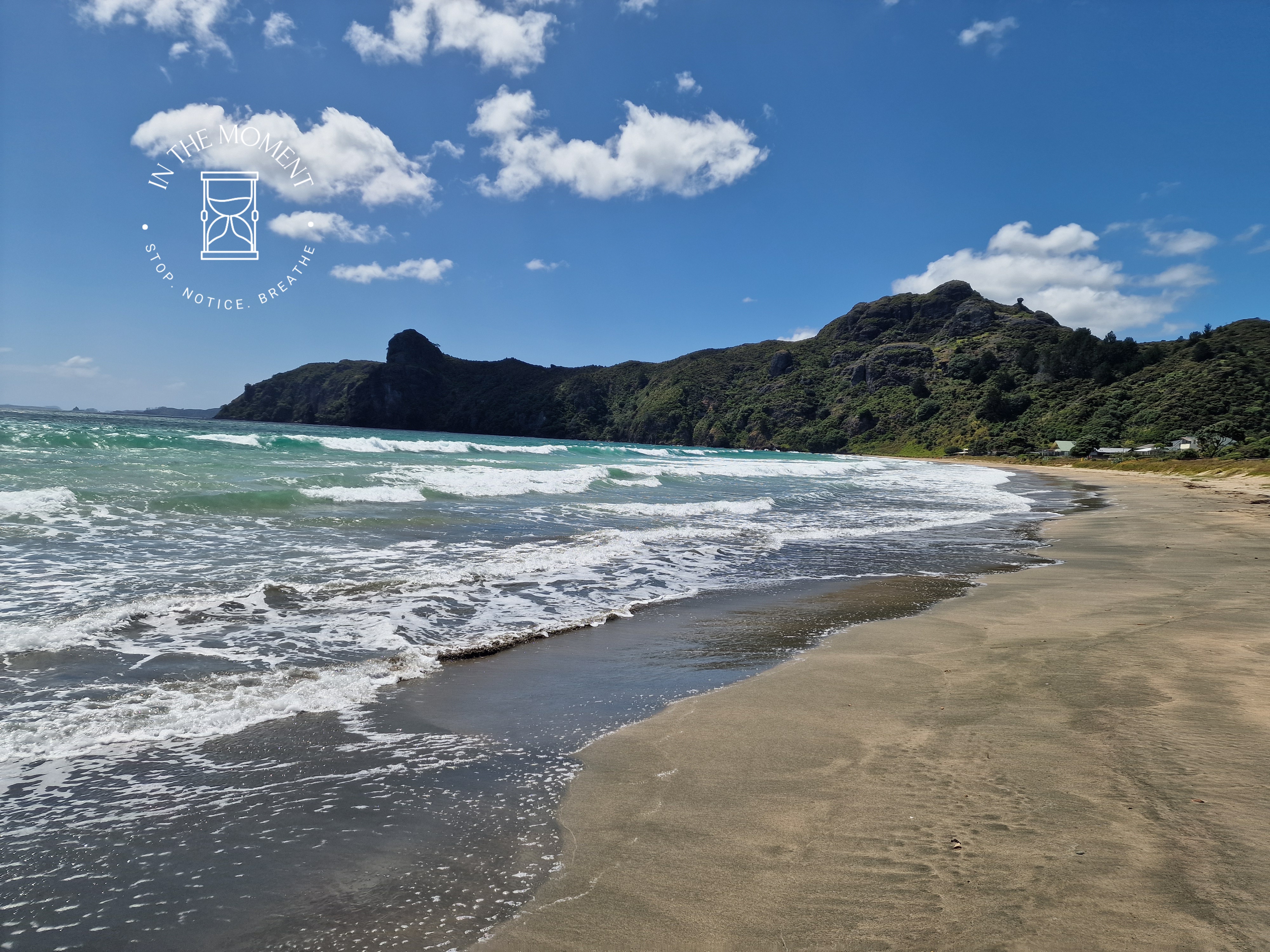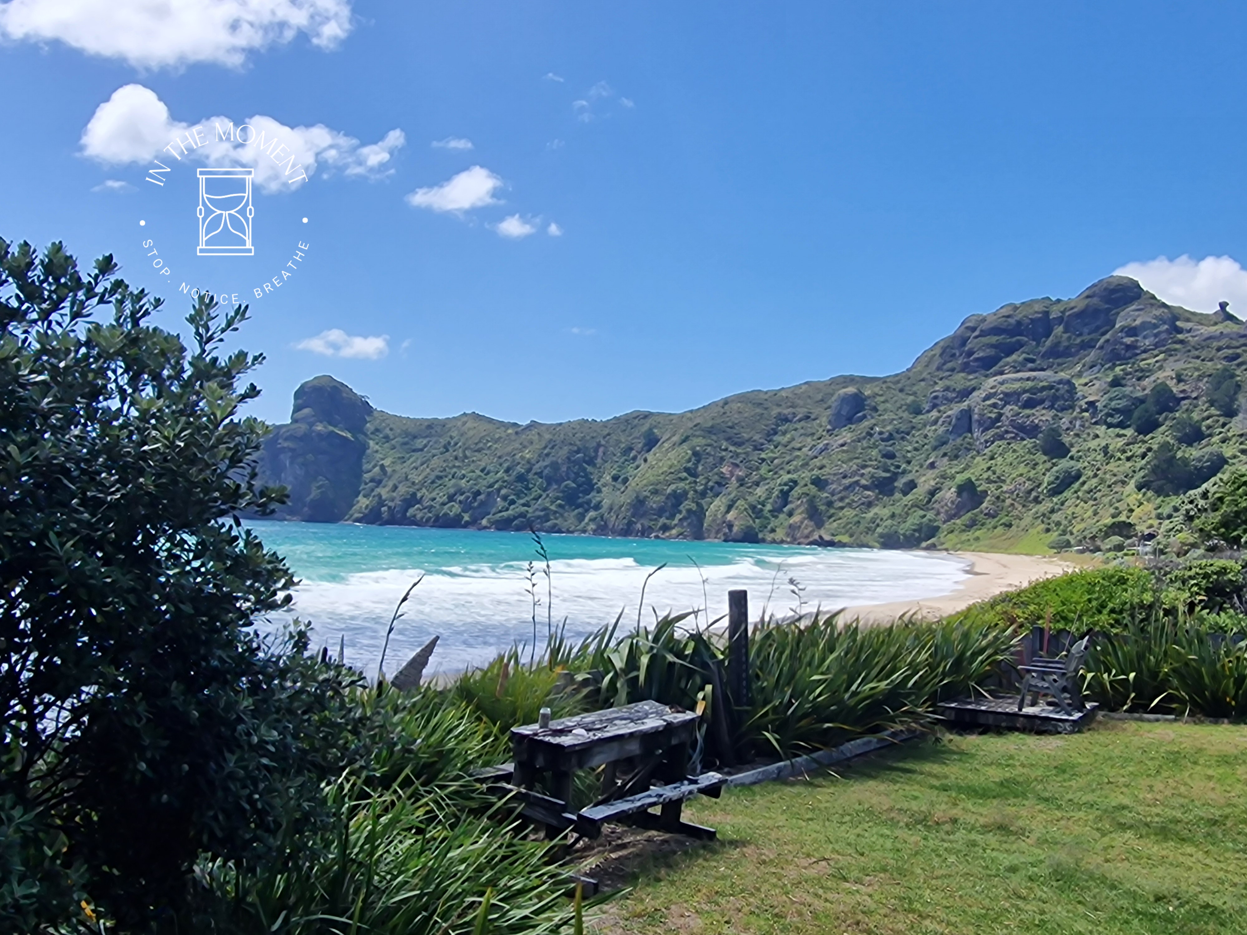Taupo Bay – Our next stop for the night is Taupo Bay. So pretty but it is absolutely blowing a gale and so we retreat back to our van for afternoon tea!