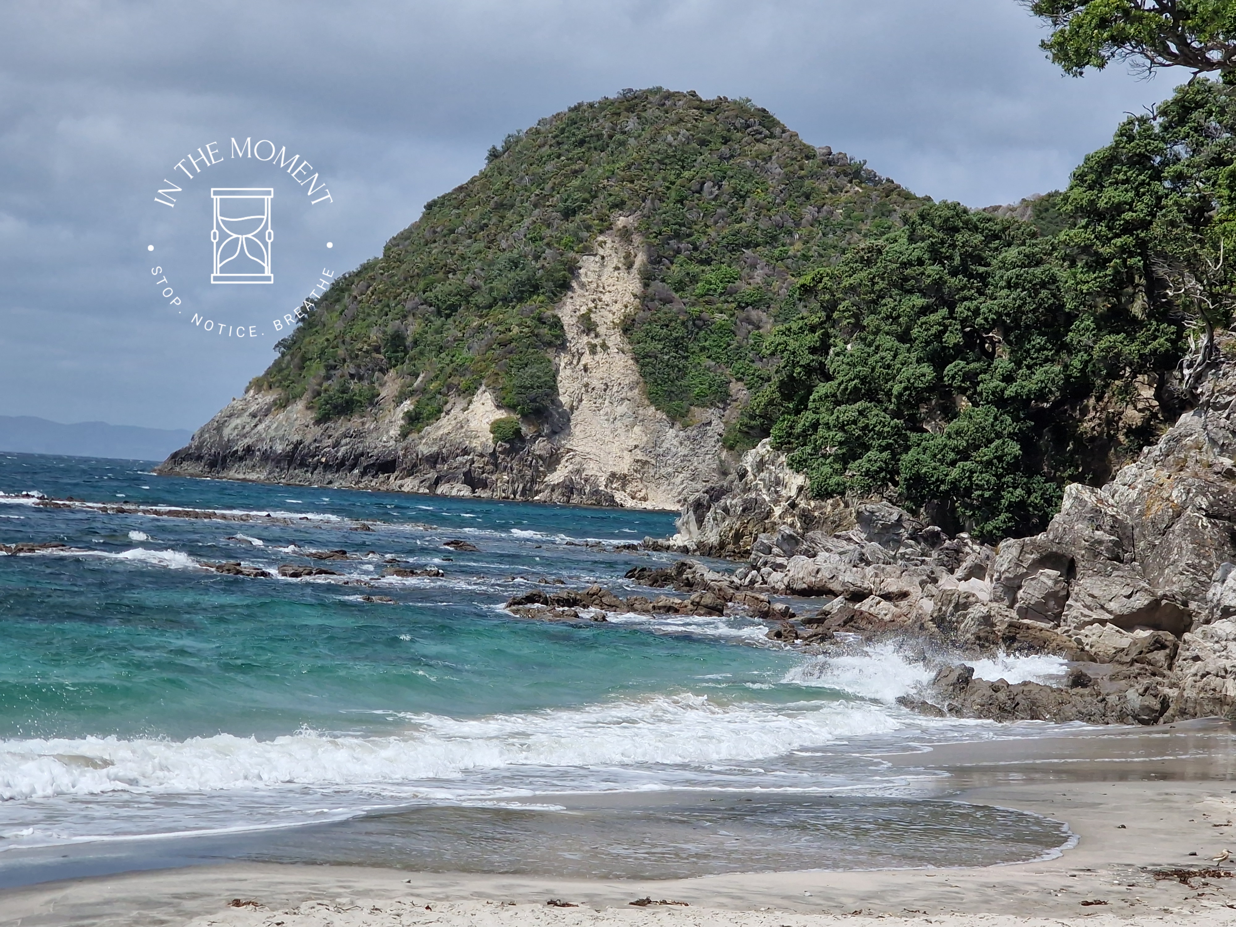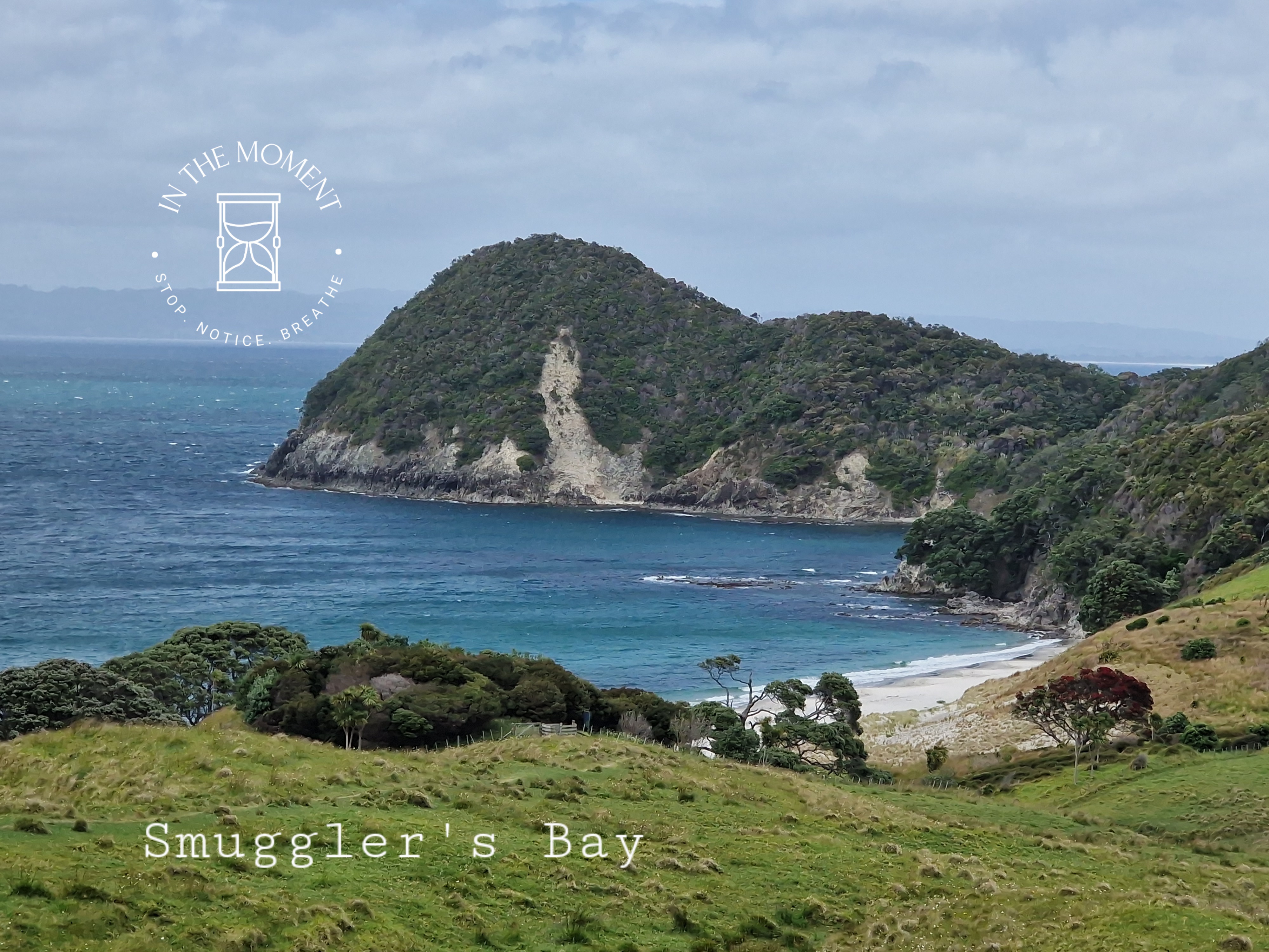 We head south east to Whangarei Heads – what an amazing landscape. Not only are the beaches beautiful but the ridges that we drive past and camp next to are what’s left of a volcano after an eruption 20 million years ago! Ocean Beach really lives up to it’s name – the pacific in all it’s glory. Bit too rough for us to go for a swim! Great place to camp for the night though. So many pohutukawas here, and all coming into bloom. In the morning, we drive across the end of the peninsular and go for a walk over farmland to try and find Smuggler’s Bay – it’s called this because Scottish settlers used to smuggle in crates of whiskey to avoid the tax man! Although the bay is stunningly beautiful, we had an upsetting experience when Don discovered a dead Hawksbill Turtle. We contacted DoC as these turtles are critically endangered. The rangers came, took measurements, DNA samples, checked for tags and then buried it. We both found this very poignant and upsetting. We camp not too far away at Reotahi Bay.