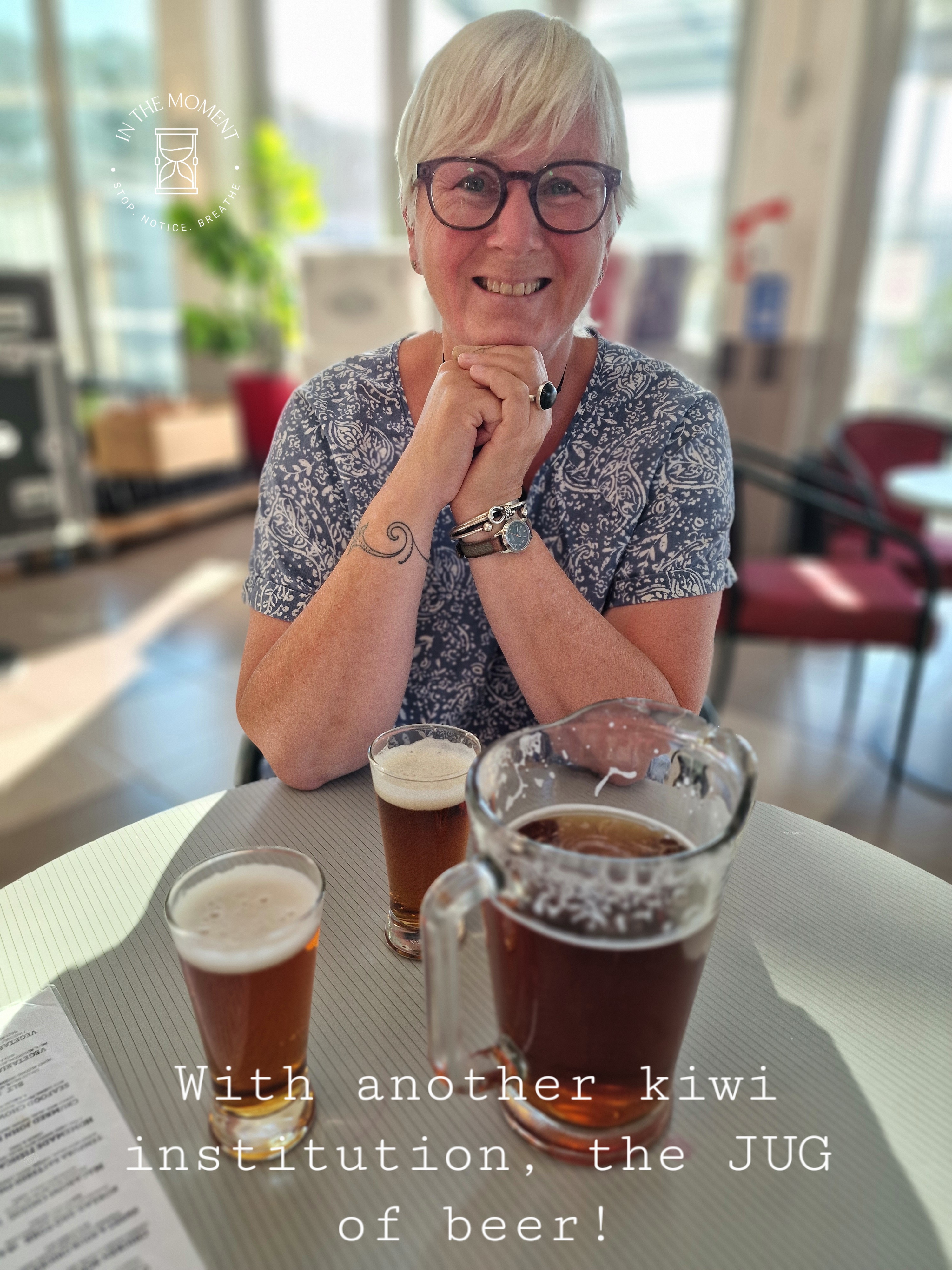 Art & Kiwi institutions – We make a visit to the Dowse Art Museum https://dowse.org.nz/ where we make some art – not the pillow garden though! Needless to say, we also pay a visit to Caffiend https://www.facebook.com/caffiendpetone/ for some excellent flat whites and of course a date scone. We also visit Janus in Lower Hutt for some lunch https://www.janus.co.nz/ their pies are amazing. Cath is also introduced to another Kiwi institution – the jug of beer!