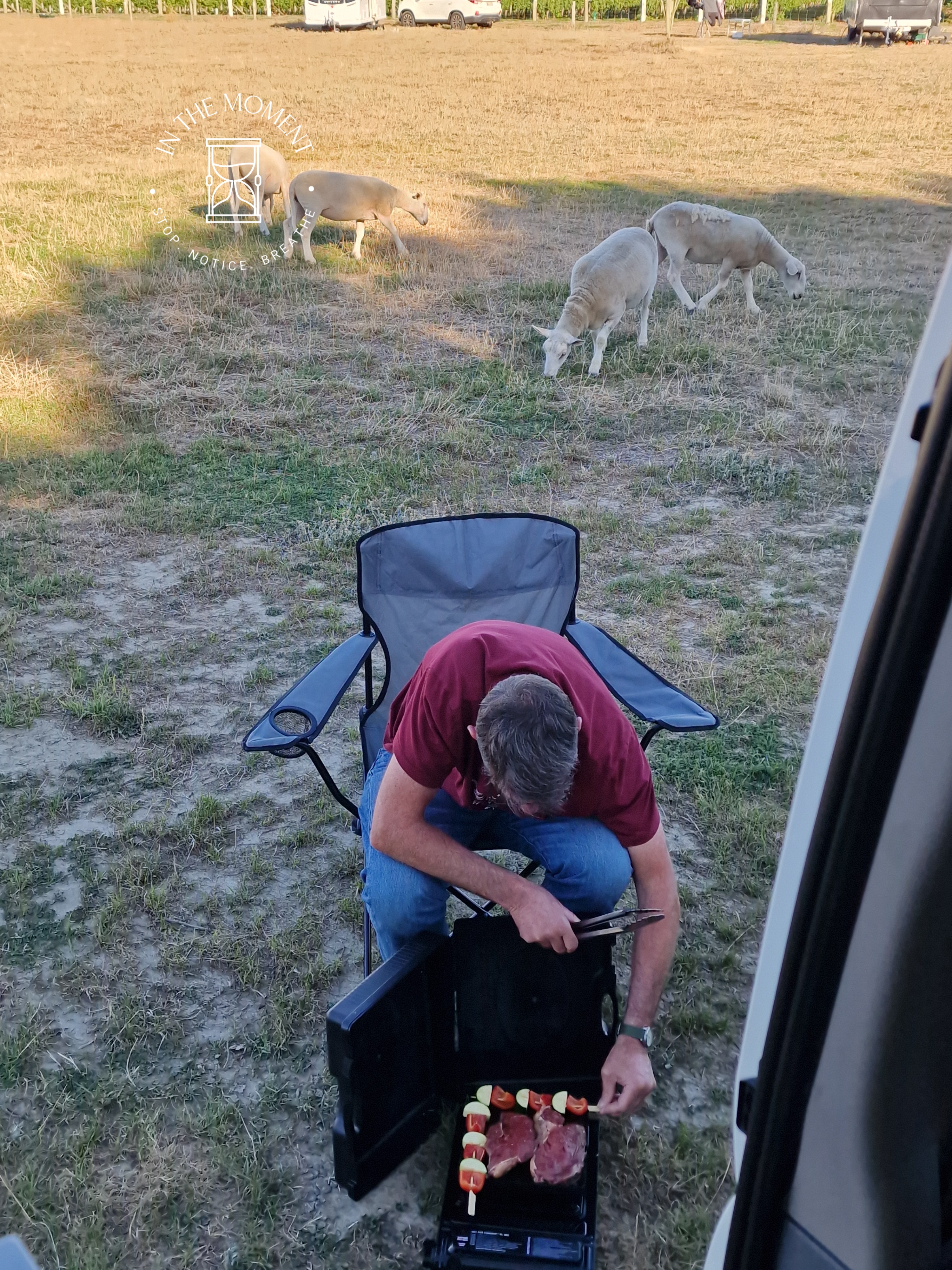 We stop overnight at a PoP that is situated on the edge of a vineyard. We enjoy happy hour with the hosts and Don has some company while he is cooking dinner!