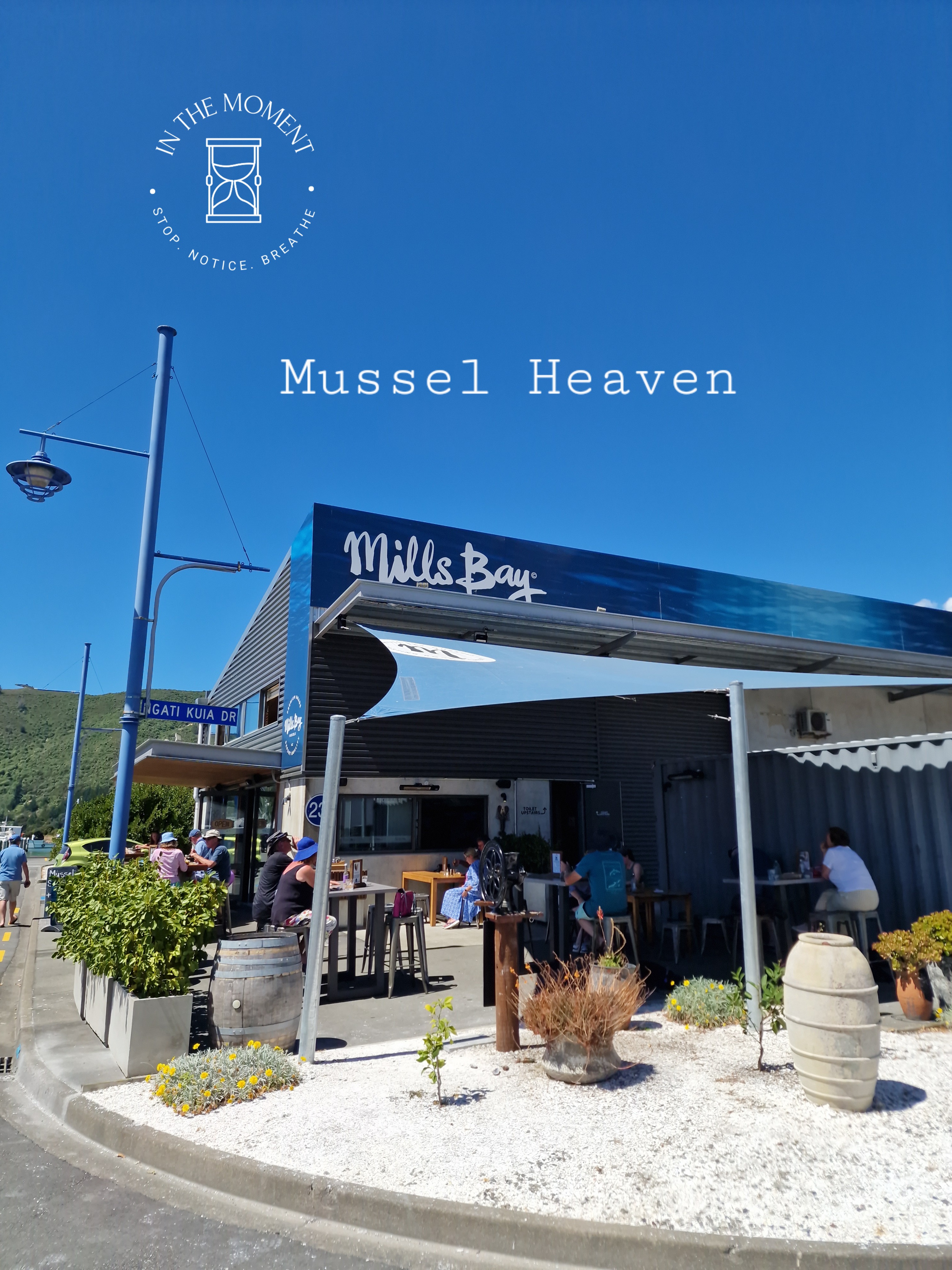 We stop for lunch in Havelock. This is the home of the green shell mussel. Our venue for lunch is Mills Bay Mussels…https://millsbaymussels.co.nz/ where we have classic steamed mussels. They were OMG good! Fat, juicy and full of flavour. If you are ever in Havelock you must go and try some. We stayed overnight here at the Havelock Hotel – and celebrated Valentine’s Day in our campervan with Hunter’s Bubbles and homemade guacamole in our van in the hotel car park!