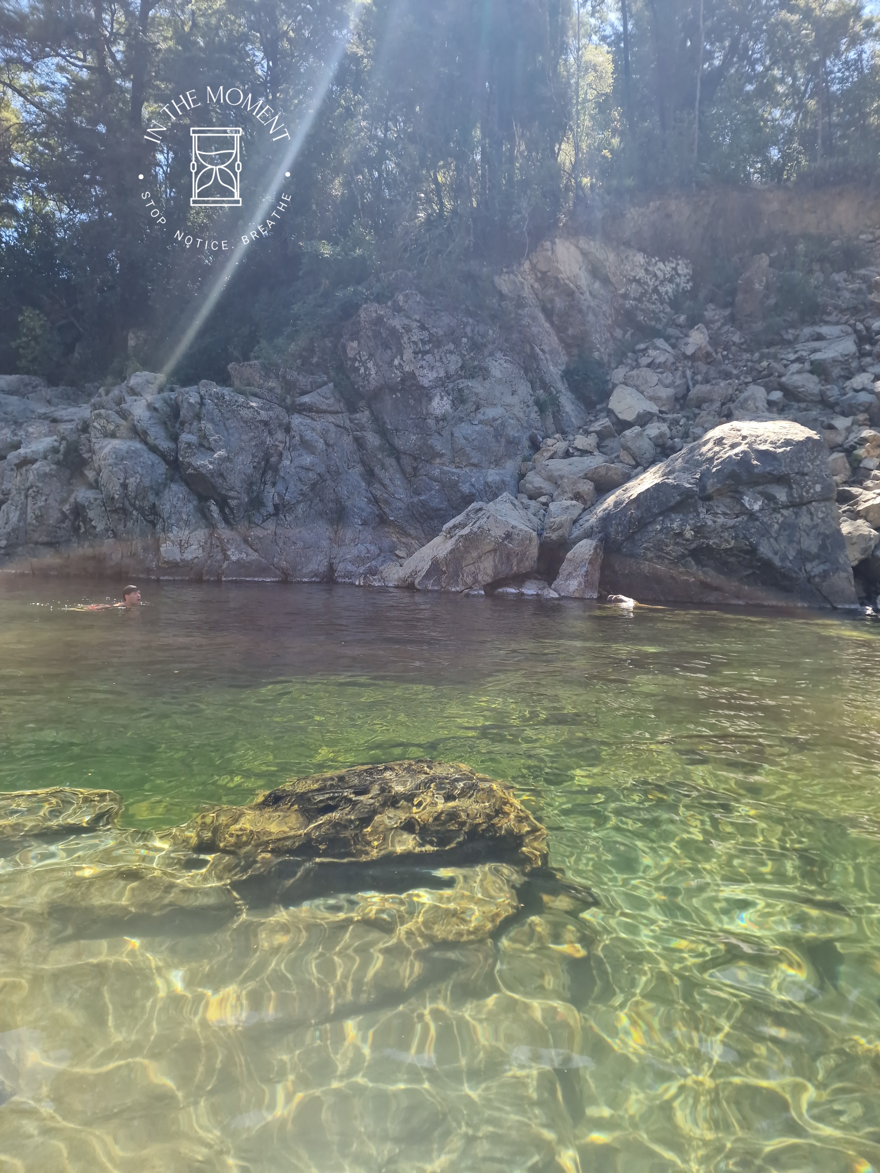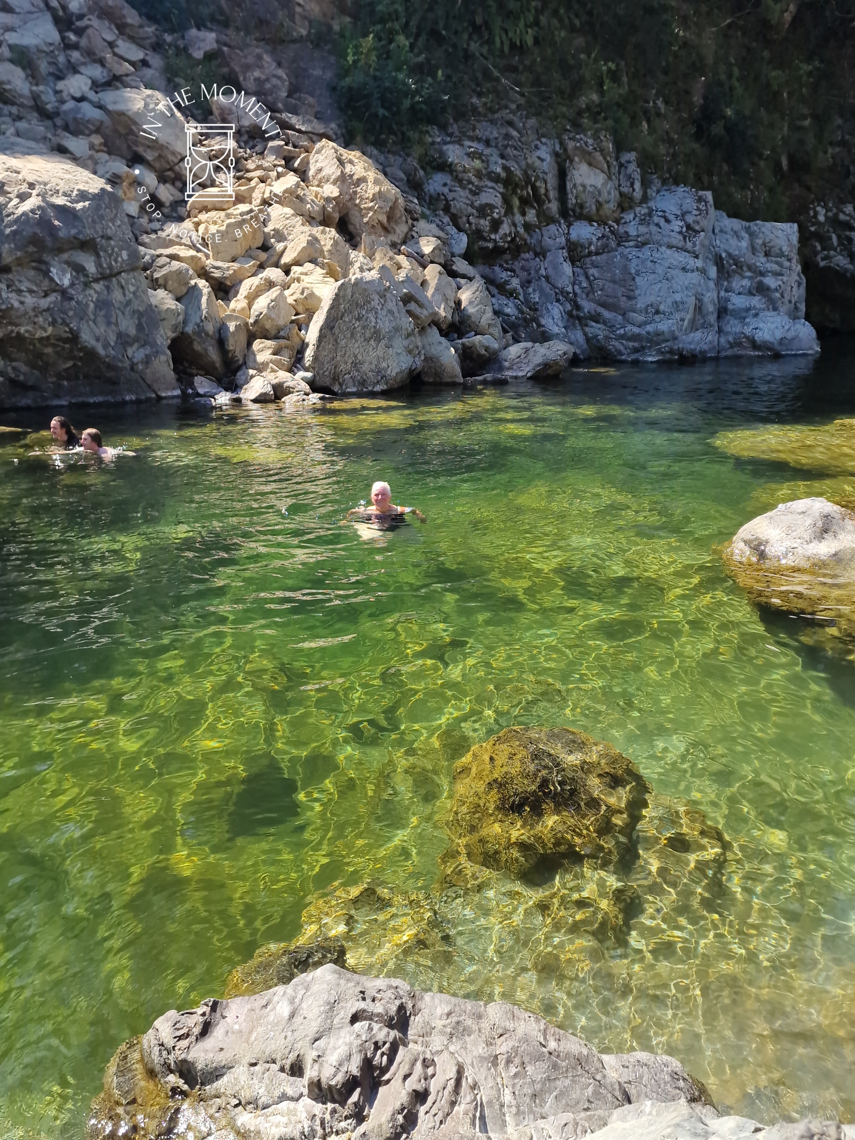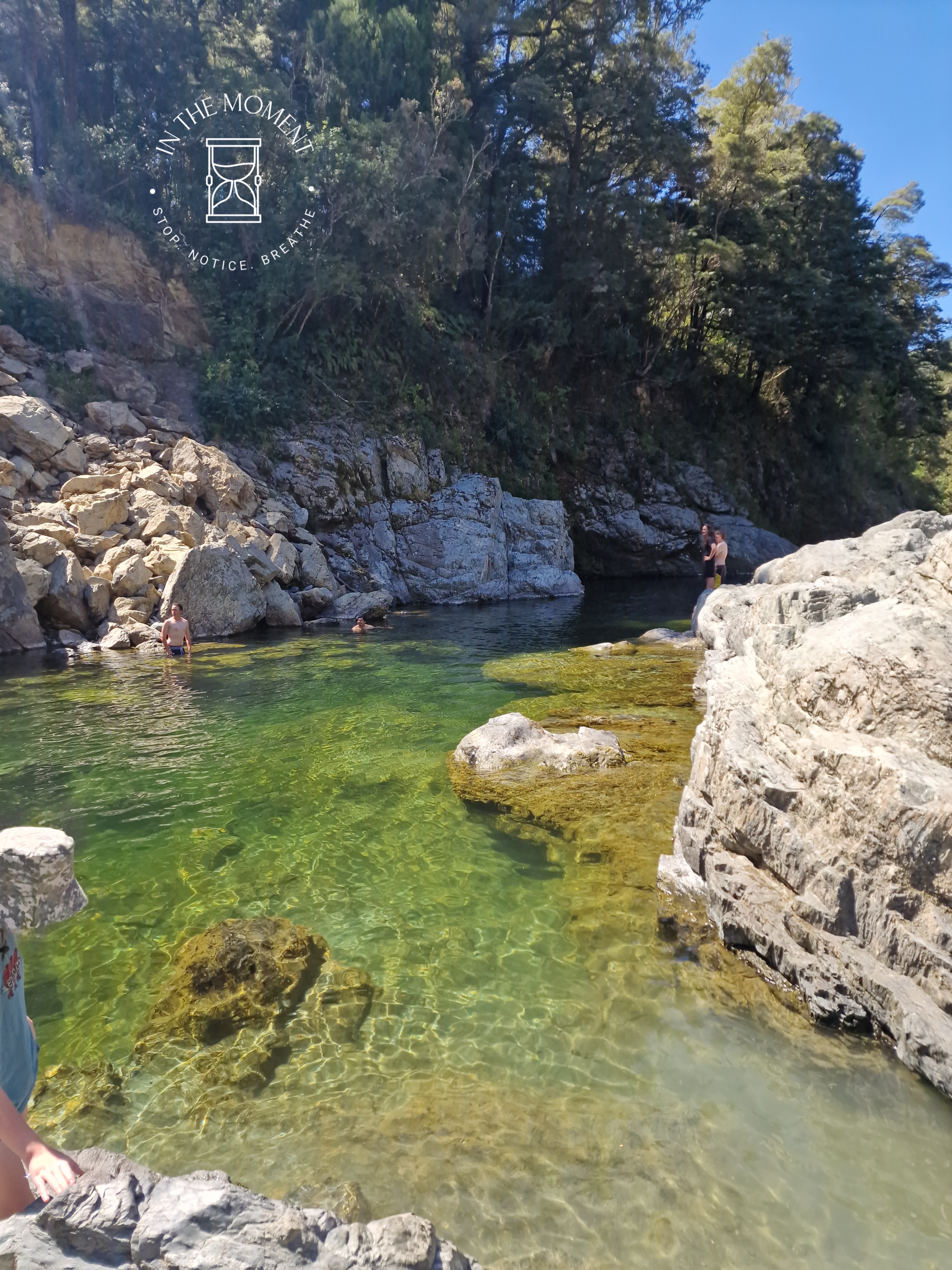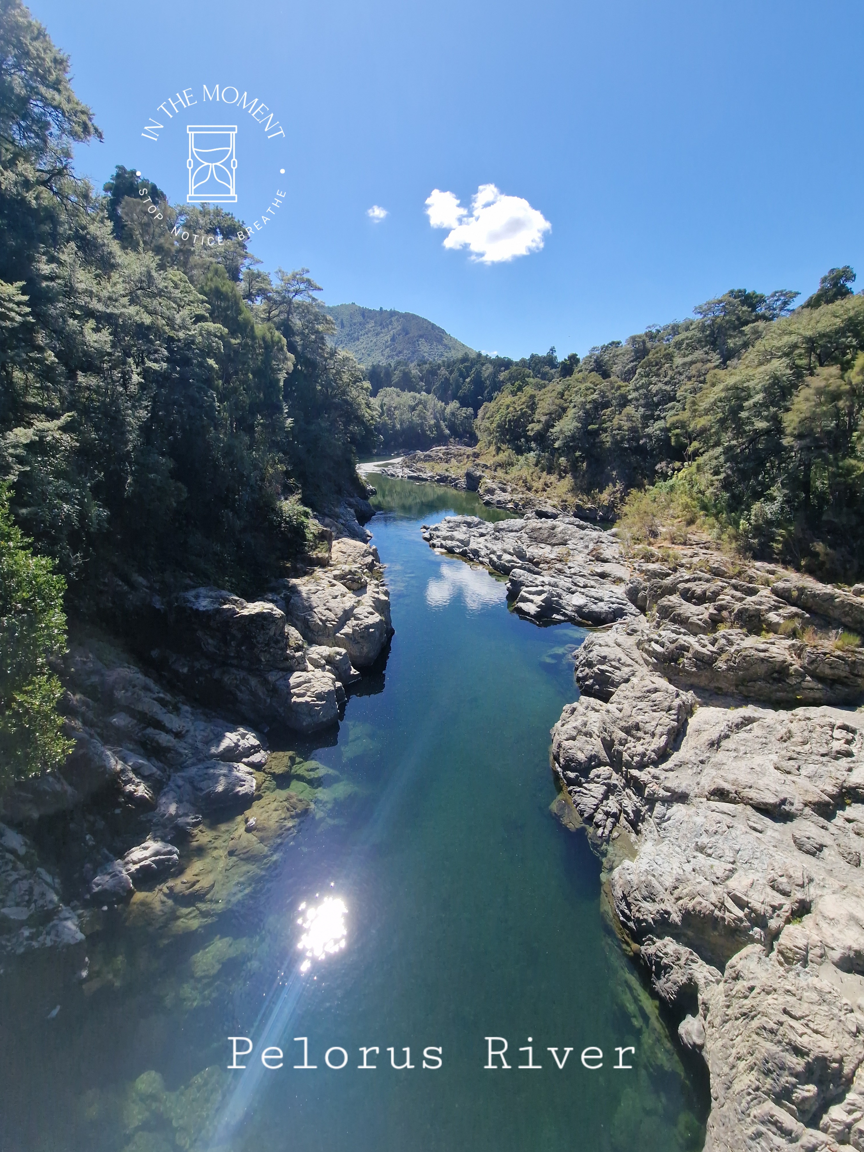 We are staying in a DoC campsite in the Pelorus Scenic Reserve at Pelorus Bridge. It is stunning here. It is a reserve that is situated next to the Pelorus River & there are a number of walks that you can do. We decided to try three – Tawa, Totora & the Circle Loop. The Circle Loop includes crossing over a swing bridge, which whilst looking solid, really does swing as you cross it. All in near 30 degree heat! Well, what is there to do after said walk…cool of in the river of course! Don is of course like a billy goat clambering over the rocks and is the first in to the water after leaping of into the warm waters of the river. I of course, tiptoe gently in all lady like. I do have a ‘first’ a bit later though. After some encouragement from Don, I take a leap of faith and leap of the rocks myself! First time ever. As they say…you’re never too old!