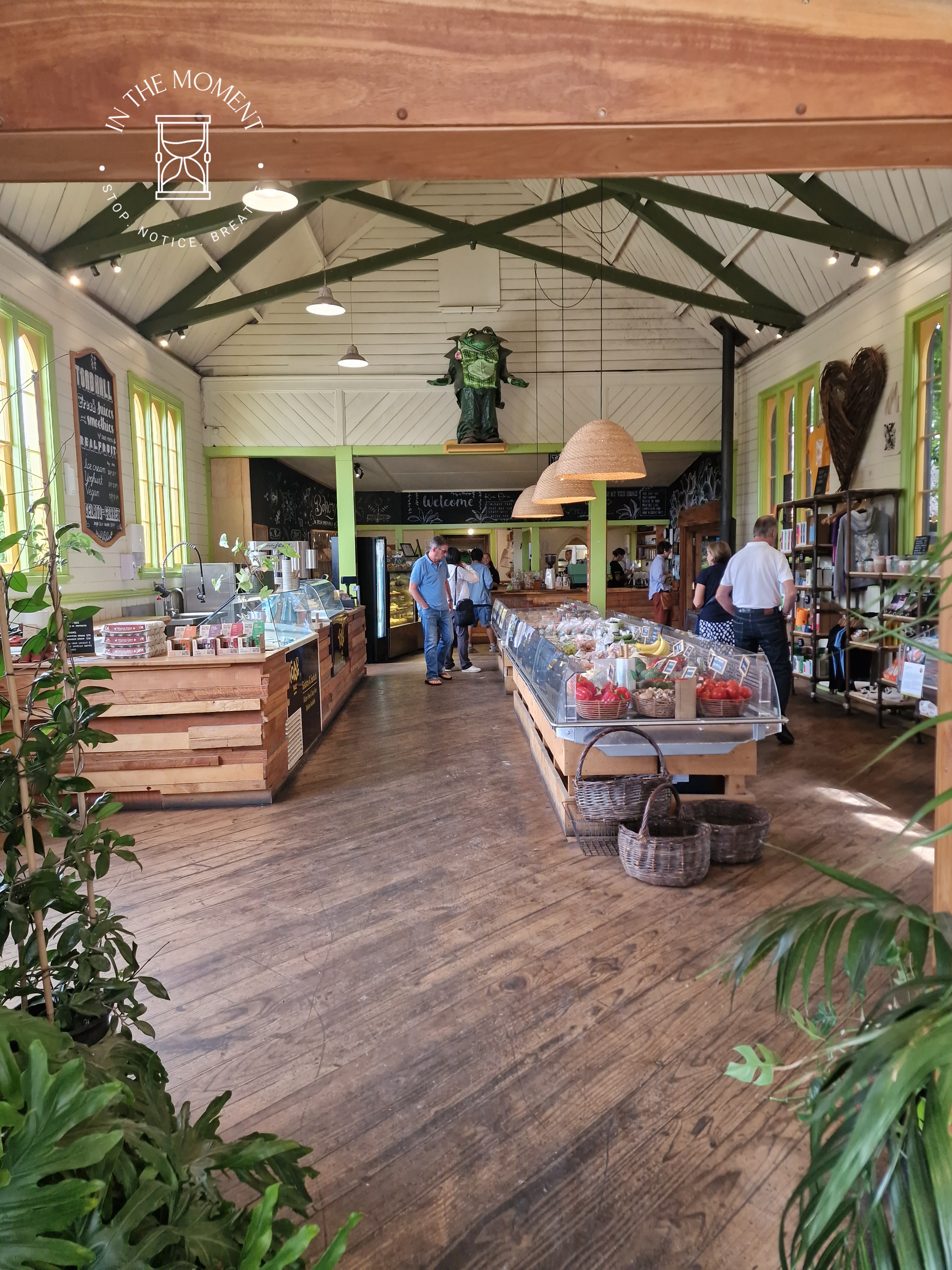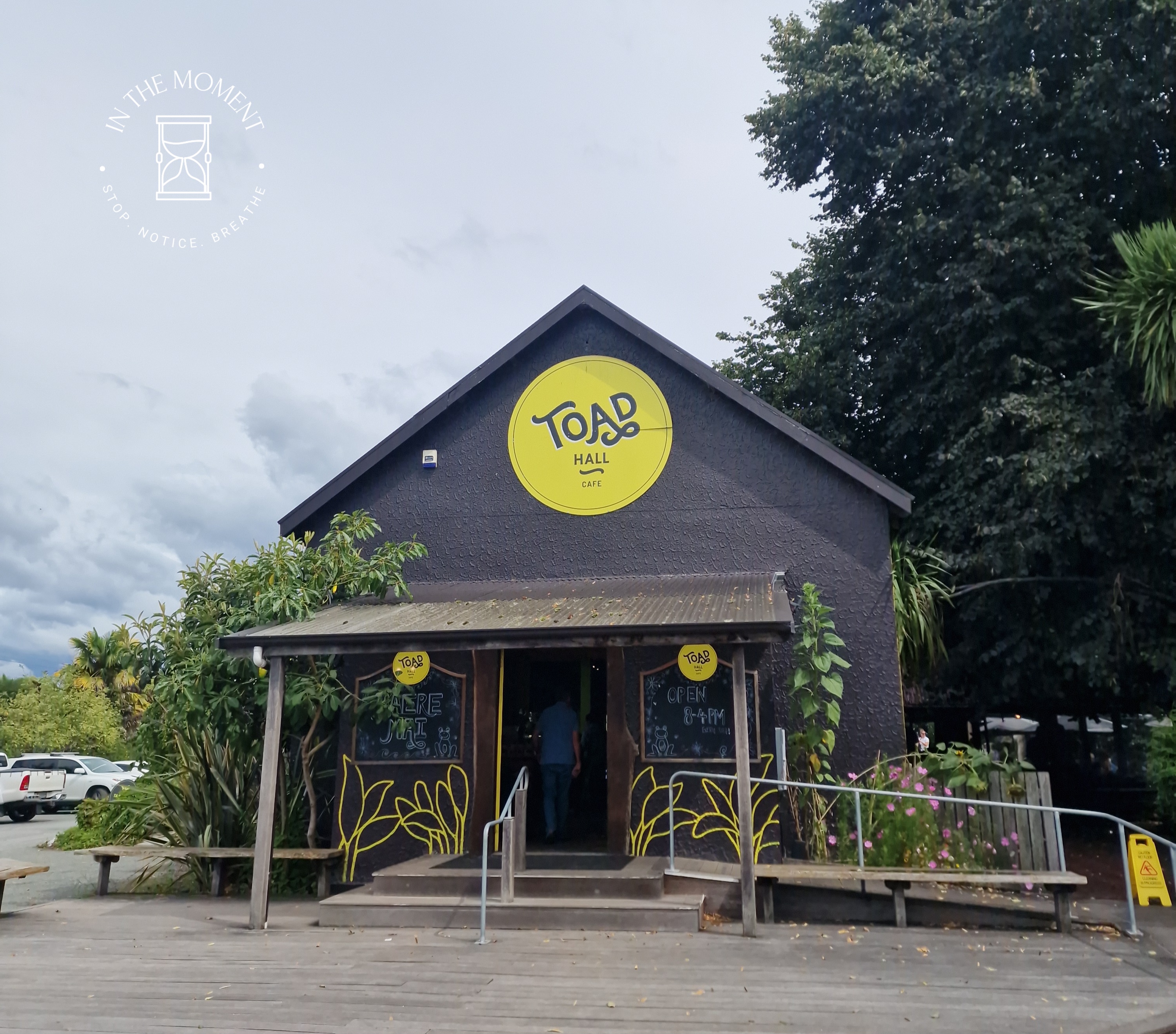 Motueka – we stop for flat whites and a date scone at Toad Hall, a very quirky cafe and grocery store.