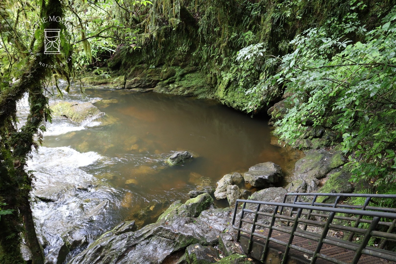 Riwaka – After Nelson, we stopped at the Riwaka Resurgence where the Riwaka river pours out of Takaka Hill. You walk through the forest to where the river emerges. Usually this pool and river are clear but after 2 days of rain, it was a rather muddy brown colour. What force the water had though.