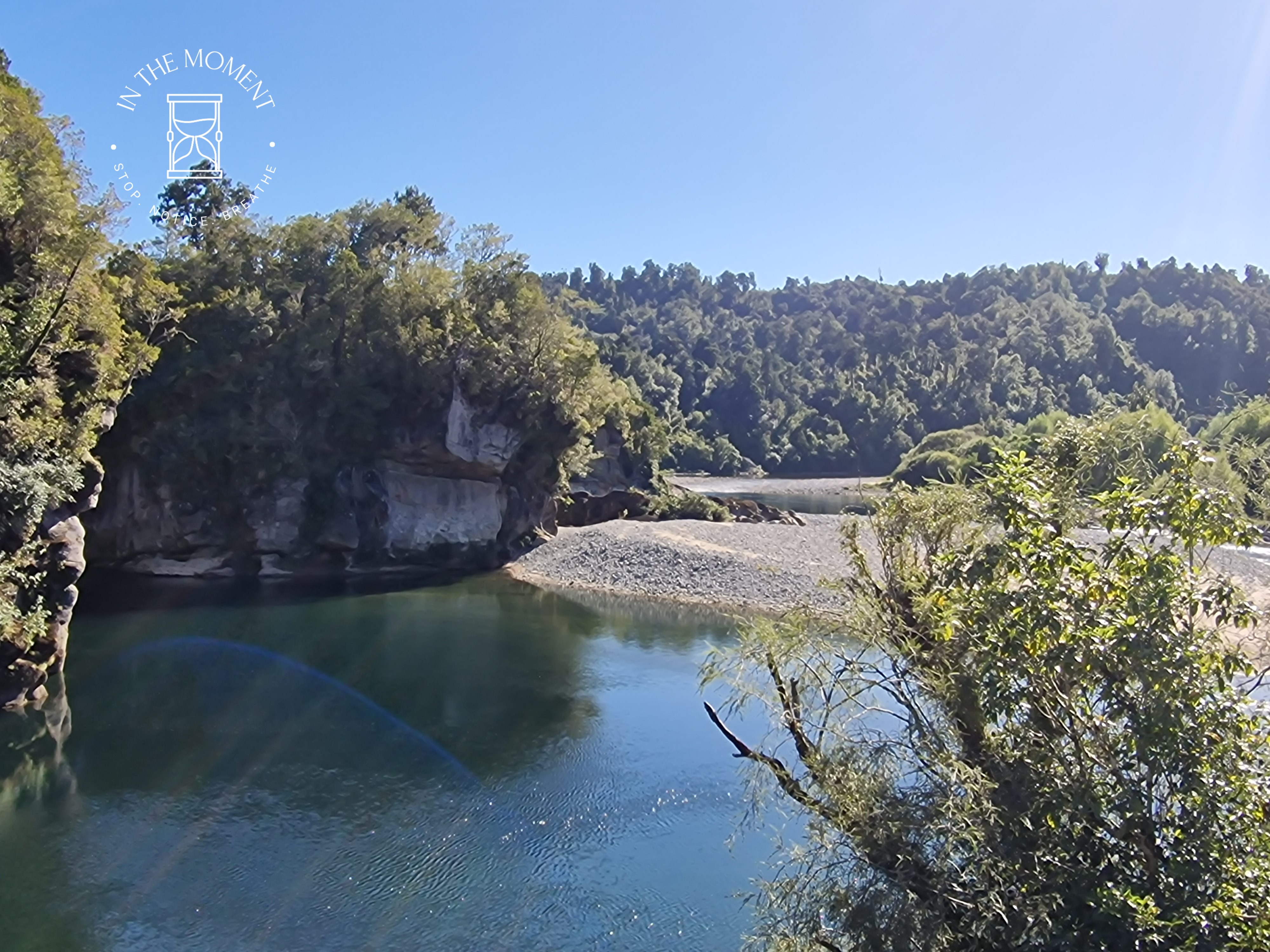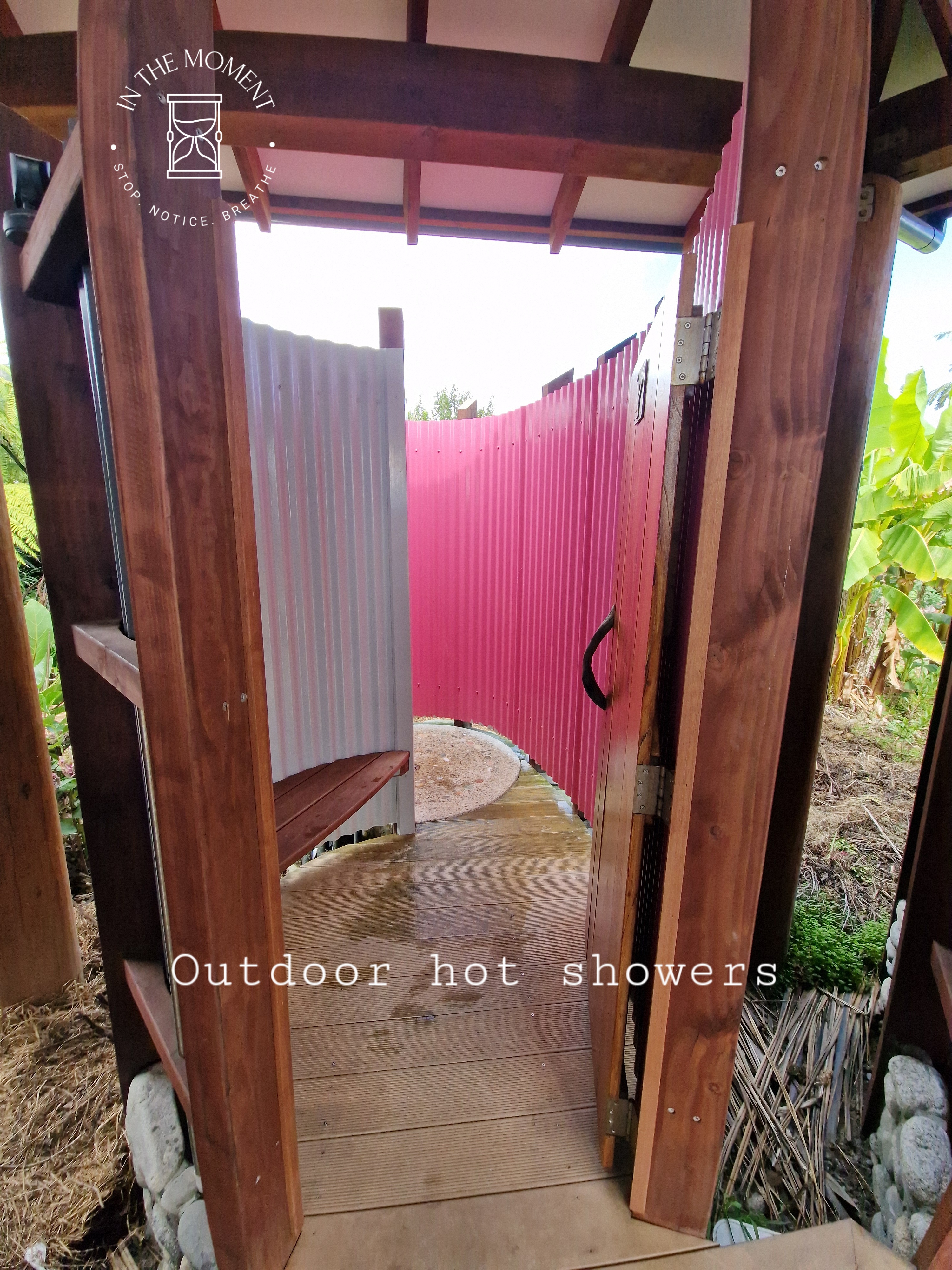 After leaving Karamea, we head south where, enroute, we stop at Lake Hanlon. Short walk from the road to the lake which is mirror like. It was said to have been caused by the 1929 Murchison earthquake but this is now disputed. It is, non the less, lovely. Our camp for the night was recommended to us – Gentle Annie. It was very quirky, right on the beach and we loved it! Mostly because of the fact that the hot showers were outside!