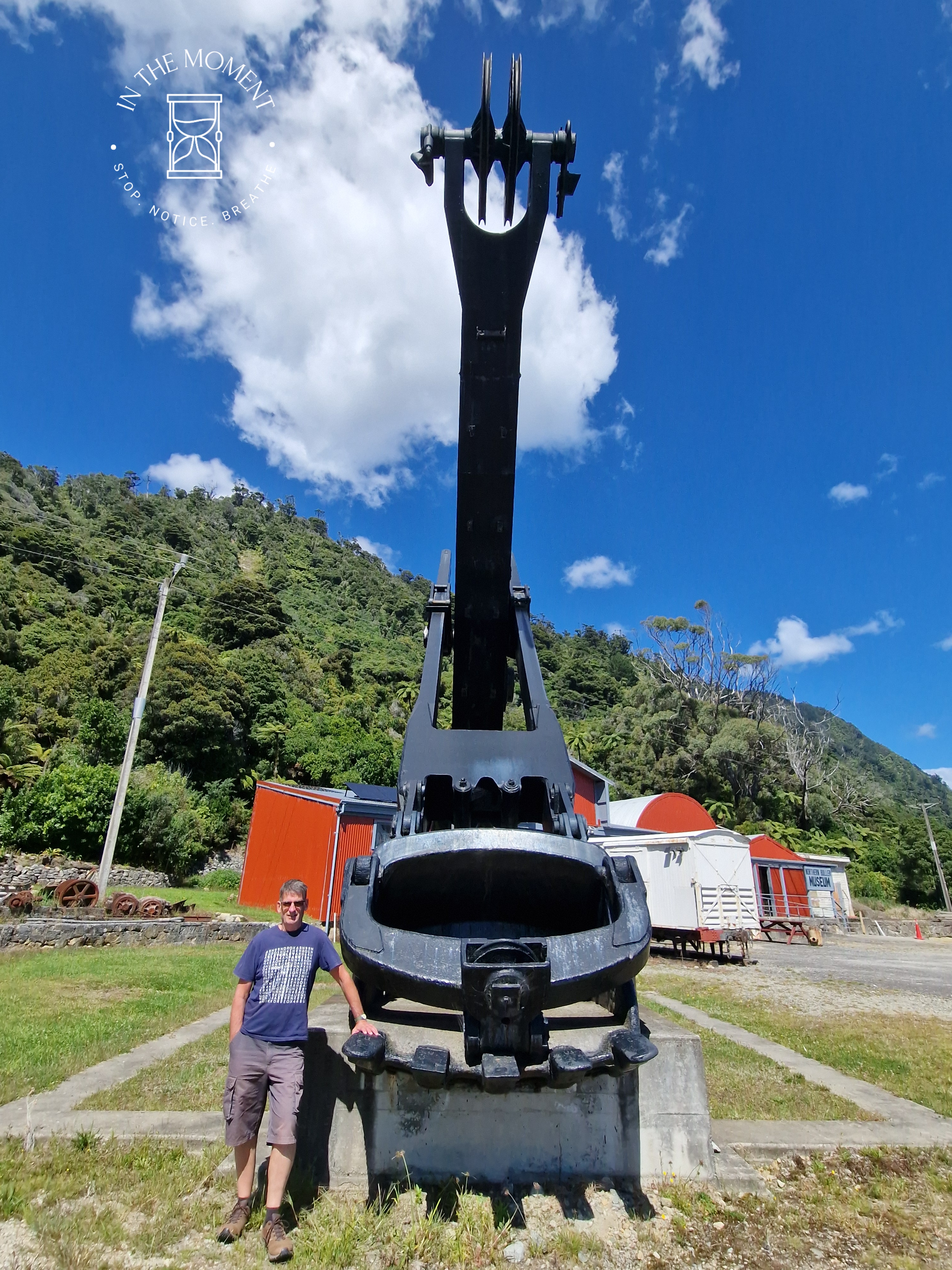 A little further down SH67, you come to Granity and Stockton. We stopped to see the current coal that had just been brought down from the open cast mine being poured into great big piles. presumably ready for shipping. We have a look around the North Buller Museum which is filled with items collected from the mining families who lived in the area. The huge chomping arm from the 1947 Marion Electric Shovel was amazing to see!.