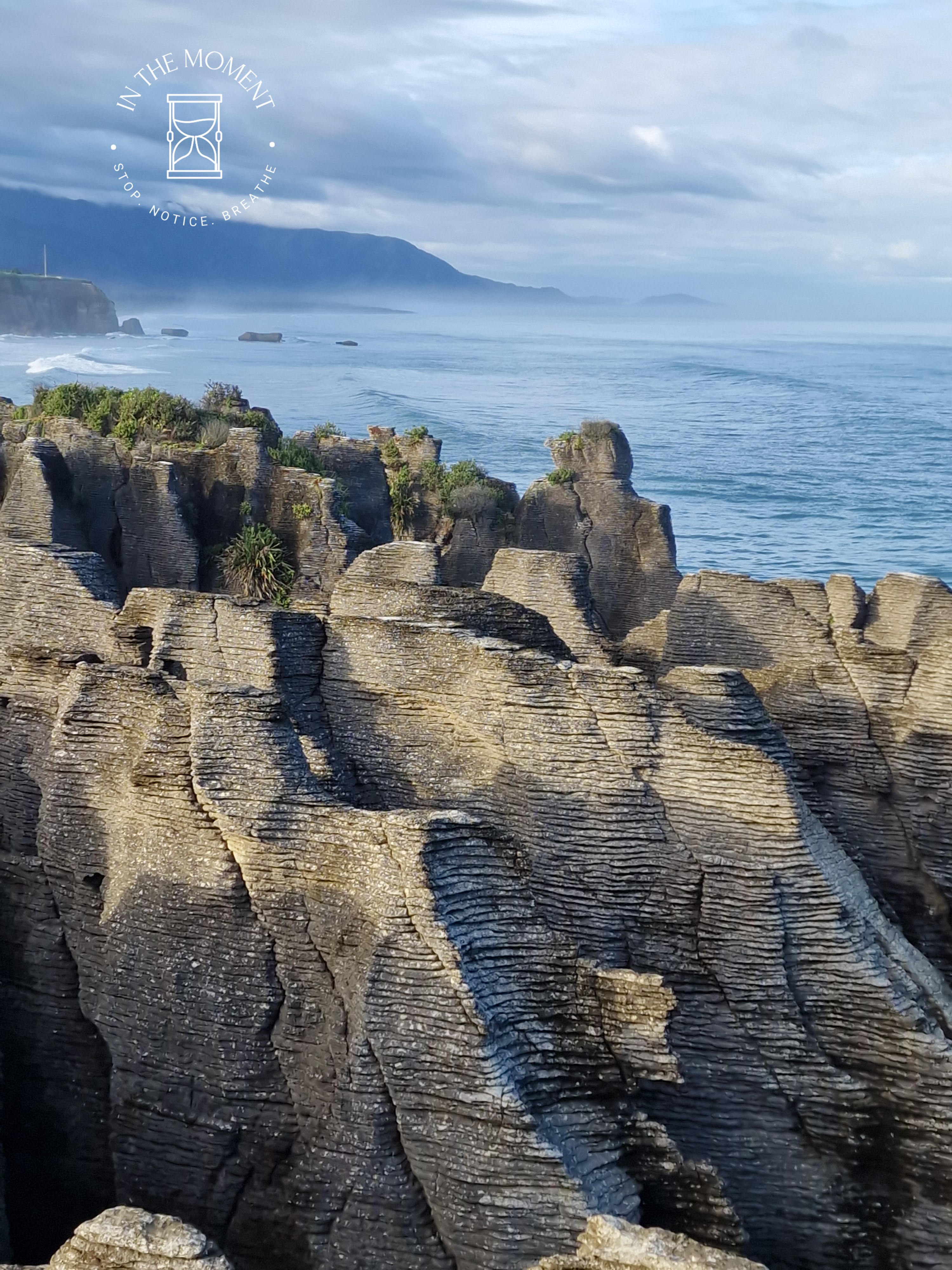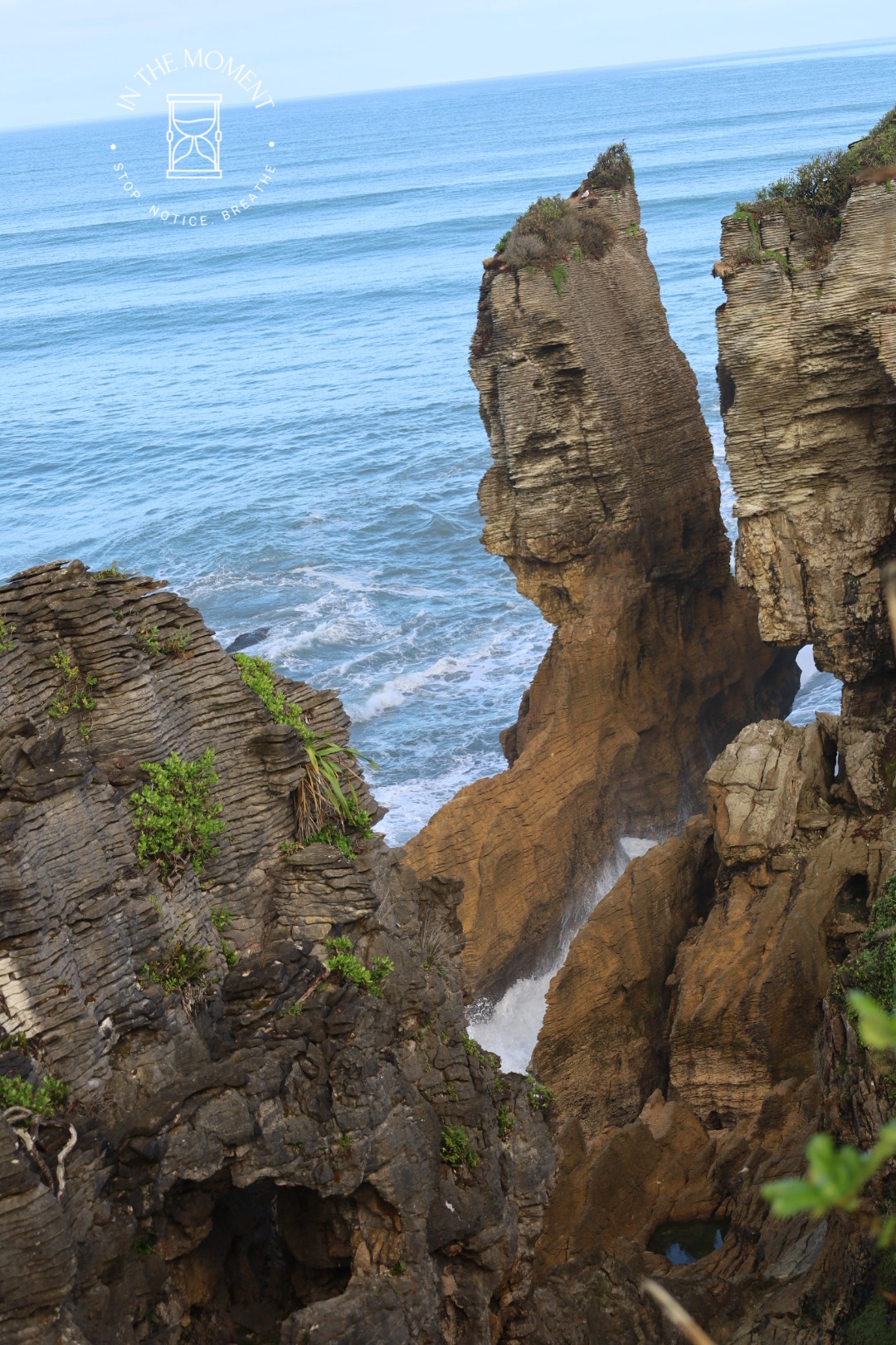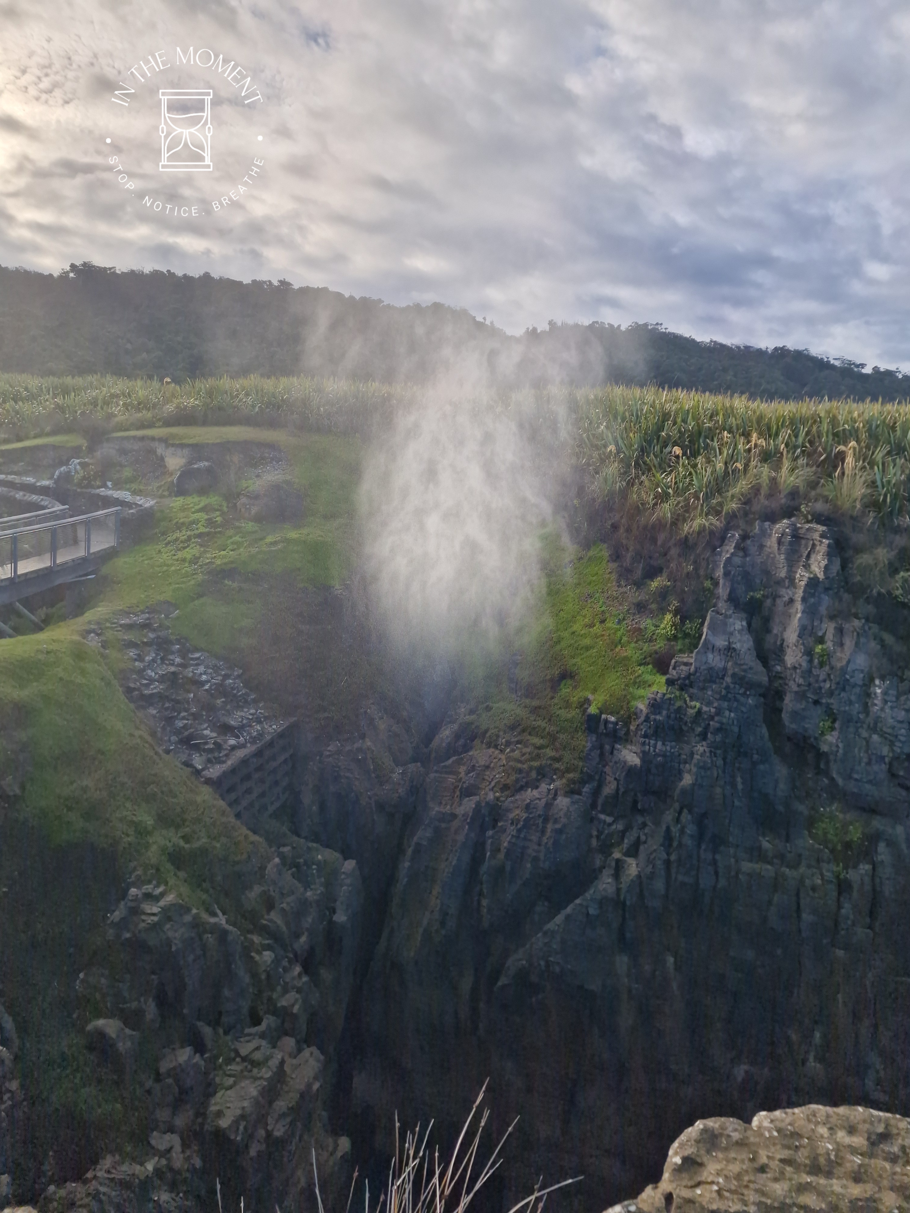 Punakaiki – We were up at the crack of dawn for our visit to Punakaiki (Pancake Rocks) as the best time to see them is when it is high tide and preferably when there is a big sea swell. You are led on a very neat path along a loop walk that makes sure you get as many opportunities as possible to see and hear the sea smashing against the rocks. The ‘Pancake’ effect is caused by millions of years of limestone and papa rock layering. This walk is a real assault on your senses. Sight, sound, smell. Huge booms as the waves break against the rocks, sea spray exhaling from the ‘Chimney Pot’. It was so amazing. There was one place where as we walked past, there was this really loud intake of breath type sound and then another like an exhale – but no water in sight. Didn’t see the sign that said – BEWARE SUDDEN LOUD NOISE. Had a lovely coffee with some cheeky company at the visitors centre after.