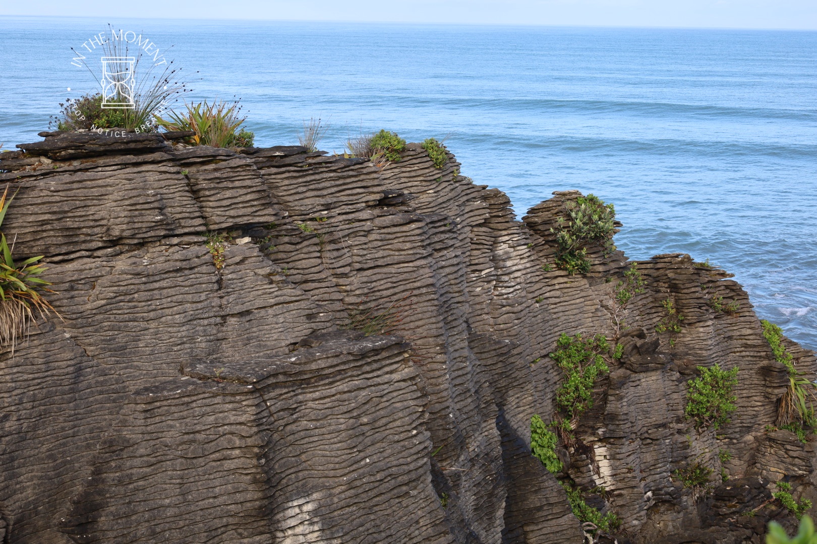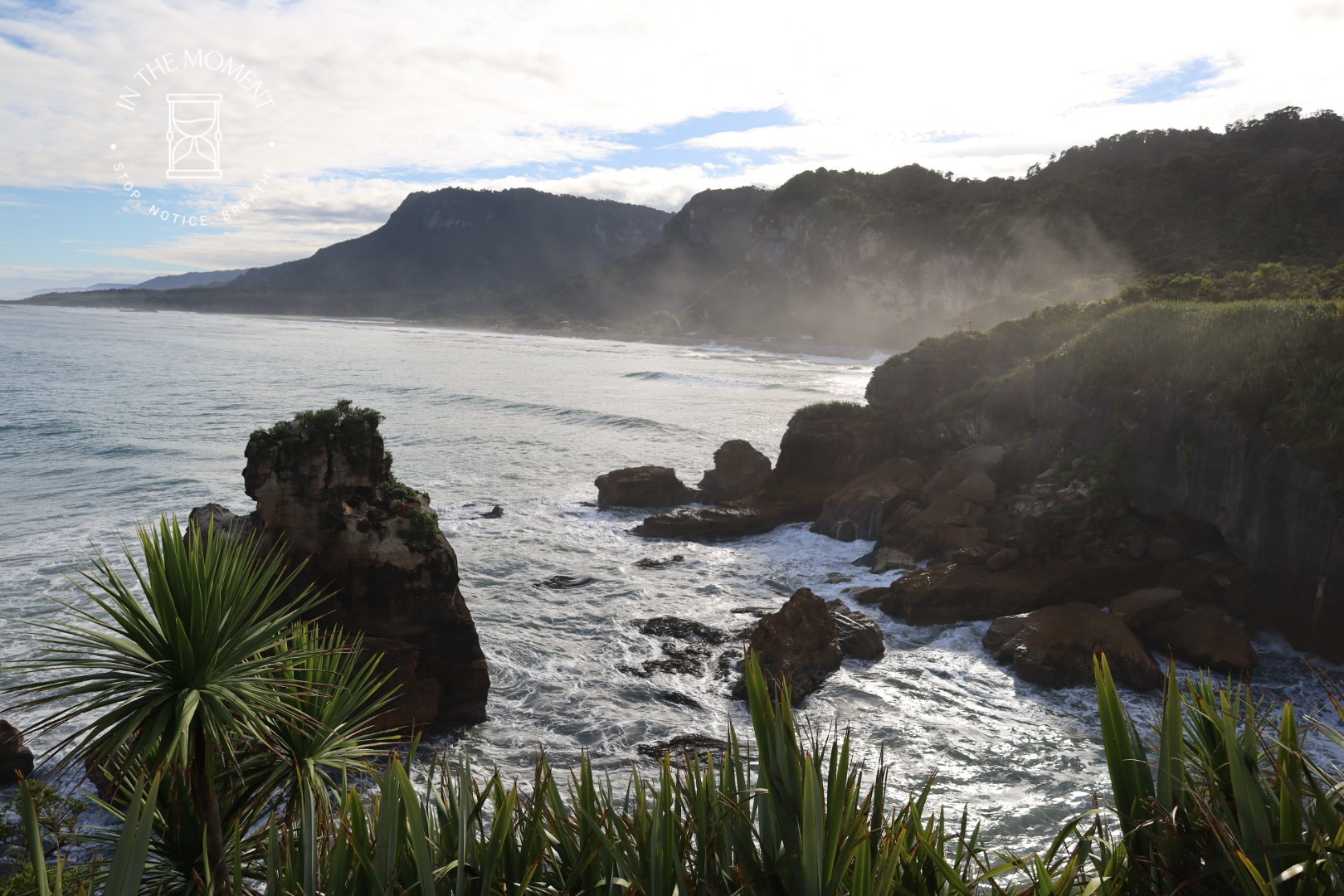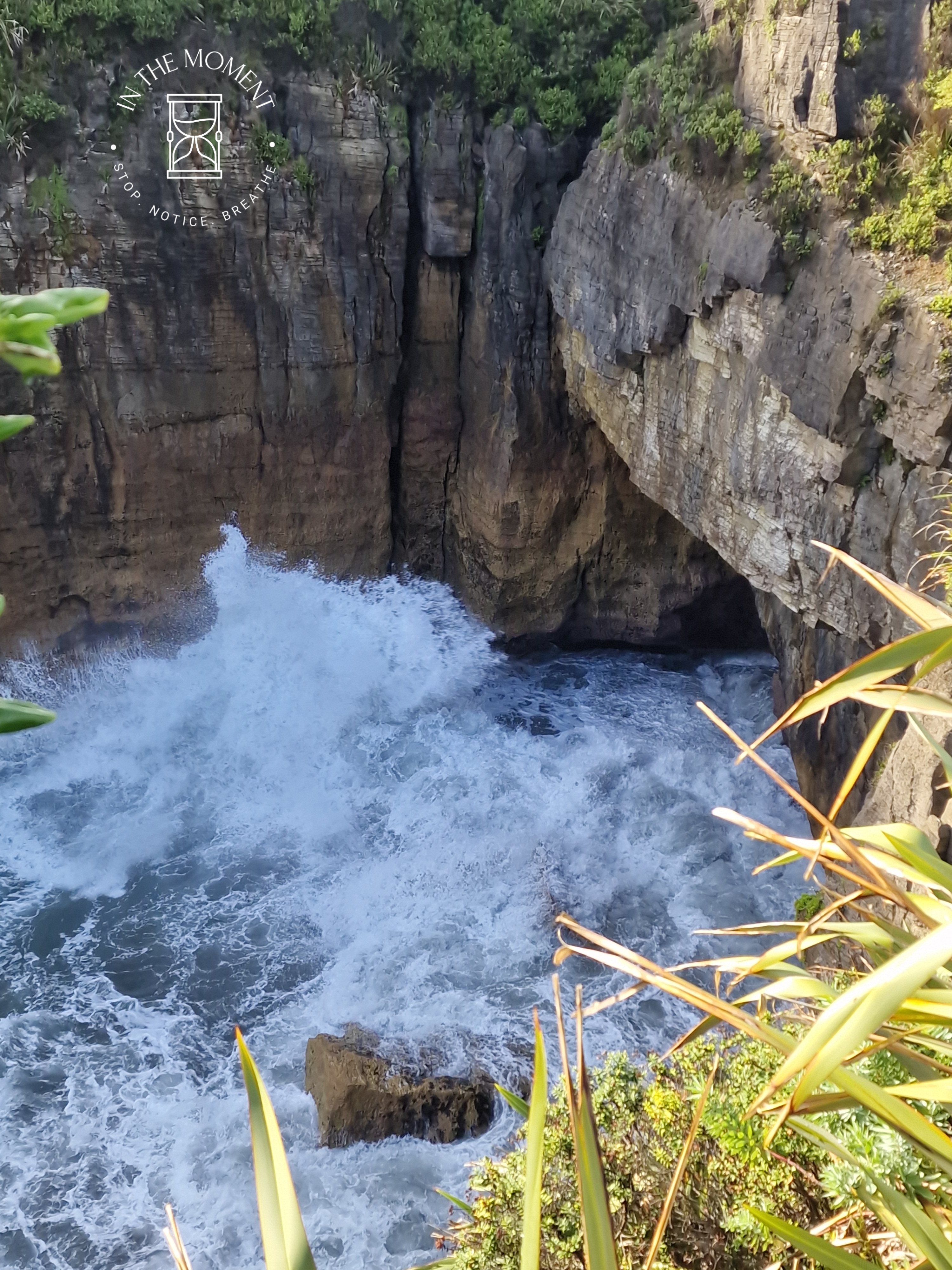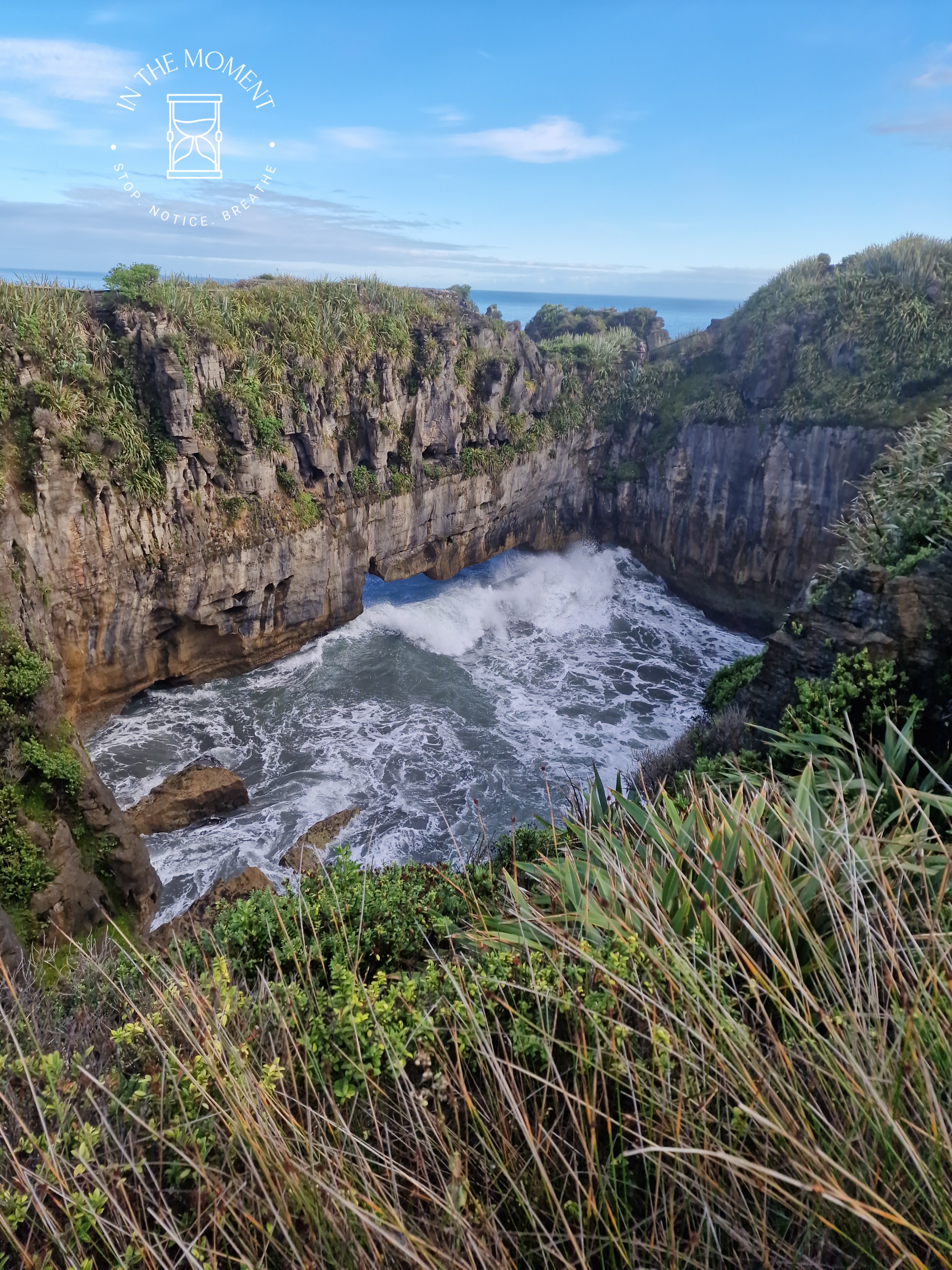 Punakaiki – We were up at the crack of dawn for our visit to Punakaiki (Pancake Rocks) as the best time to see them is when it is high tide and preferably when there is a big sea swell. You are led on a very neat path along a loop walk that makes sure you get as many opportunities as possible to see and hear the sea smashing against the rocks. The ‘Pancake’ effect is caused by millions of years of limestone and papa rock layering. This walk is a real assault on your senses. Sight, sound, smell. Huge booms as the waves break against the rocks, sea spray exhaling from the ‘Chimney Pot’. It was so amazing. There was one place where as we walked past, there was this really loud intake of breath type sound and then another like an exhale – but no water in sight. Didn’t see the sign that said – BEWARE SUDDEN LOUD NOISE. Had a lovely coffee with some cheeky company at the visitors centre after.