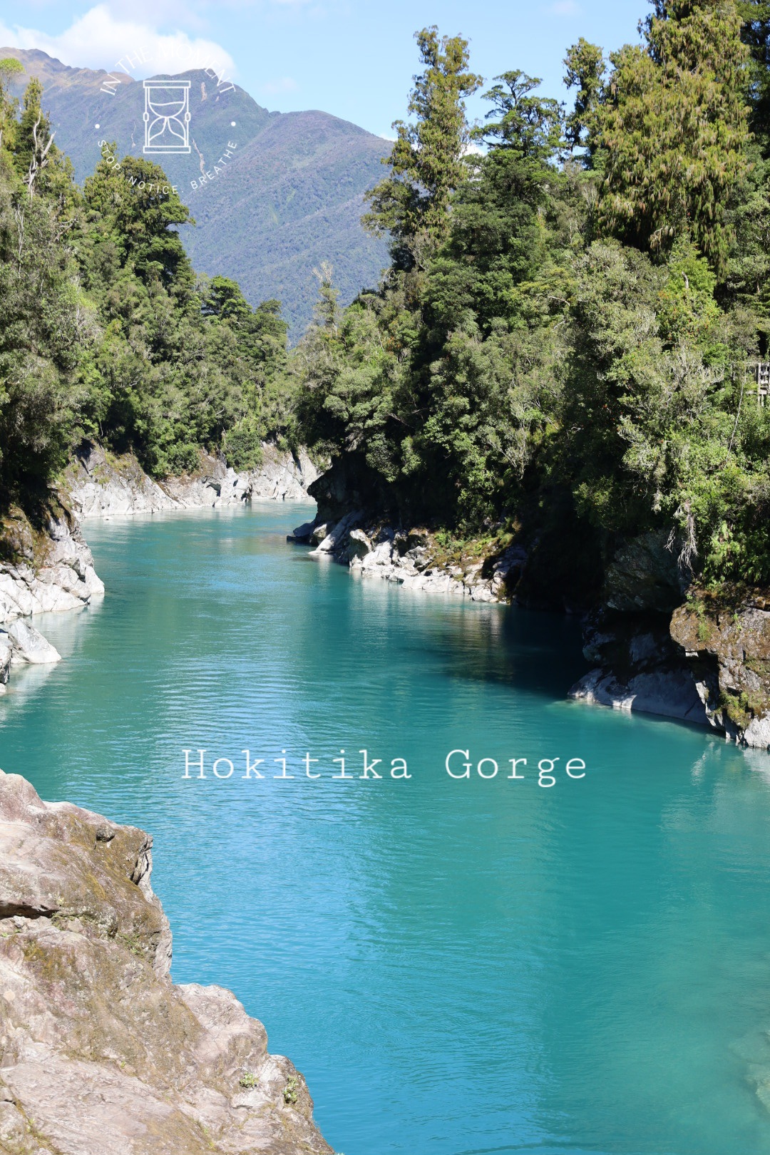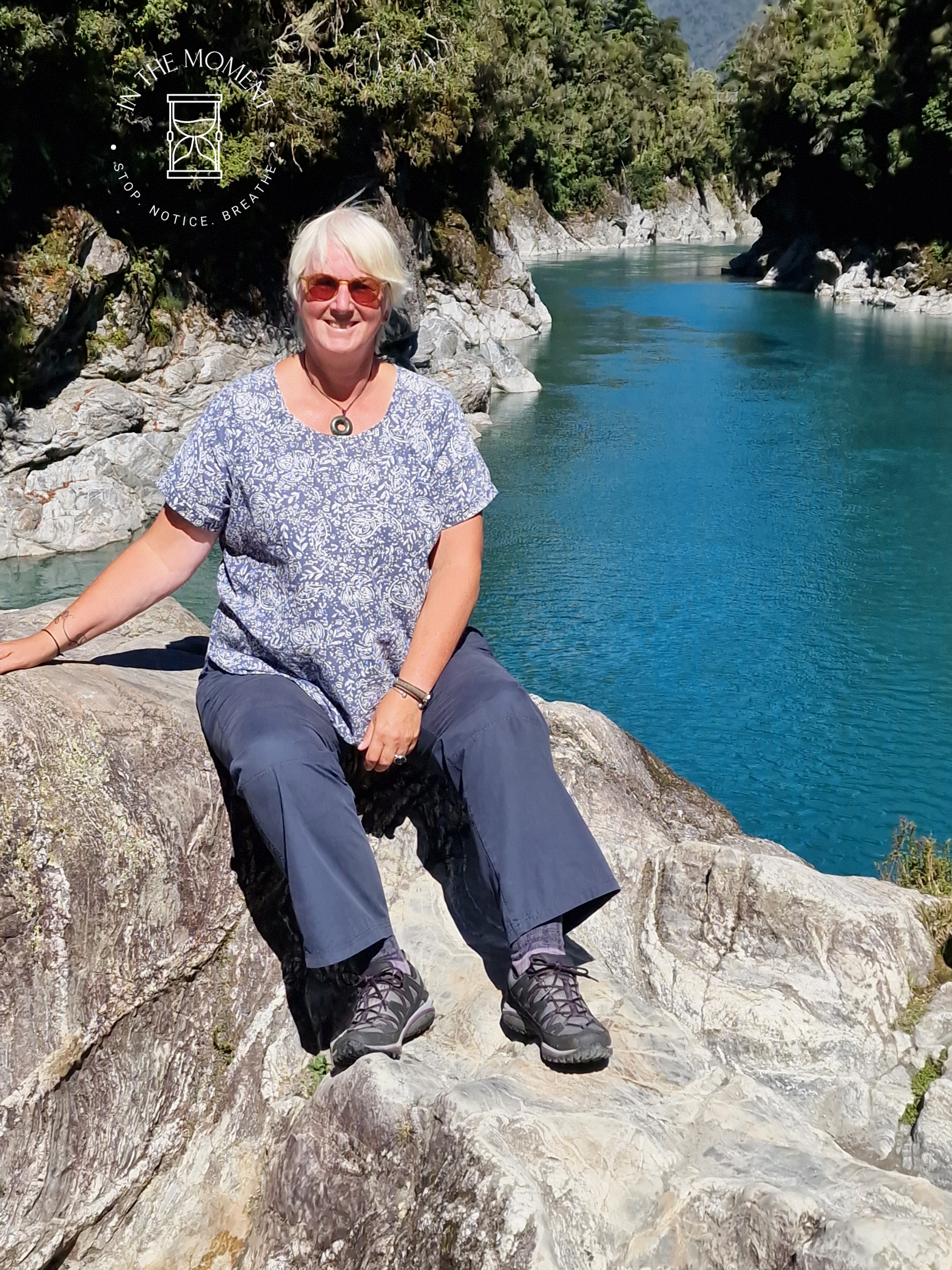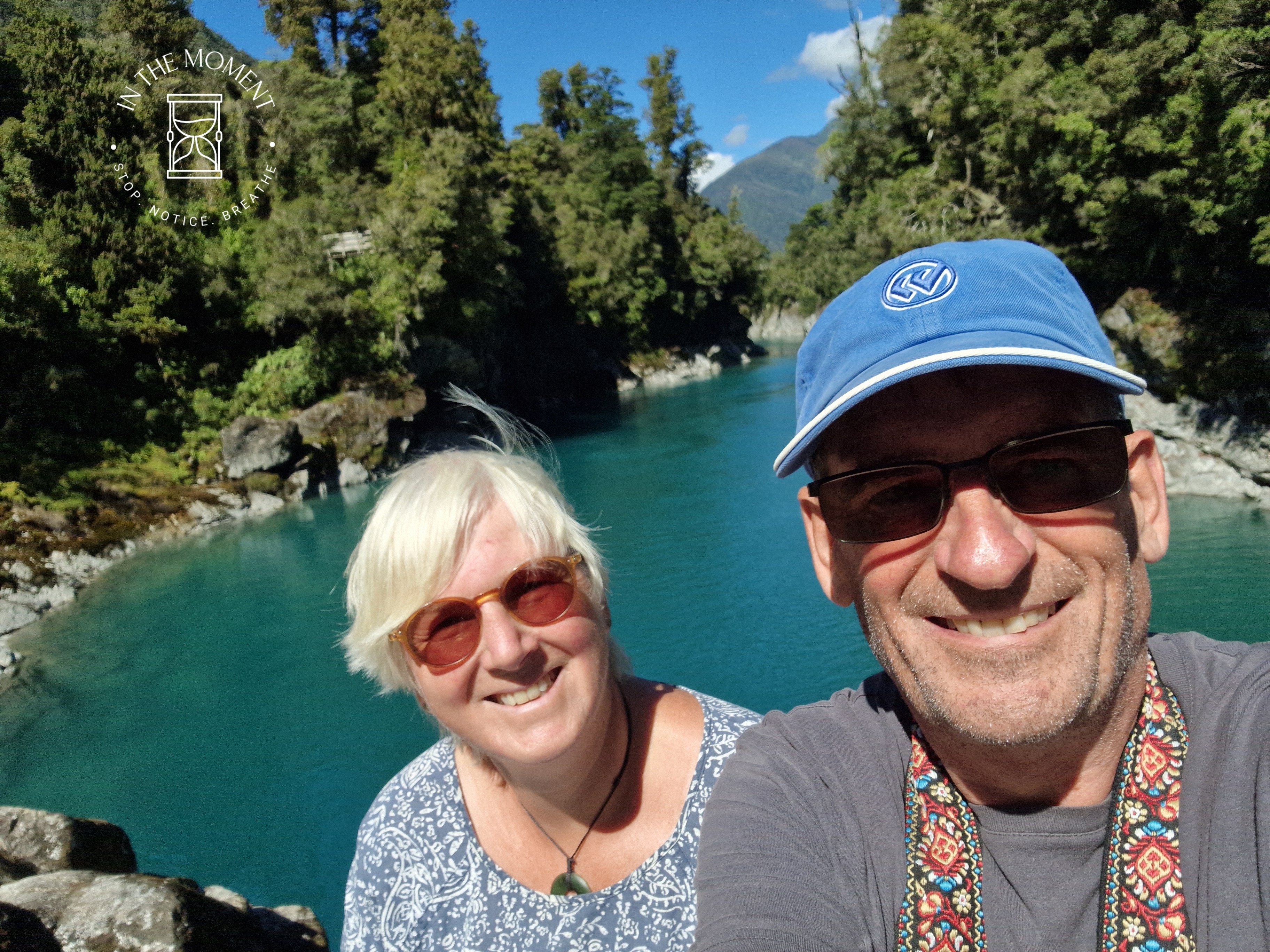Hokitika – We both love this place. And what fun we had here on this trip. We had three trips to the beach at low tide to fossick around for the elusive pounamu stone. Alas, no luck but we did find some really lovely pieces of Serpentine rock which according to the lady in the Jade shop, would be pounamu in about another few hundred thousand years! We had a walk up to the Hokitika Gorge. What big changes there have been, mostly caused by storms but the walk we remember is no longer the same. Still, we walked through the bush to the viewing point and then, after being blown away by the colour of the water, clambered over the rocks like billy goats. The water is this shade of blue due to the very fine glacial rock powder which is held in suspension in the water. Could spend hours looking at the river.