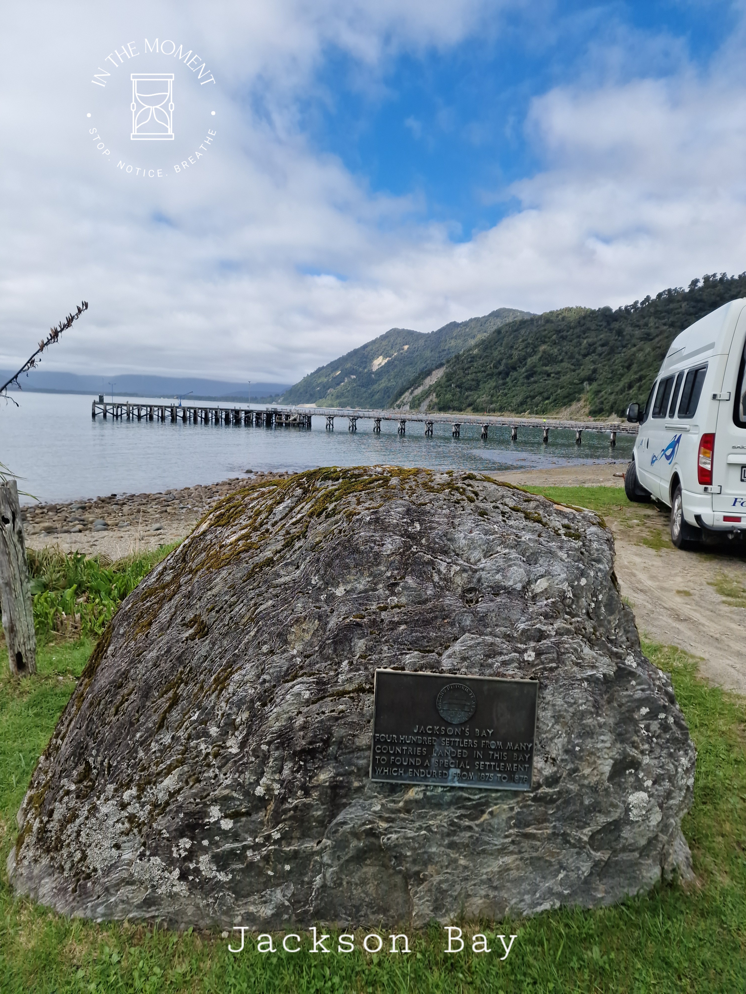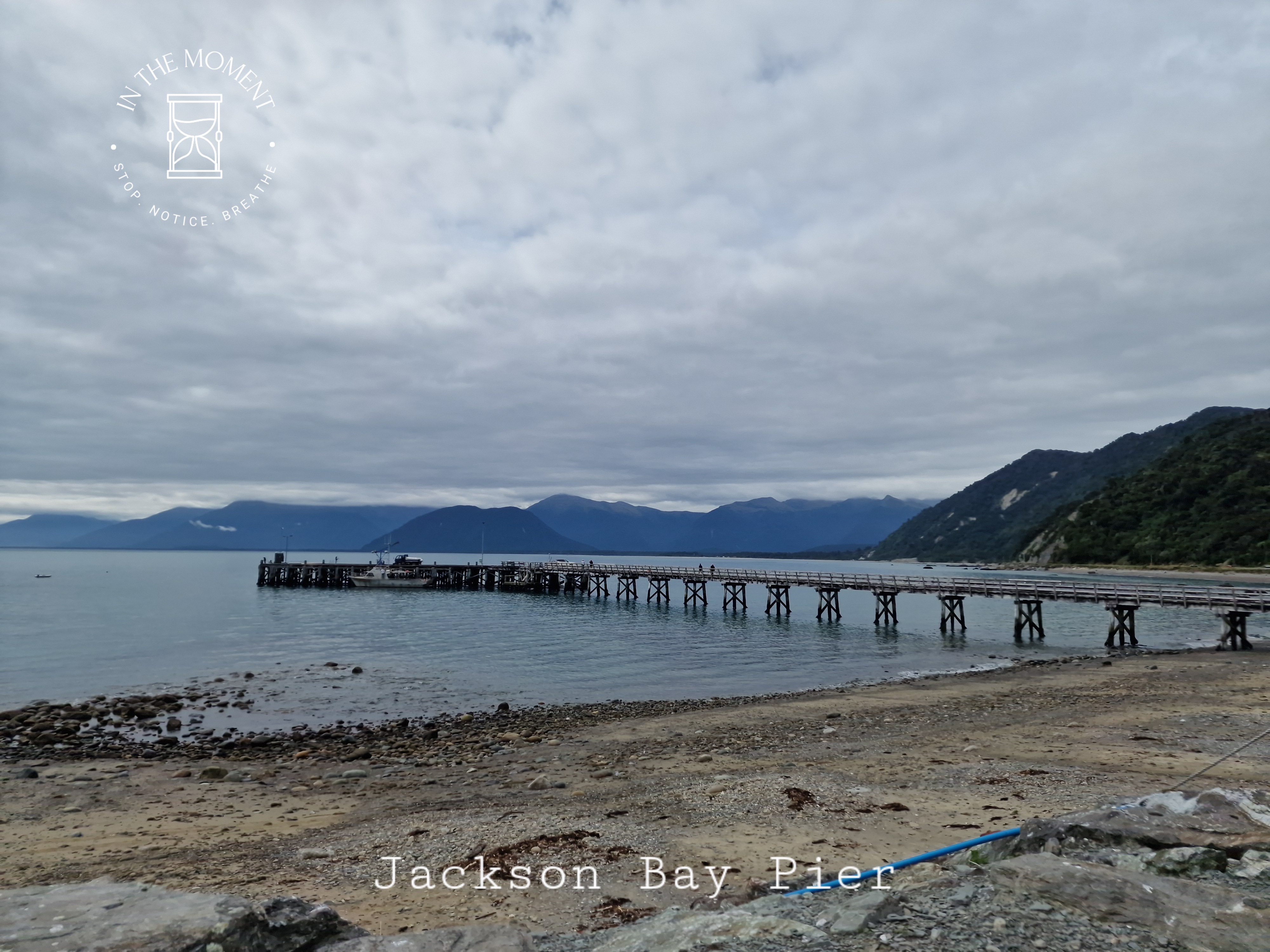 Our last stop in glacier country was Haast. Our memories of Haast from 2014 are filled with rain, torrential rain. Road over the pass closing three cars behind us and a steamy cafe where we stop briefly. This time, we enjoy the drive over New Zealand’s longest single lane bridge before you arrive at the township. We drive to Jackson Bay which is where the road that starts all the way north in Karamea ends. Sandflies here are voracious and relentless. It is a rocky bay with a long pier. There is also a fantastic cafe – https://www.thecraypotnz.com/ where we have seafood chowder for lunch. It was delicious! We take the Wharekai Te Kou Walk in the morning which takes you over a small bluff to a very rocky, driftwood covered beach. We treat ourselves to a whitebait pattie and flat whites on our return from the Craypot.