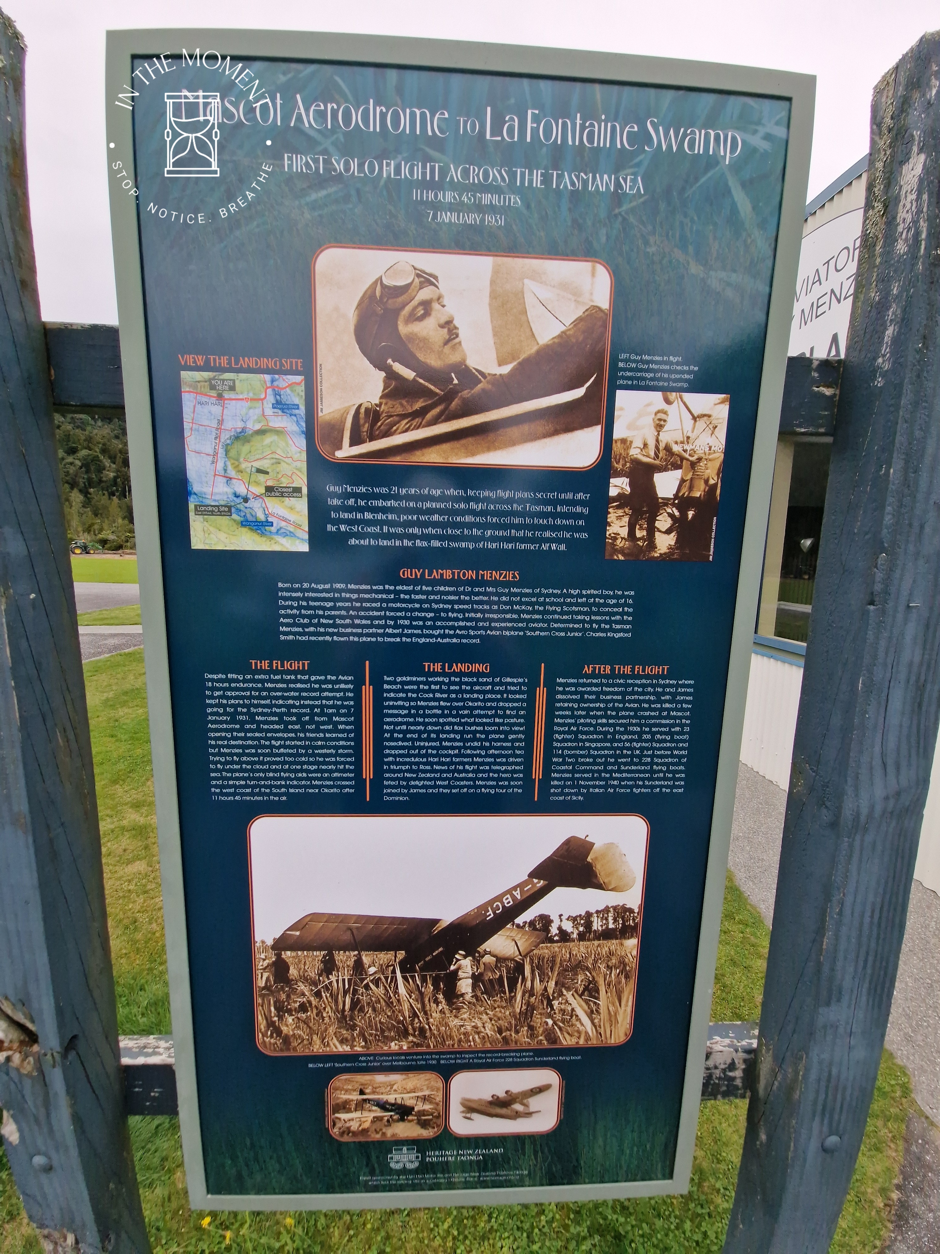 On the route south, we stopped at Ross. This town was established in the 1860s during the West Coast gold rush. At it’s largest point, there were around 2,500 inhabitants. By the early 1870s, the local goldfields became depleted and the population declined. In 1909 a huge 3.1kg nugget of gold was found by two miners. It became known as the Honourable Roddy Nugget. It became a coronation gift from New Zealand to King George V. There is a great deal of mining history here and a rather famous pub. Our next stop was Okarito. We went for a walk along a very moody beach and then spent the rest of the evening avoiding sandflies! We pass the site which remembers the first trans Tasman flight which ended in a swamp! And stopped to admire the blueness of the Whataroa River.