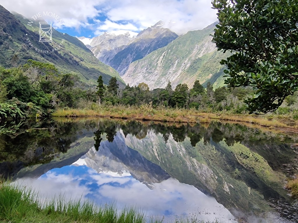Franz Josef – We were both so keen to return here as we have such great memories of our walk to the glacier’s snout/foot. Alas, as mentioned above, the walk that you take now, takes you to several viewing platforms, all of which are 1000s of meters from the snout. We did three walks here, the main viewing platform, Sentinel Rock walk & Peters Pool – which is quite stunning! We also walked the Callery Gorge track which was very steep in places and culminates in a swing bridge with a rather scary warning by it. Also managed to find a rather good flat white in the Full of Beans Cafe. https://www.fullofbeanscafe.co.nz/