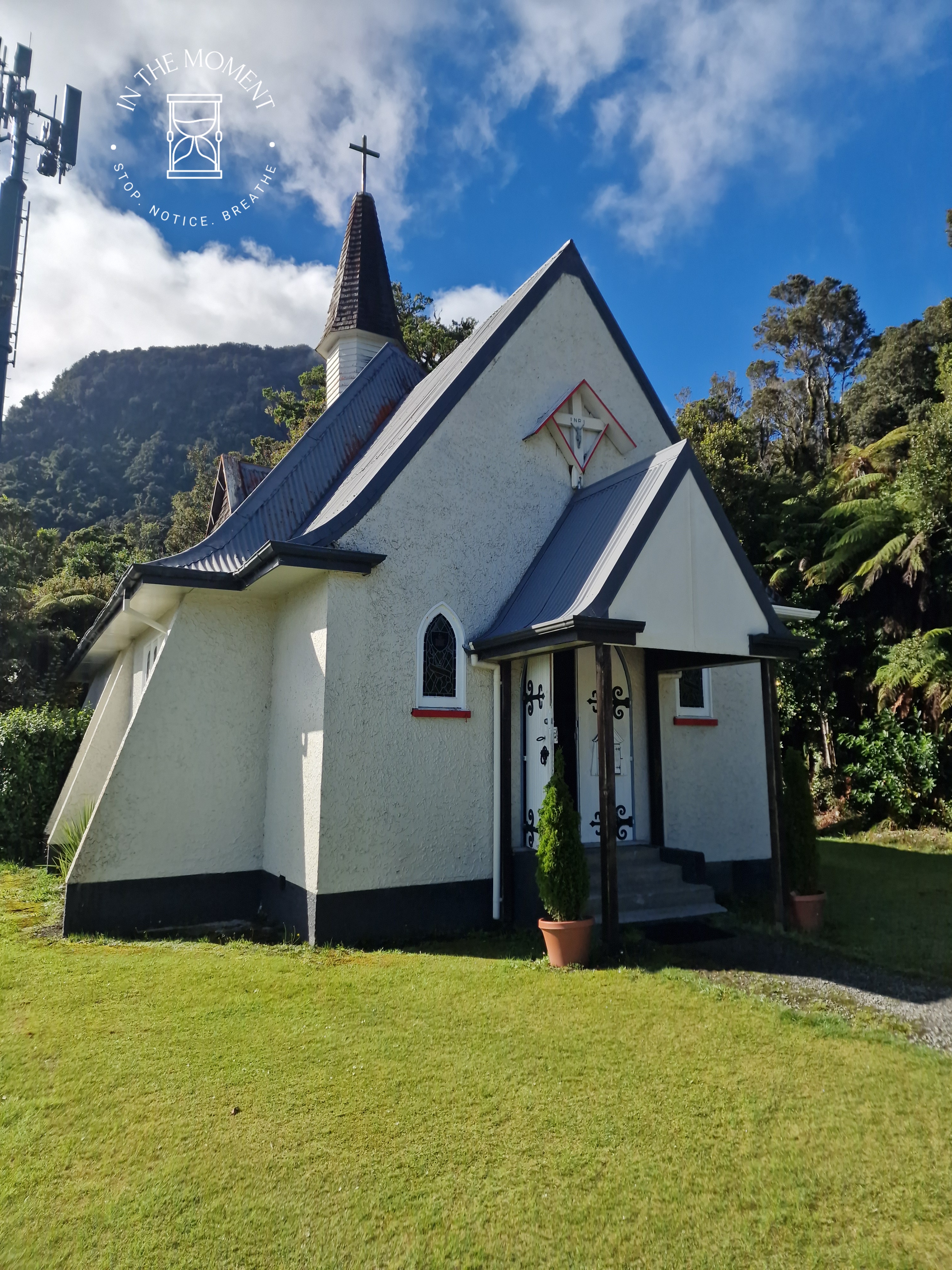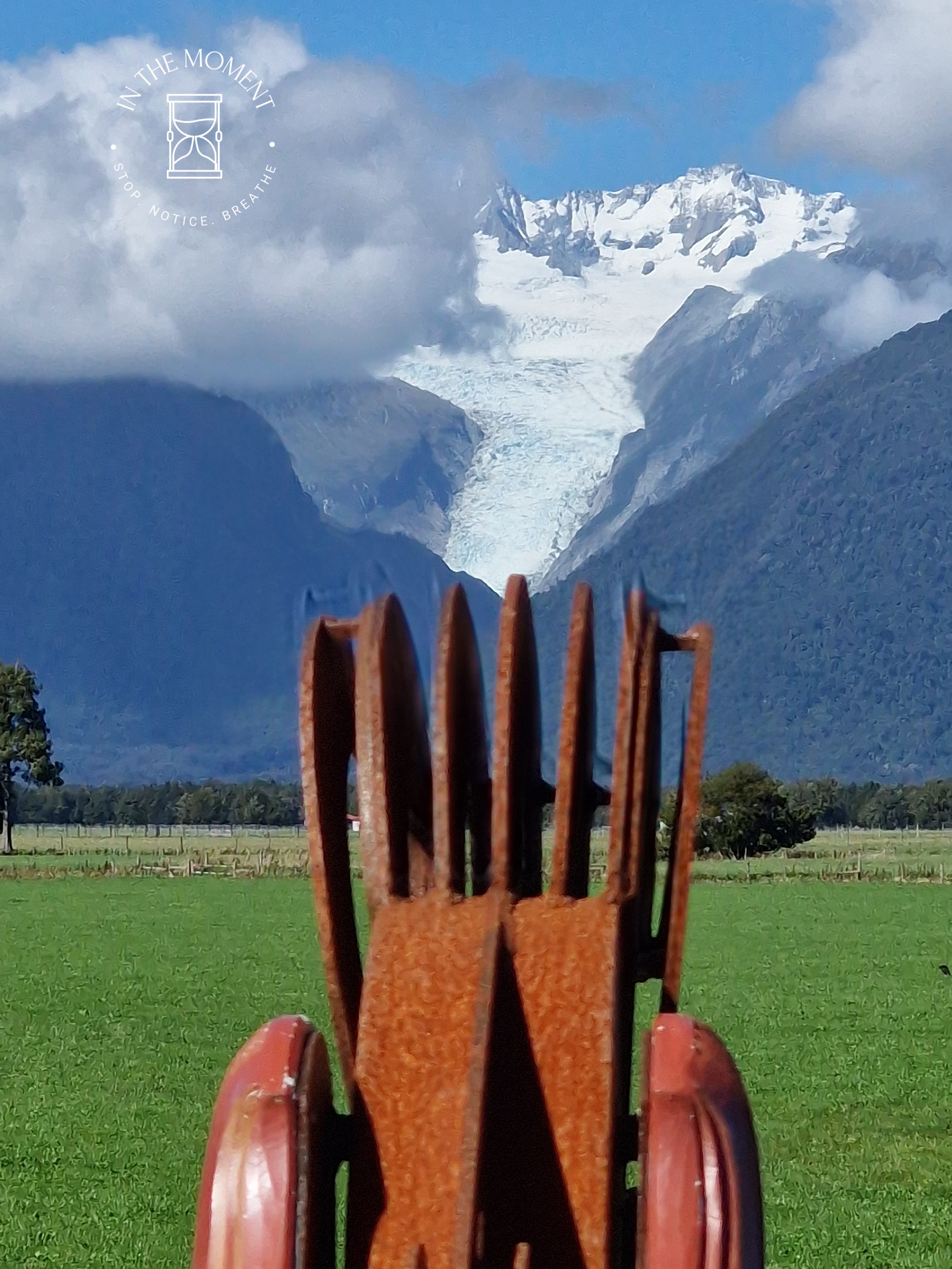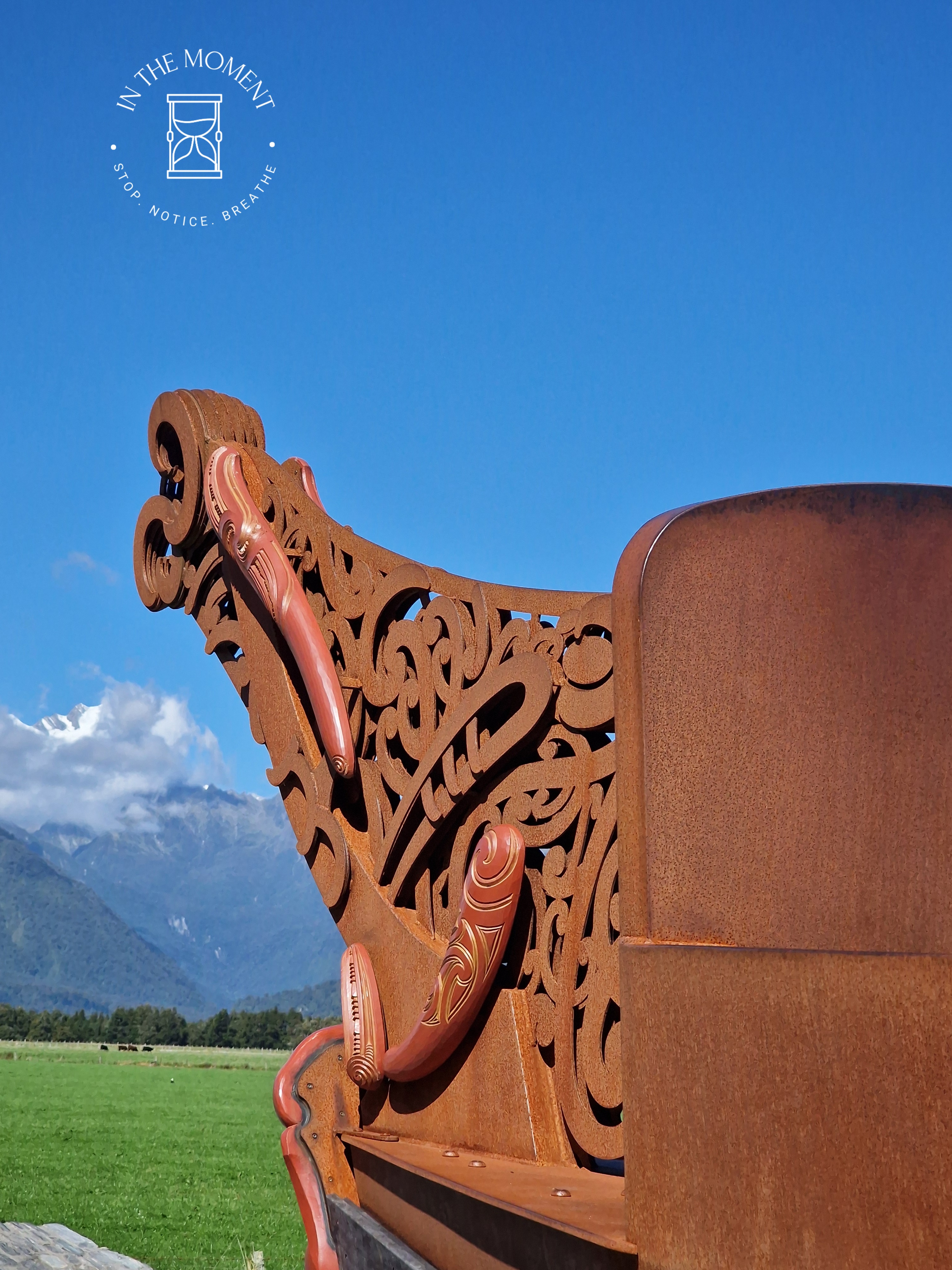 Fox Glacier – Fox glacier has also succumbed to the impact of global warming, storms, slips and rerouting rivers like Franz and so our walk there was tinged with some level of sadness. We did discover a lovely little walk – the Morraine walk that takes you through fairy-tale like forest – moss covered trees, tree ferns, small streams, mist. Just delightful. We walked to the viewing points, there are two and then drove to a third where we discover https://tohuwhenua.nz/regions/te-tai-poutini-west-coast/te-kopikopiko-o-te-waka/ a stunning sculpture/installation which faces the glacier and the alps.