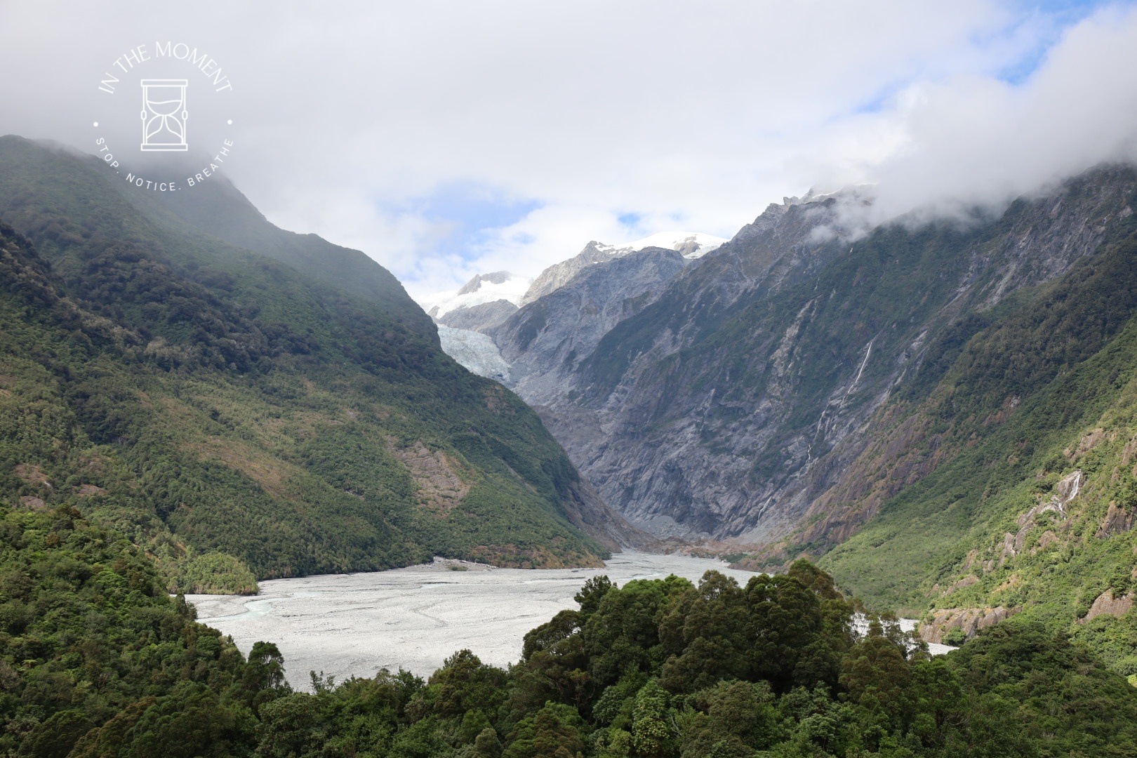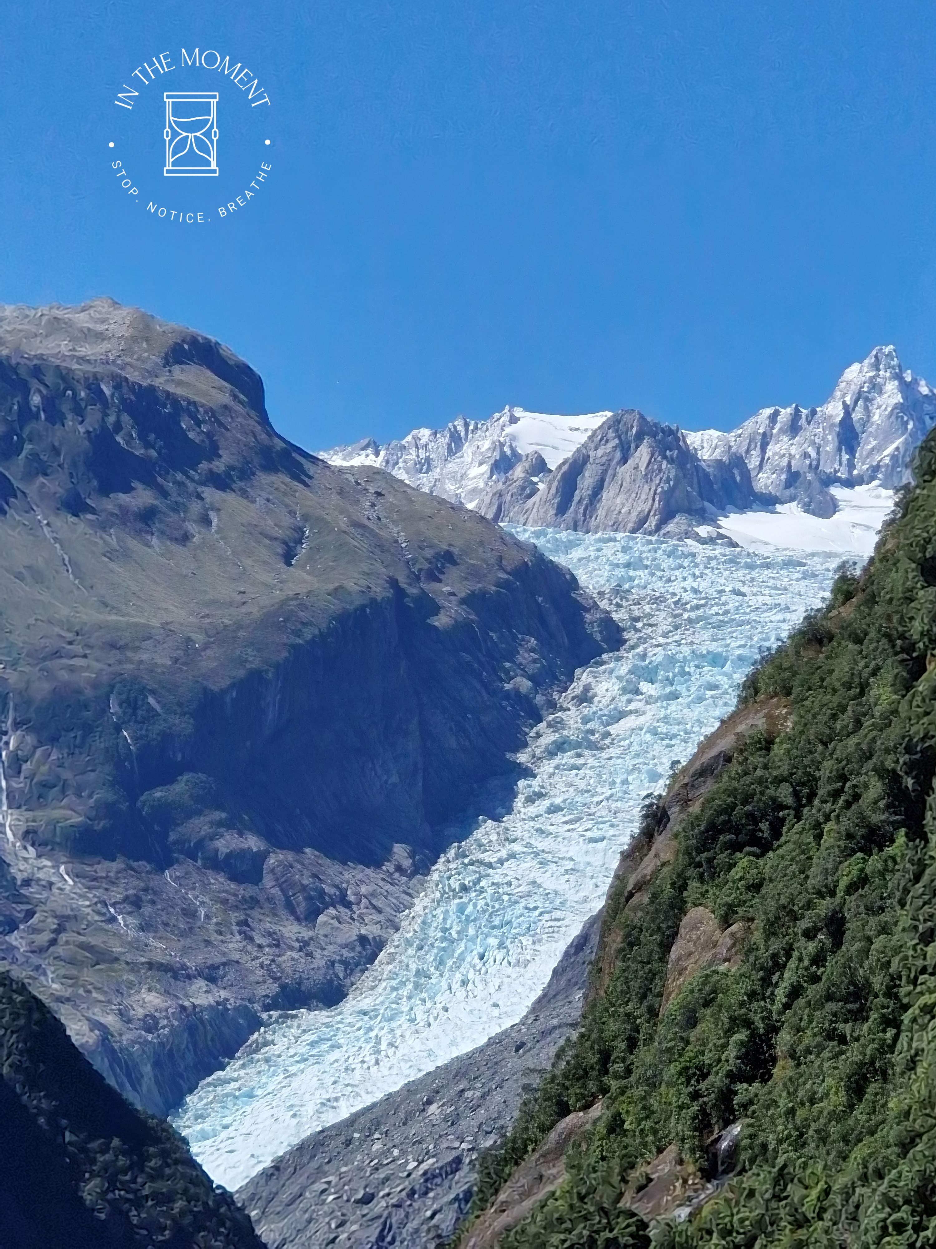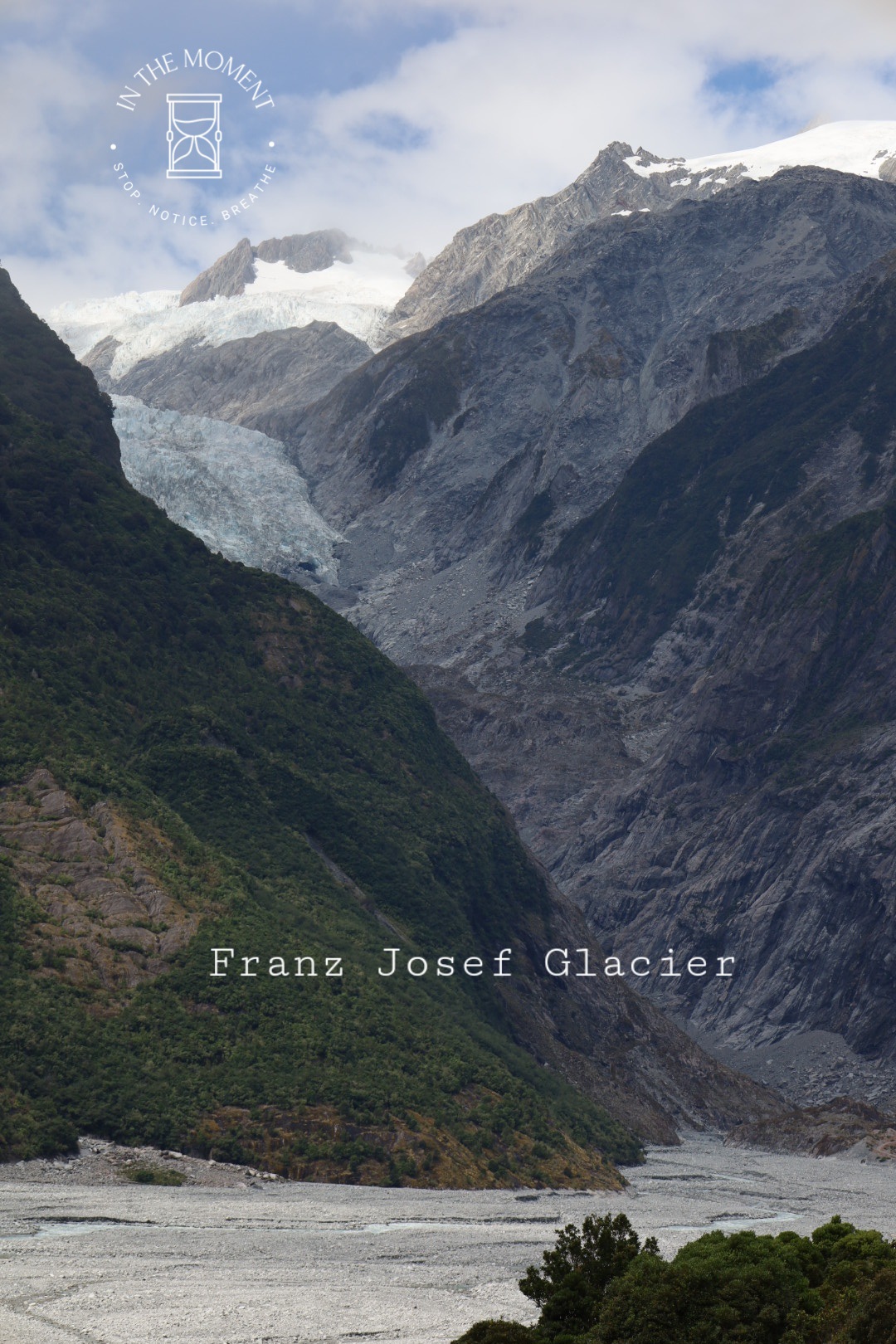 Some info about the glaciers: Franz Josef & Fox Glaciers are rather unusual because the very high level of rainfall in the Southern Alps means that they reach much lower levels than would normally be expected for a glacier. We tramped through temperate rainforest, full of tree ferns and mosses to the viewing point for both glaciers. You are unable to get as close as we did when we were here in 2014 because of the impact of global warming causing the retreat of the glacier, storms, slips, and the rivers rerouting themselves.