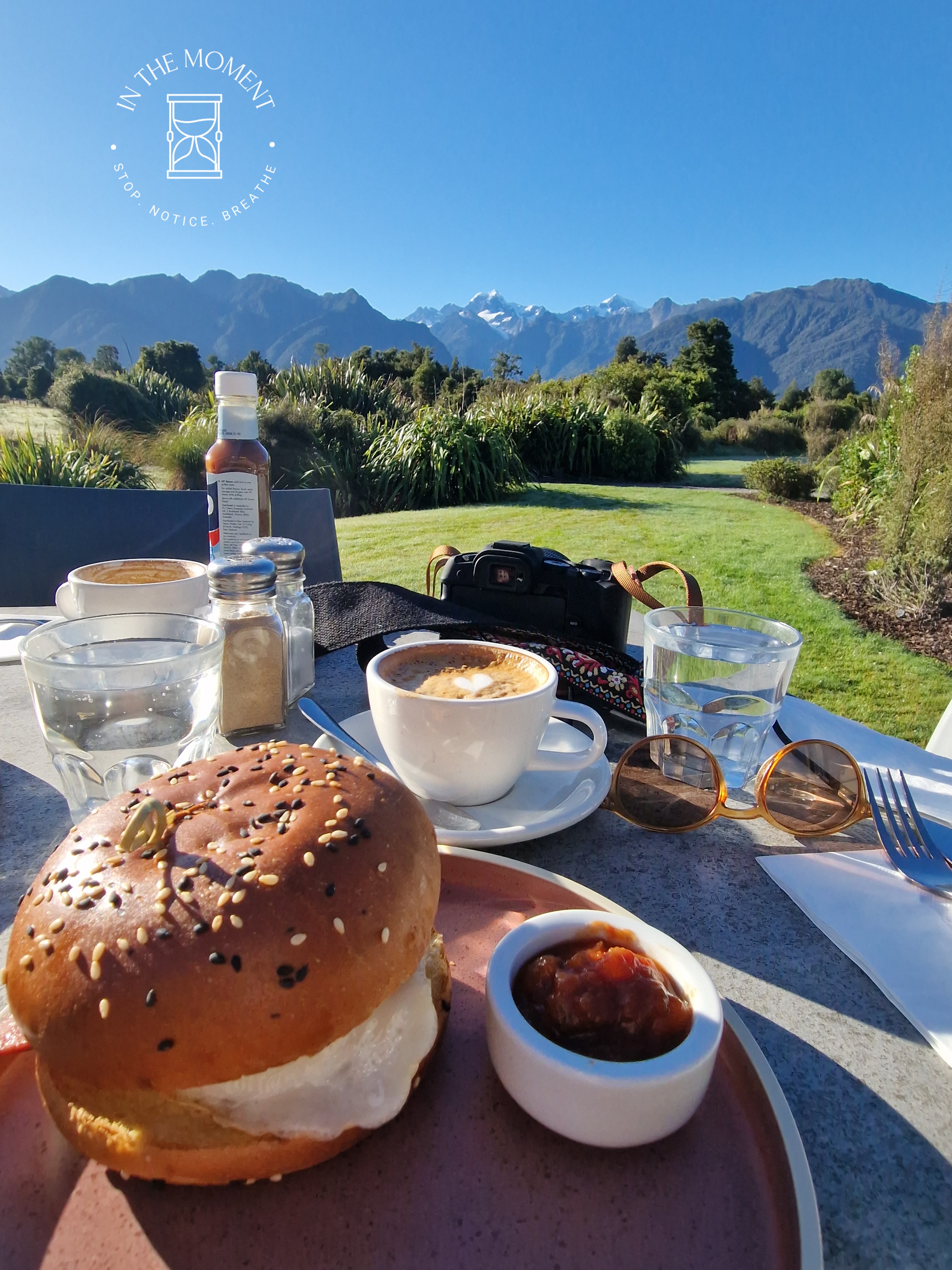 Lake Matheson – This is probably the most photographed lake in New Zealand. It is a gorgeous lake that sits under the gaze of the alps. If all of the stars are aligned for you, you may be able to take THAT photo. There is all sorts of advice about how to achieve it. We went just after dawn. It was chilly and misty. Were all of my stars aligned, probably not but I love these photos. Starting any walk with a swing bridge is a win for me and the walk itself is really lovely. As a reward for such an early get up, we treated ourselves to a breakfast bap and flat whites in the Matheson Cafe!