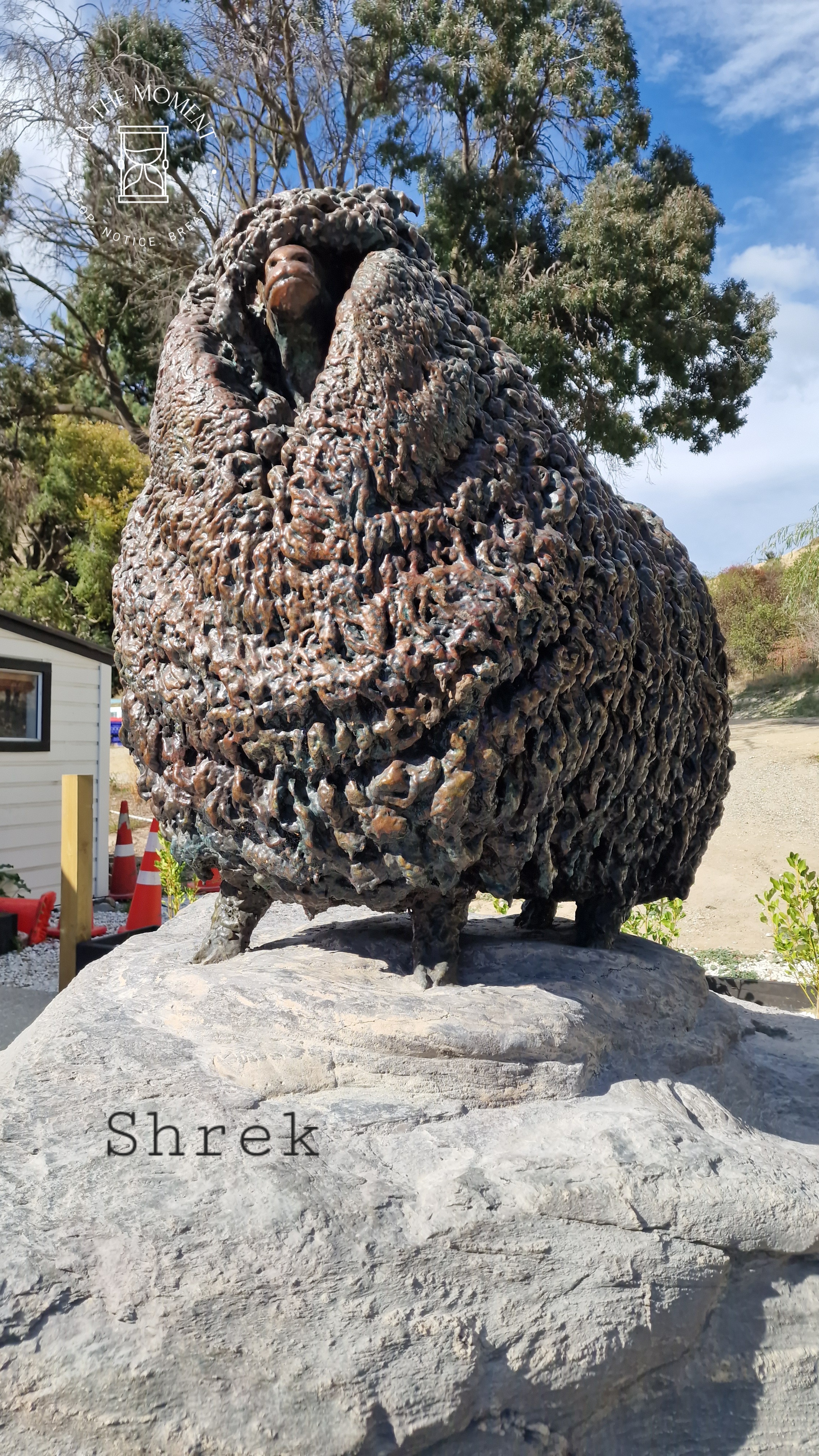 We spent a night at the freedom camp that sits on the edge of Lake Dunston. Also not a bad view! We stopped for coffee at Tarras, where there is a statue to Shrek the Sheep, who evaded sheering for FIVE years by hiding out in the rocky crags and caves in the Bendigo Hills! His fleece weighted 27kg when he was finally shorn -the average being 4.5kg https://en.wikipedia.org/wiki/Shrek_(sheep)