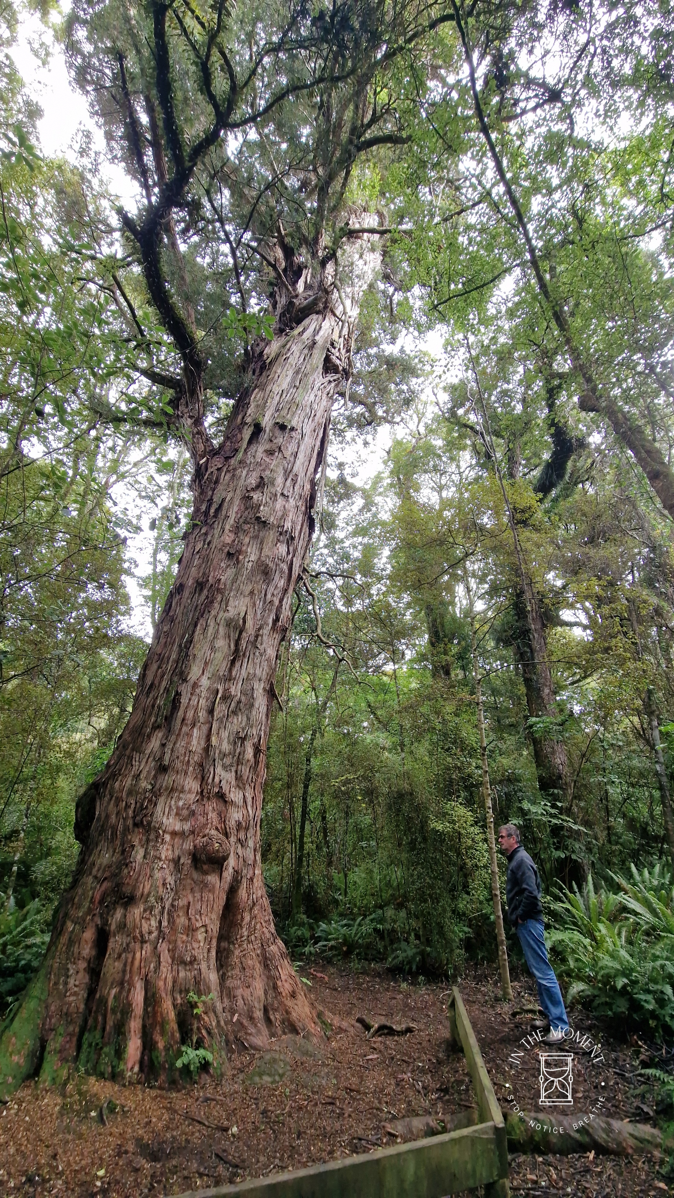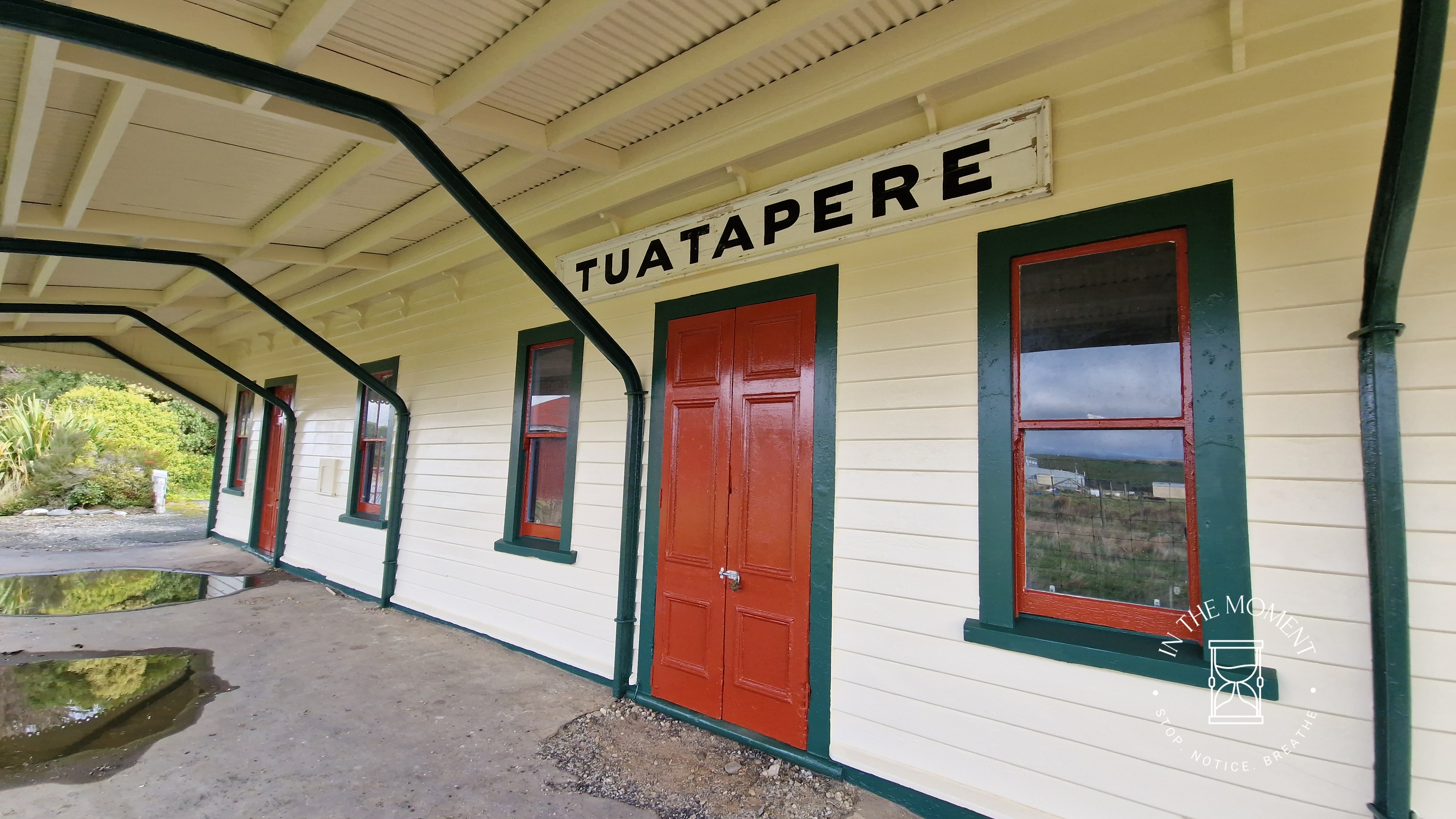 We stopped finally in Tuatapere where Don worked in 1980 when he was in the Forestry Service. One of the things that never ceases to amaze me and make me smile is how towns and settlements decorate their public toilets – some are real works of art! Tuatapere is home to a world famous sausage and naturally, there is a giant one outside one of the campsites. There is a beautiful war memorial and lovely old railway station that looks like it is in the process of being renovated. Whilst it is a quiet town, it had a really nice feel to it. We also had a great short walk through the Domain where we were followed by three fantails on our way to see a 1,000yr old Totara tree which was HUGE!