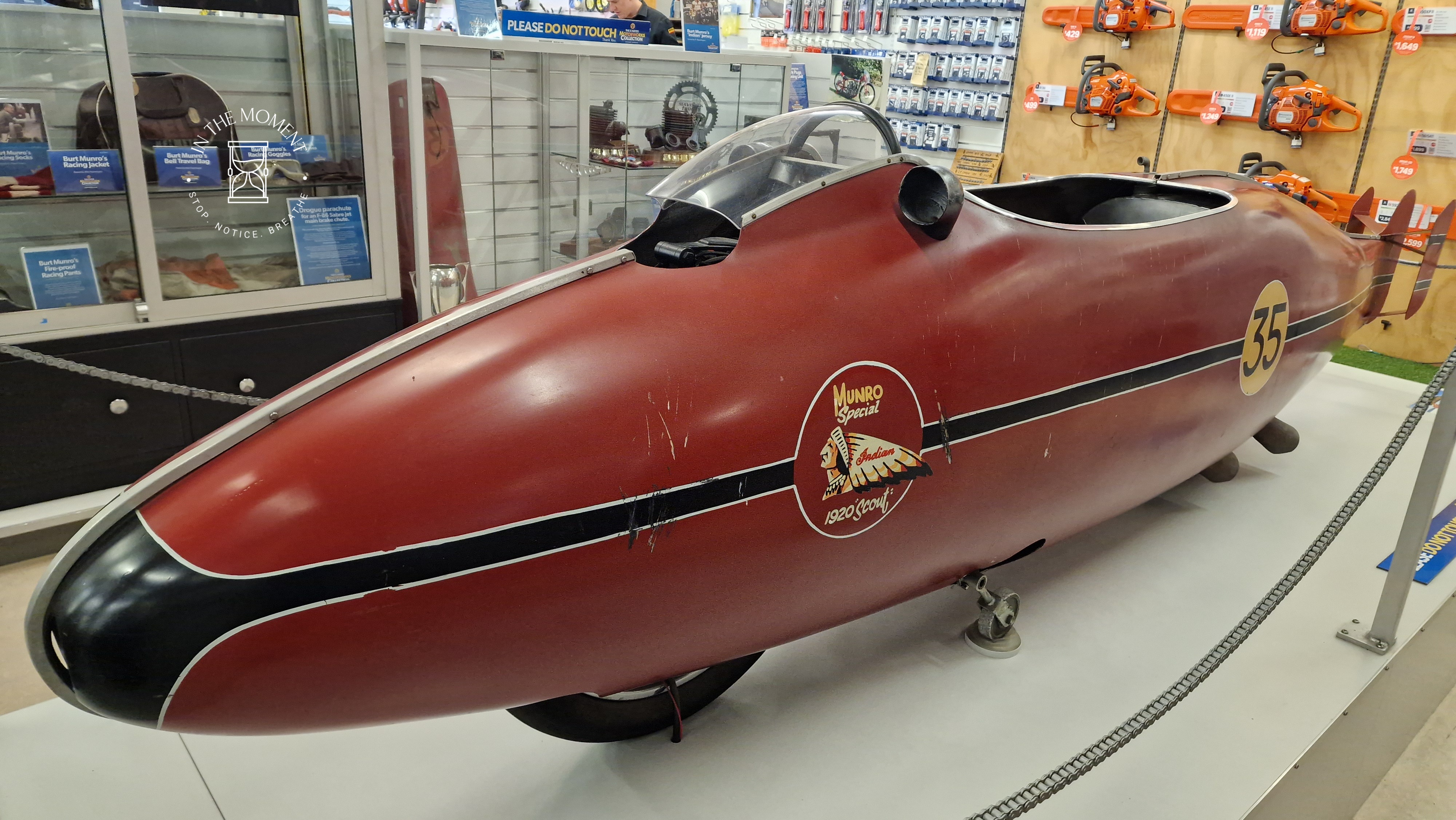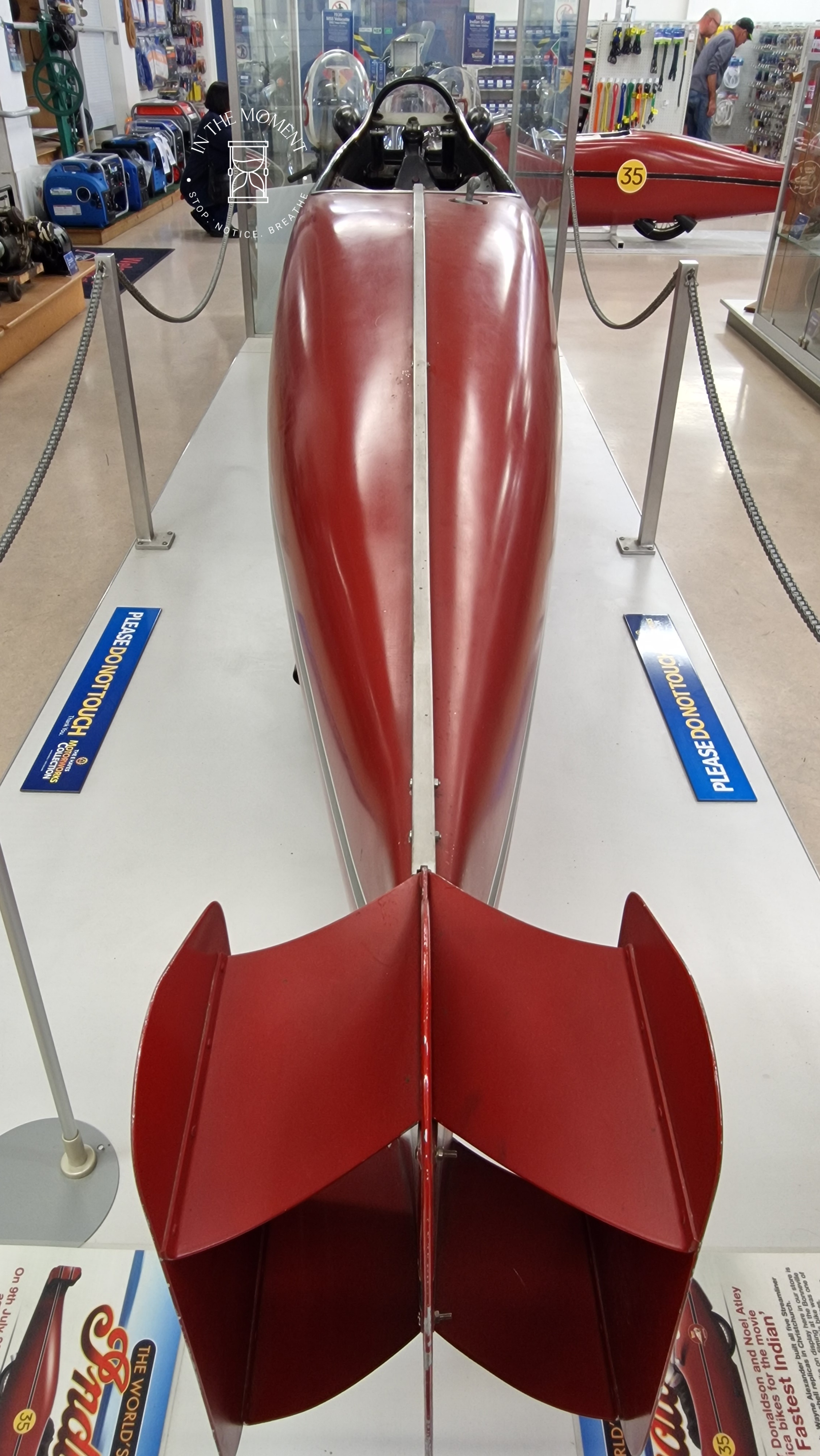 We finally arrived in Invercargill, the city that The Rolling Stones infamously made VERY disparaging comments about in 1965 when they were on tour. When Tim Shadbolt became mayor of Invercargill after being mayor of Waitemata City in Auckland, he famously said on being questioned in 1993: “I don’t care where, as long as I’m mayor.” It seems there is not a lot of love for this city! Probably one of Invercargill’s most famous sons is Burt Munro. If you are in to motorbikes and speed records, you will know his name, for those that don’t, Burt modified a 1920 Indian Scout motorbike and on the Bonneville flats, created a land speed record in the under-1,000 cc category on the 26th August 1967 that stands to this day. Inside E. Hayes & Sons, you can see Burt’s original motorbikes and lots of parts that he hand made for them. His story was made into a film staring Anthony Hopkins: The World’s Fastest Indian. There is even a replica shell from the film that you can have your photo taken in! E. Hayes & Sons is a fantastic store. It is part hardware store and part museum. Next to the entrance to the town park, there is a statue to Burt with an interesting little addition. We also visited Oreti Beach where Burt used to practice racing. It is wide and long.