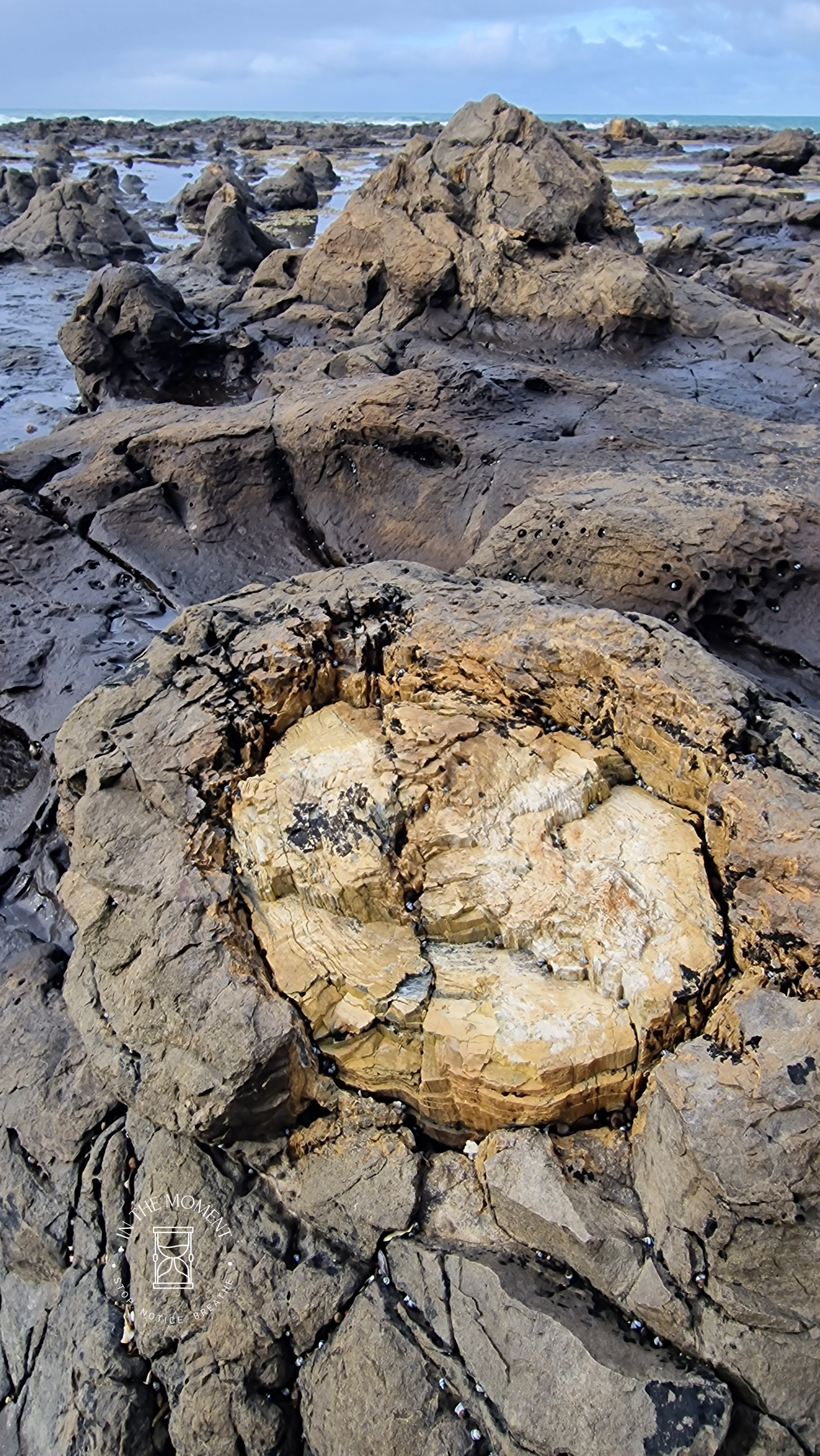 From here, we visited Curio Bay. Site of a petrified forest that is over 180 million year old. You really see the trees, stumps of trees and logs that are now stone. There is some huge kelp which is quite mesmerising as it flows back and forth with each wave that rolls in. Such a fascinating place – make sure you visit at low tide.