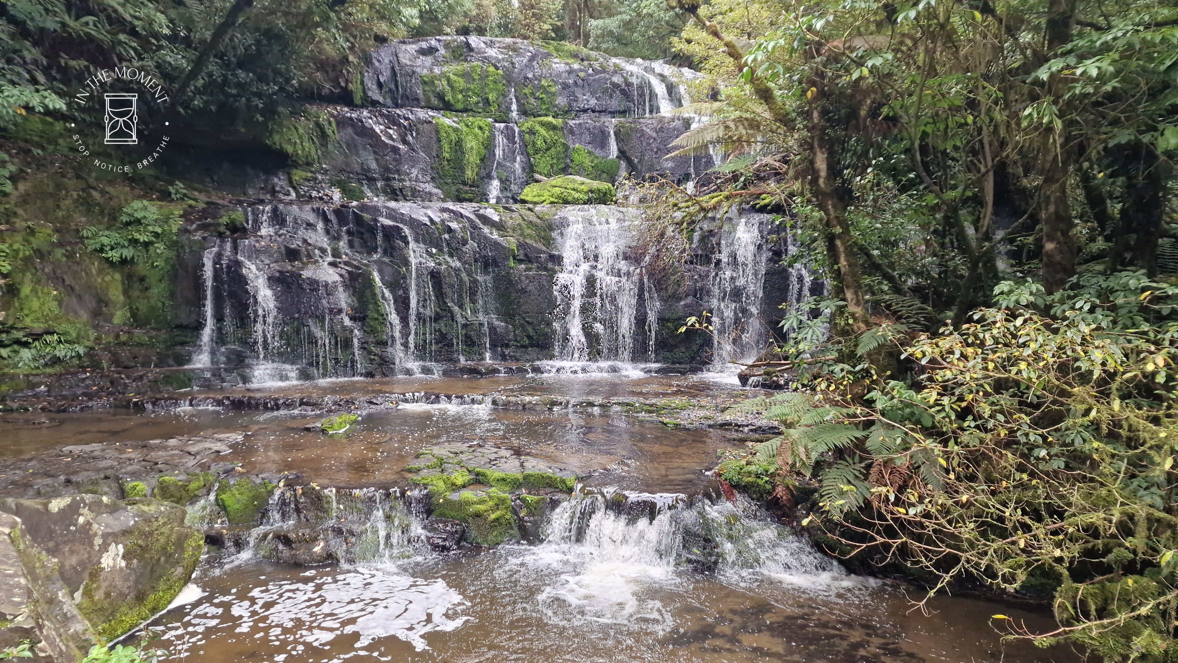 Our next waterfall was at Parakaunui Falls. Again, you have a lovely walk through native bush, including past trees that are hollow in the middle and yet are still in full leaf!