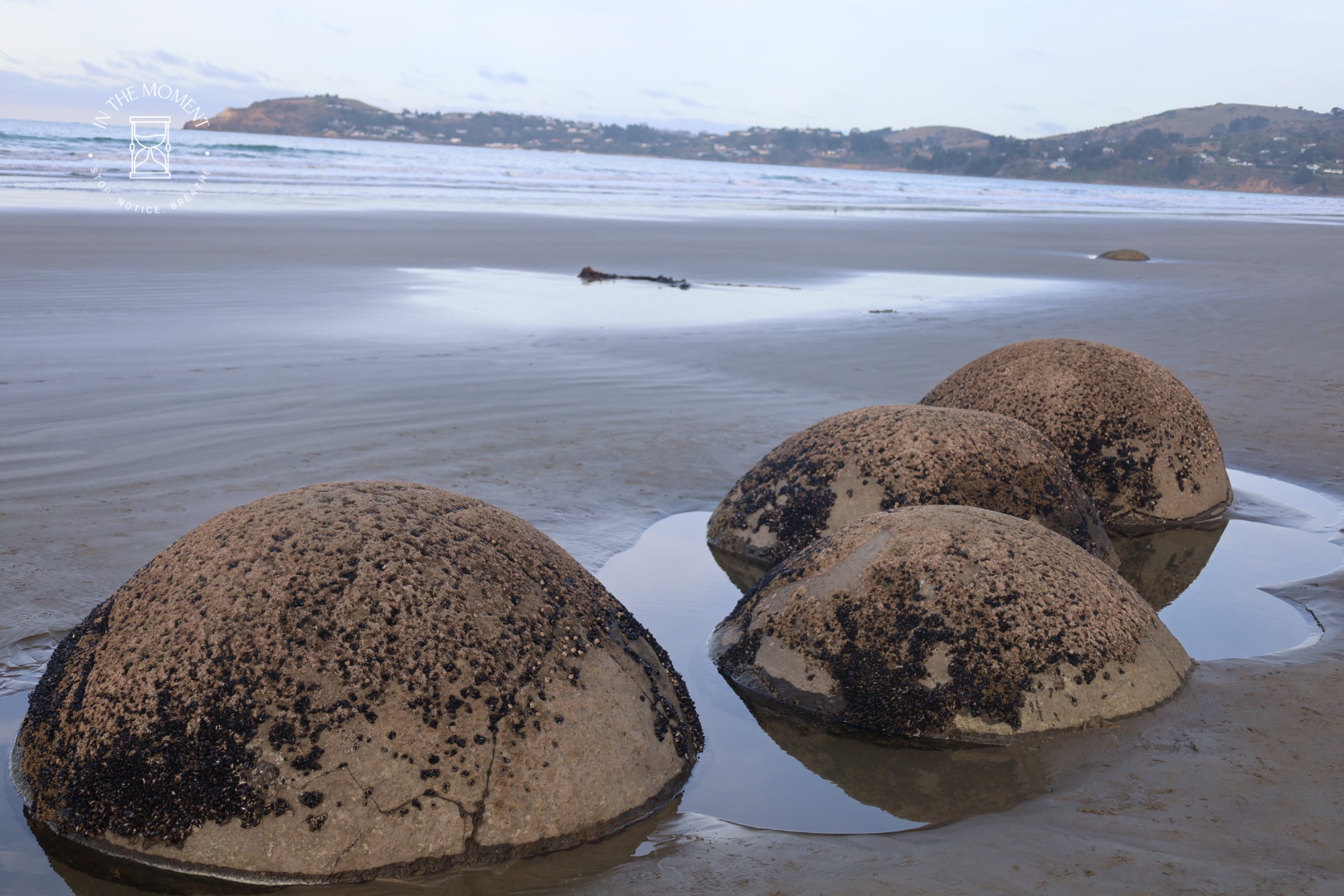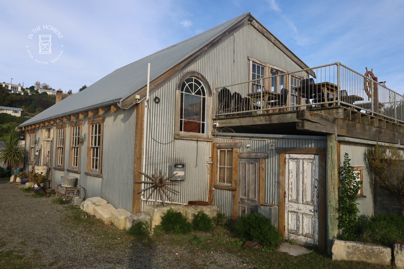 Moeraki known for it’s strange boulders and a fantastic restaurant that has sadly now closed. The saying “Time and tide wait for no man”, could apply to the boulders that are strewn across the beach at Moeraki. Some buried so deep in sand that you can only see their tops, some just forming within the rockface, some laying shattered allowing us to see the inside and some just there, in their entirety looking all stately. They really are ‘other worldly’. We ate at Fleur’s in 2014, the food was amazing as was the atmosphere and setting. Fleur has decided it is time to sell and the building is sitting, almost as if it is in a freeze frame of the end of a service, waiting for a new owner.