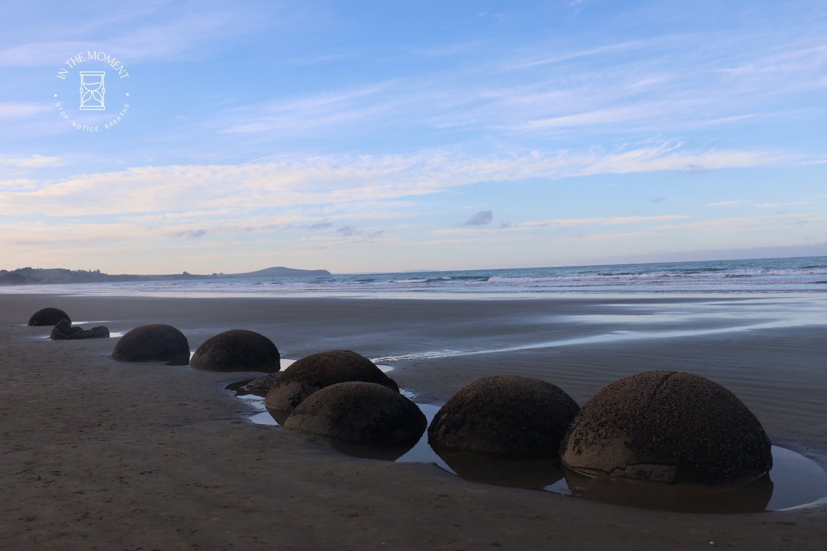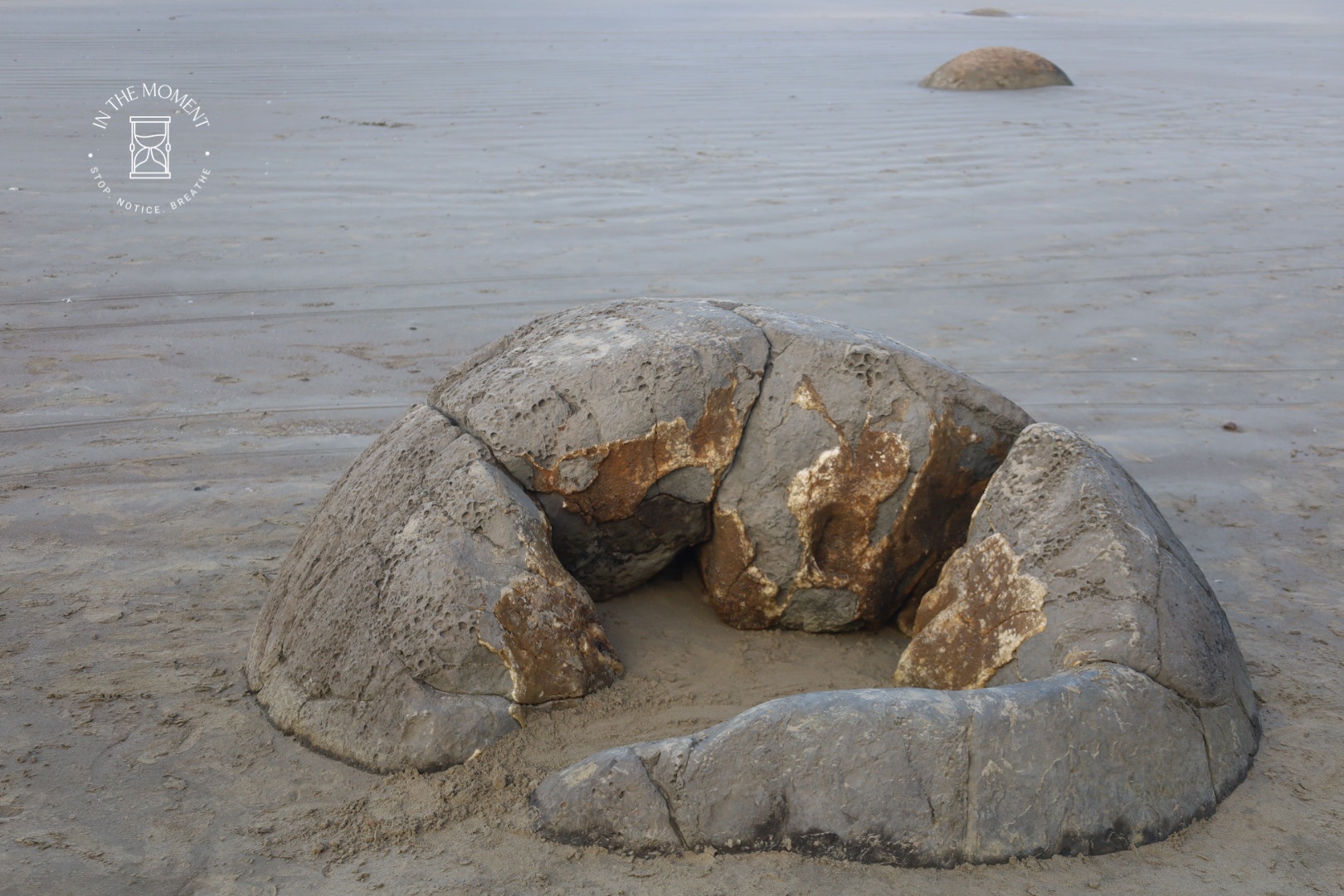 Shag point is a great place to view seals. It is quite a drive off of the highway but it’s worth it. It also has it’s own boulders which are quite different from the ones just along the road a bit. They sit on a shelf and there are SO many, all in different stages of formation. Some, just empty craters, some half worn down by the relentless pounding of the waves and some ‘birthing’ out of the rock face. There was a path that lead you down to the beach but this is not managed and has since falling victim to a slip. You can see some boulders from the road – just peer politely over peoples fences!
