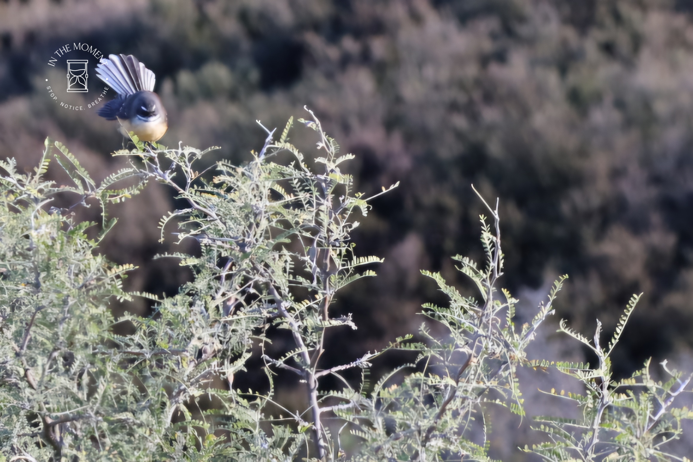 We spent a glorious couple of days at Lake Ōhau. Staying at the upper DoC site, we almost had the place to ourselves! It’s a long gravel road drive in, but oh my is it worth it! Not a sound other than the occasional road noise. Other than the wind and the birds. And what a view! Surrounded by hills and snow capped mountains. Spent time sitting at the lake edge watching the multitude of Fantails flit about in and near the water. So many of them! Finally managed to get a shot of one with their lovely tail fully open!