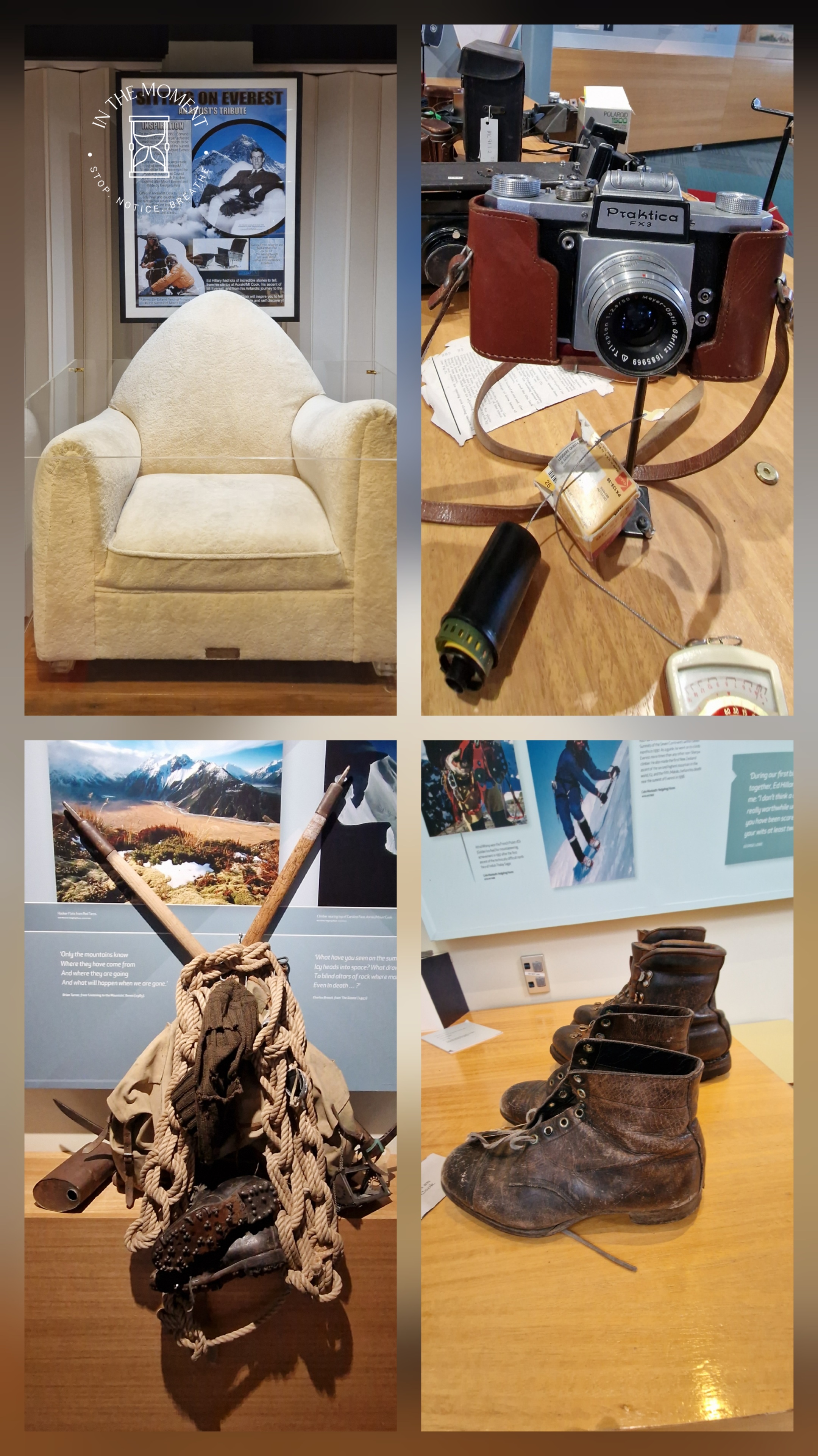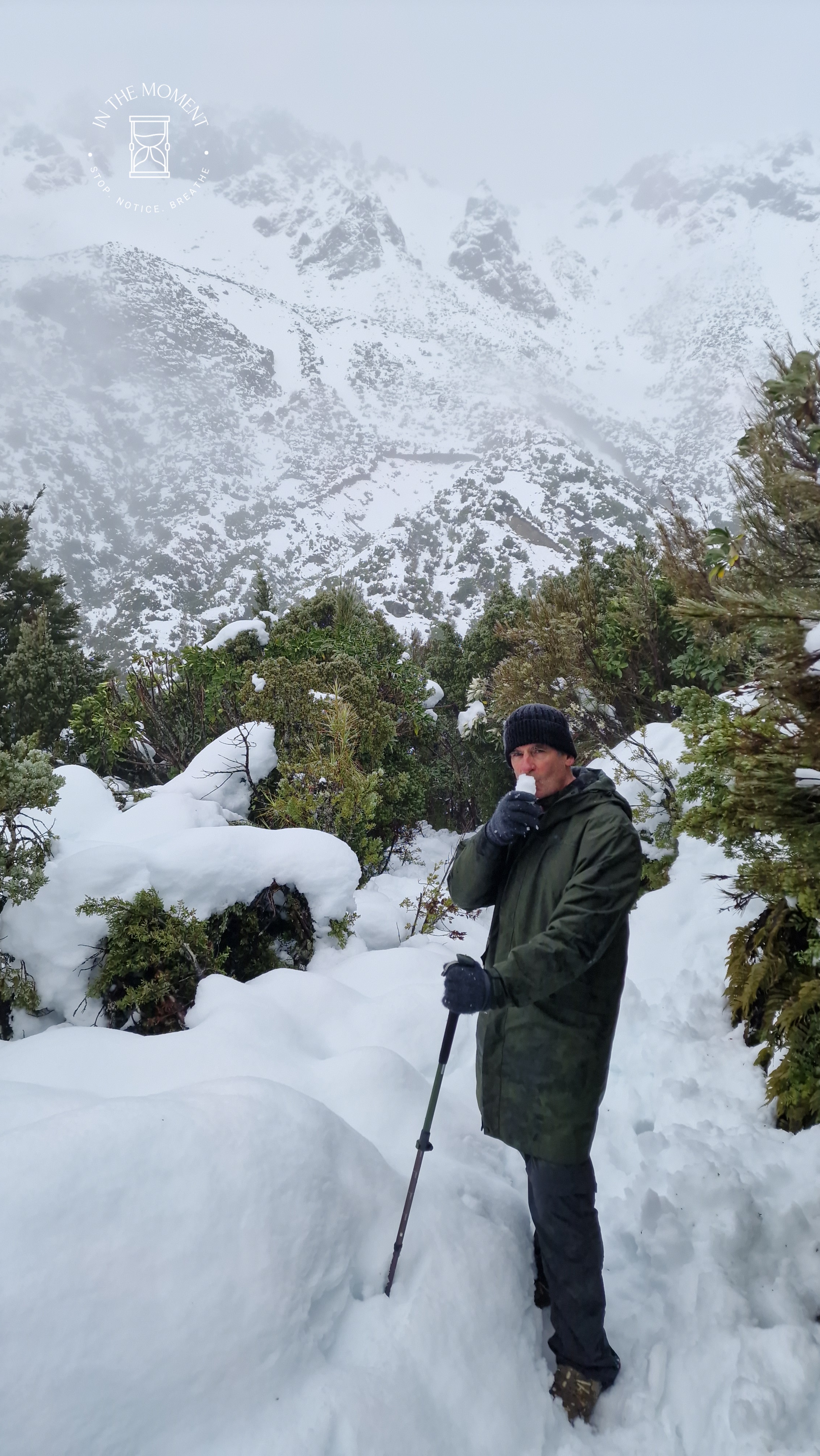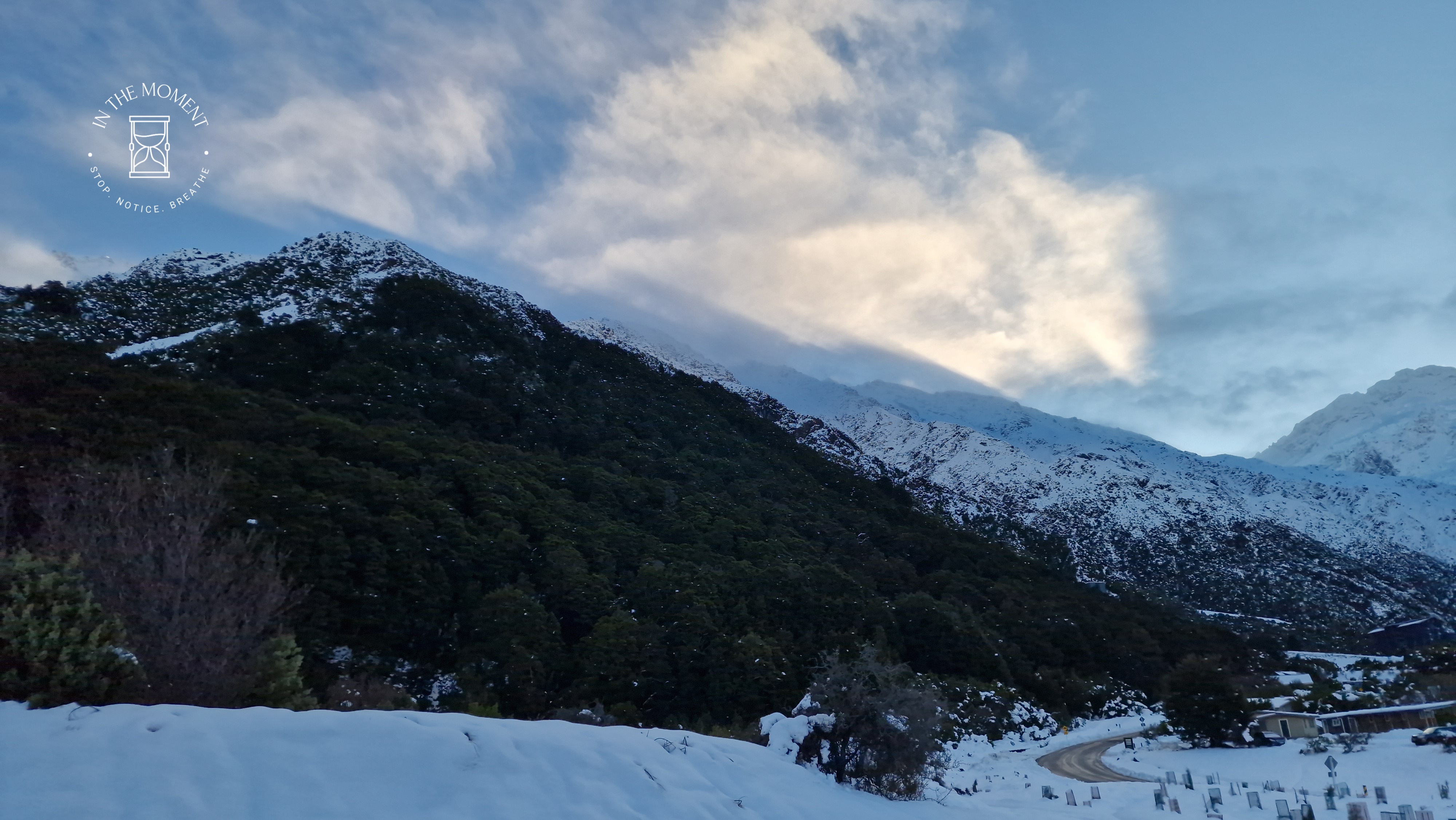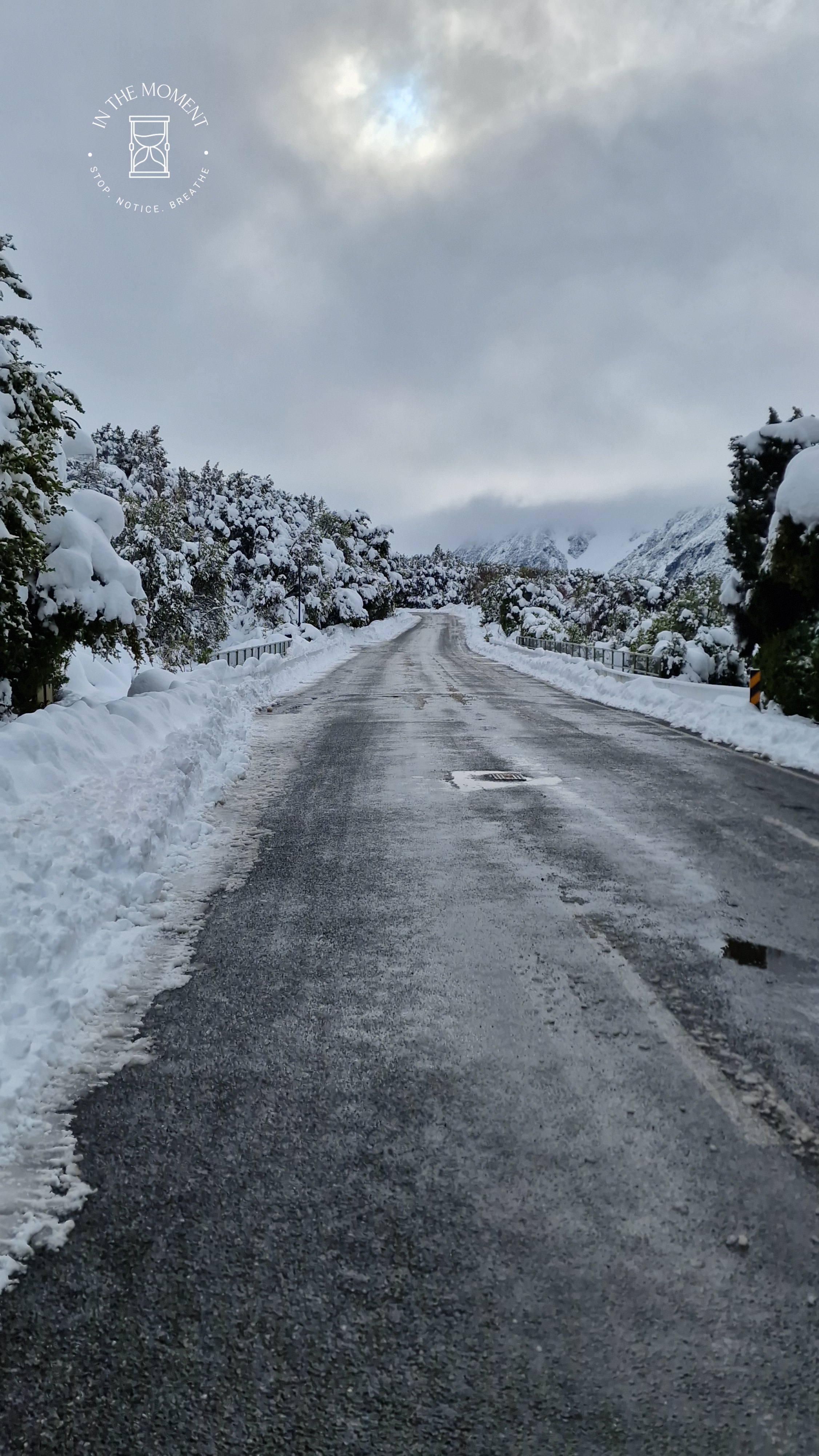 What a glorious few days we’ve had in the National Park. I’d hoped for snow when we were planning our trip and oh boy did we get it! As we drove along SH80 from Glentanner to Aoraki, the landscape and thickness of snow changed quickly. I noticed Aoraki Mt. Cook School on the way in to the village and remarked to Don that I bet there was no closing for snow days like back at home! We had booked into the White Horse Hill DoC campsite for our time here and so when we arrived we checked in at the DoC Visitor Centre to see what the situation was with the campground. Unfortunately/fortunately due to the inclement weather conditions, they were planning to close the Hooker Valley road which goes to the camp until possibly Tuesday. As we’d booked, they said we could hunker down at the public shelter. And so we did. For three days, Aoraki stood shrouded in low cloud. For two of those days, we mostly hung out at The Hermitage in the Sir Edmund Hillary Cafe. Well, who doesn’t like a venison pie and a coffee while waiting for cloud to lift! There is a magnificent statue to Sir Edmund on the balcony of the cafe of him gazing out at Aoraki Mt. Cook.