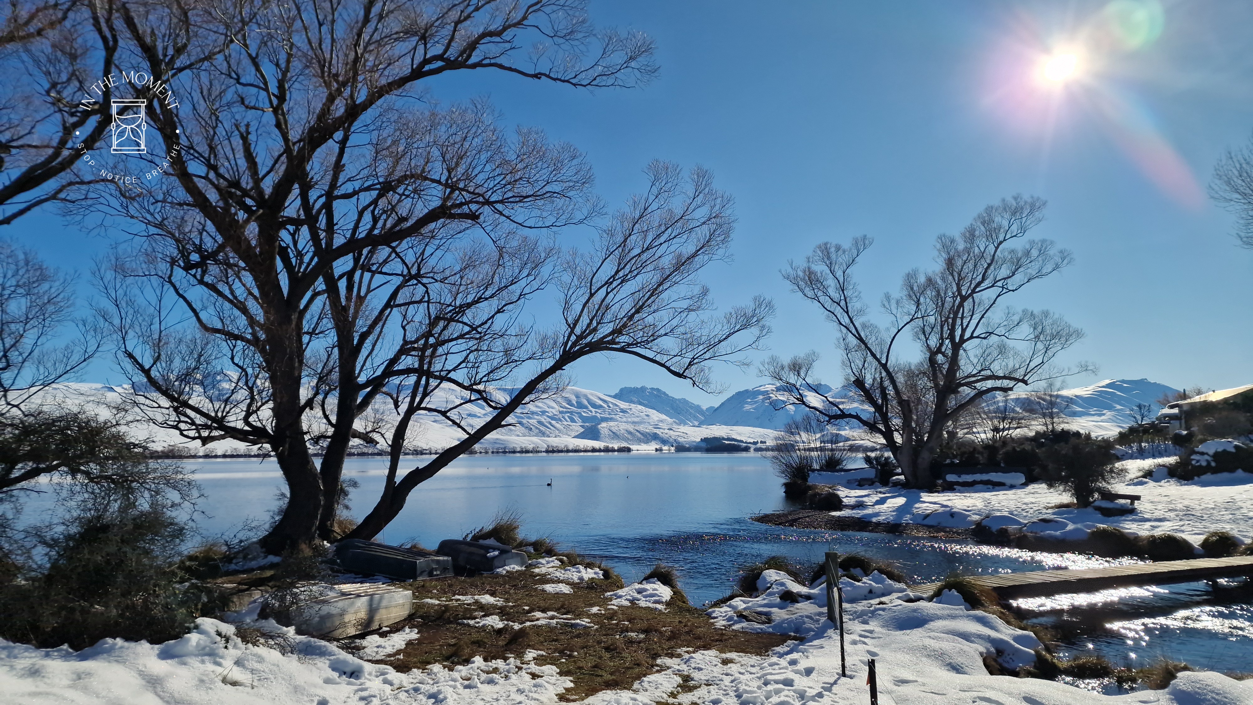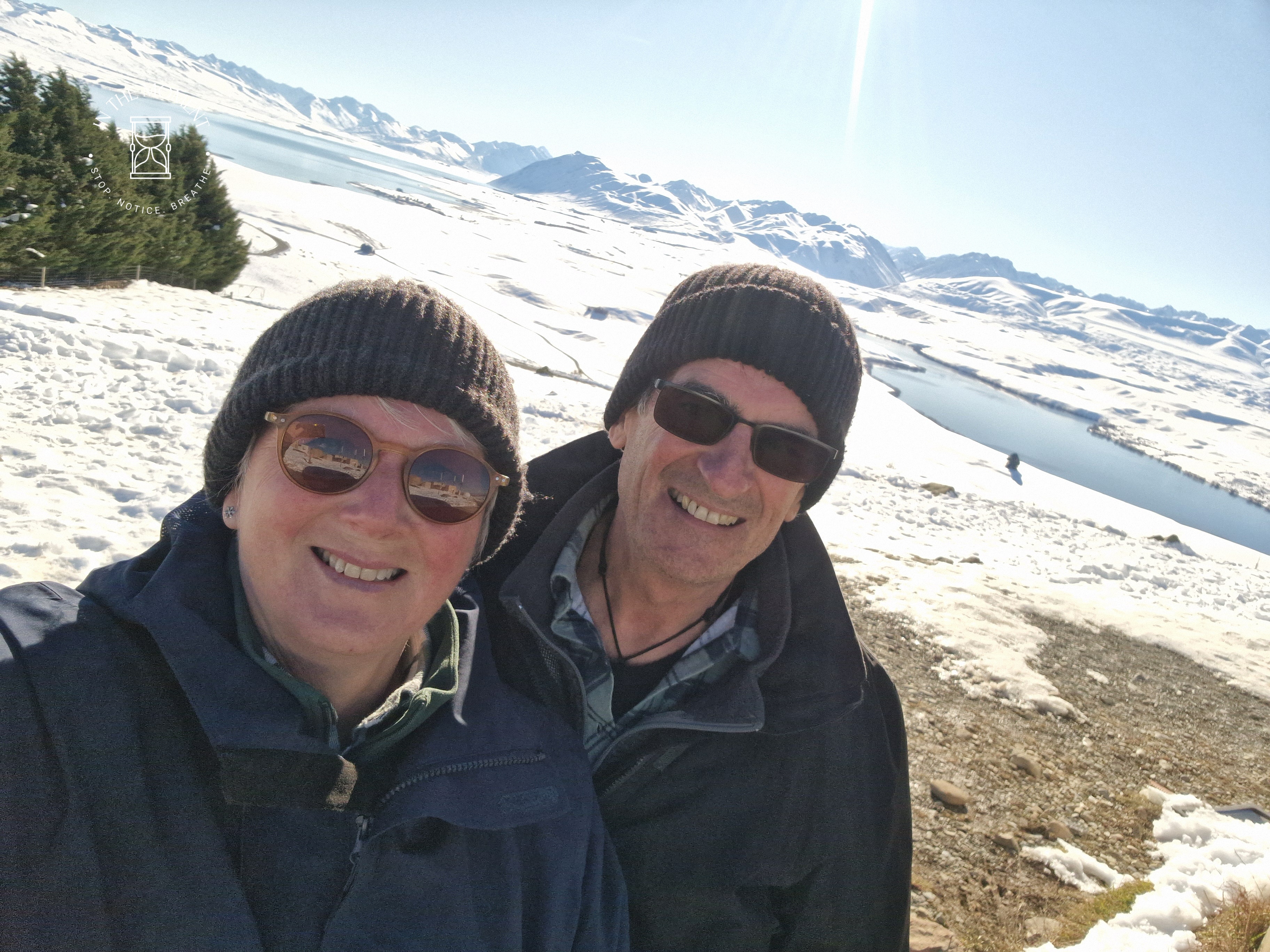 We left Twizel in brilliant sunshine and within minutes found ourselves driving through freezing fog. It is truly amazing what happens to trees and shrubs in a hoar frost. Trees become ghostly and other worldly. We were back in Lake Tekapo so that I could visit the Dark Sky Project. Situated at the top of Mt. John, this project gives you the opportunity to have the stars explained, as well as the chance to look through extremely powerful telescopes back in time to star clusters and nebulas that are millions or billions of years old. I have to say, it really does make you realise just how fleeting our time here on Earth is and just how small we really are. We went back the following day to see the view from the top in daylight. It didn’t disappoint. Just breath-taking. We also had a drive around to Lake Alexandrina, a gorgeous lake that sparkles in the light.