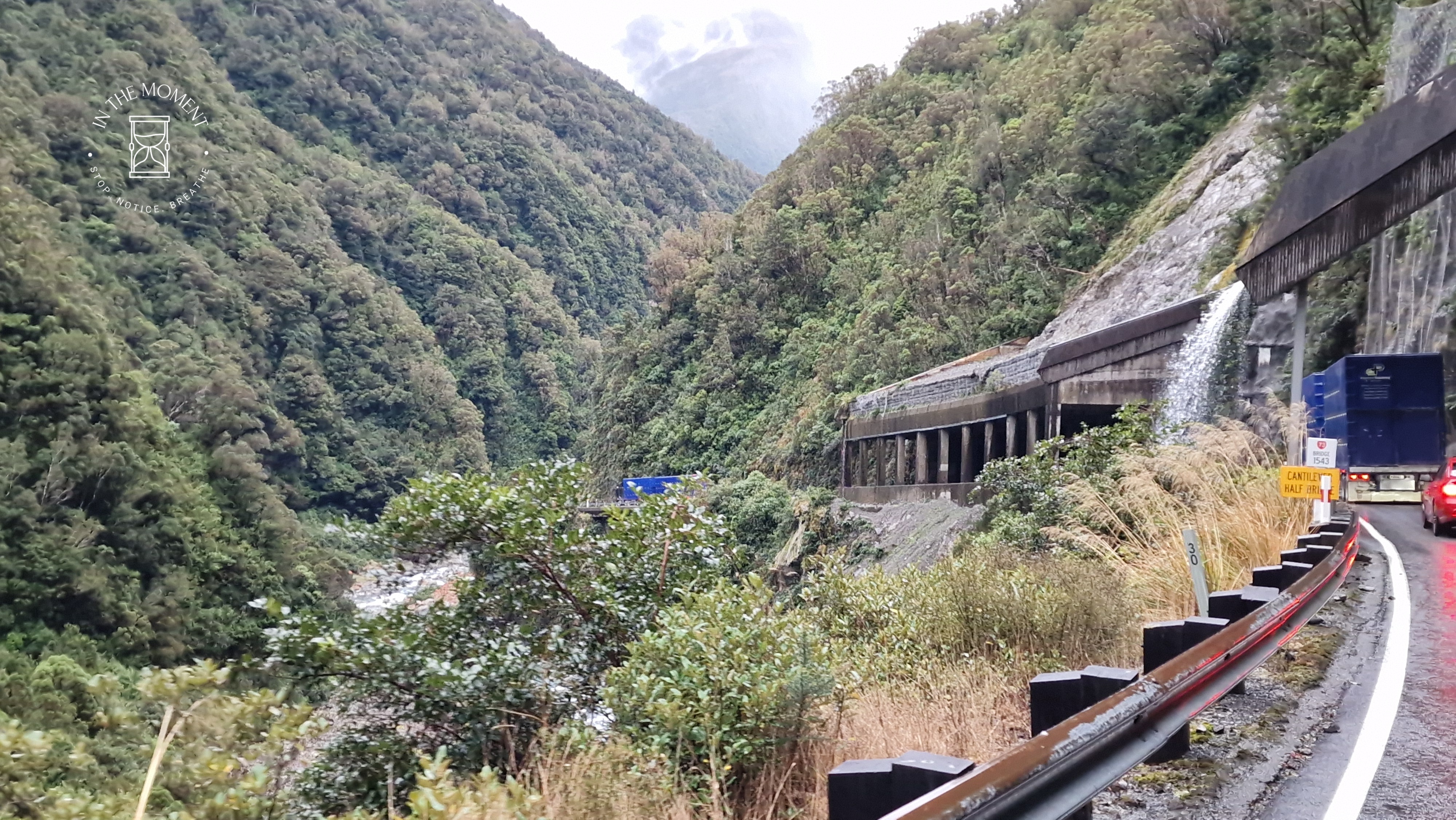 What wonders this roads takes you to! Our first stop where we stretch our legs is at Castle Hill. These limestone rock formations are just amazing! With a very furtive imagination, you can see, dragons, elephants – all sorts! It’s quite amazing how they just seem to spring up out of the almost flat pasture land that surrounds them. Great fun to wander around. We stay overnight at a DoC site at Lake Pearson – this is a memory lane stop for us. This place really did capture my heart back in 2014. It has had a bit of a makeover since then with a much bigger gravel area for parking and more toilets but the essence of the place has not changed. It was great to be back and soaking up the peace of this place. Our next stop was a memory lane trip for Don who had visited Cass when he was at Canterbury University. Very cute railway station here! Our next stop after that was only 1km off the main highway but you could be so much further away. Down a gravel road and across the railway you come to Mt. White bridge. It spans an INCREDIBLY clear Waimakariri River, with snow capped mountains all around. Just so beautiful and I imagine most people will drive straight by the turnoff. We spent the night at the DoC site in Arthur’s Pass Village. We take a walk to see the Devils Punchbowl Waterfall. You can see the top of the falls from the road but the view from the end of the track is amazing. Yes you do have to walk a LOT of stairs (some say anywhere between 300-400) but my goodness is it worth it! Just behind Arthur’s Pass Chapel is the Avalanche Creek Waterfall. No where near as high as Devils Punchbowl but beautiful in its own right. We travel along the rest of the Pass in torrential rain. Sometimes it’s not bad being stuck behind two stock lorries! Our final stop on this part of the route was back in Hokitika. With the weather so bad, only one thing to do, visit the cinema. Which we do. We had the whole place to ourselves! Had another fossick on the beach and find some more serpentine stones. Who doesn’t love the beach here?